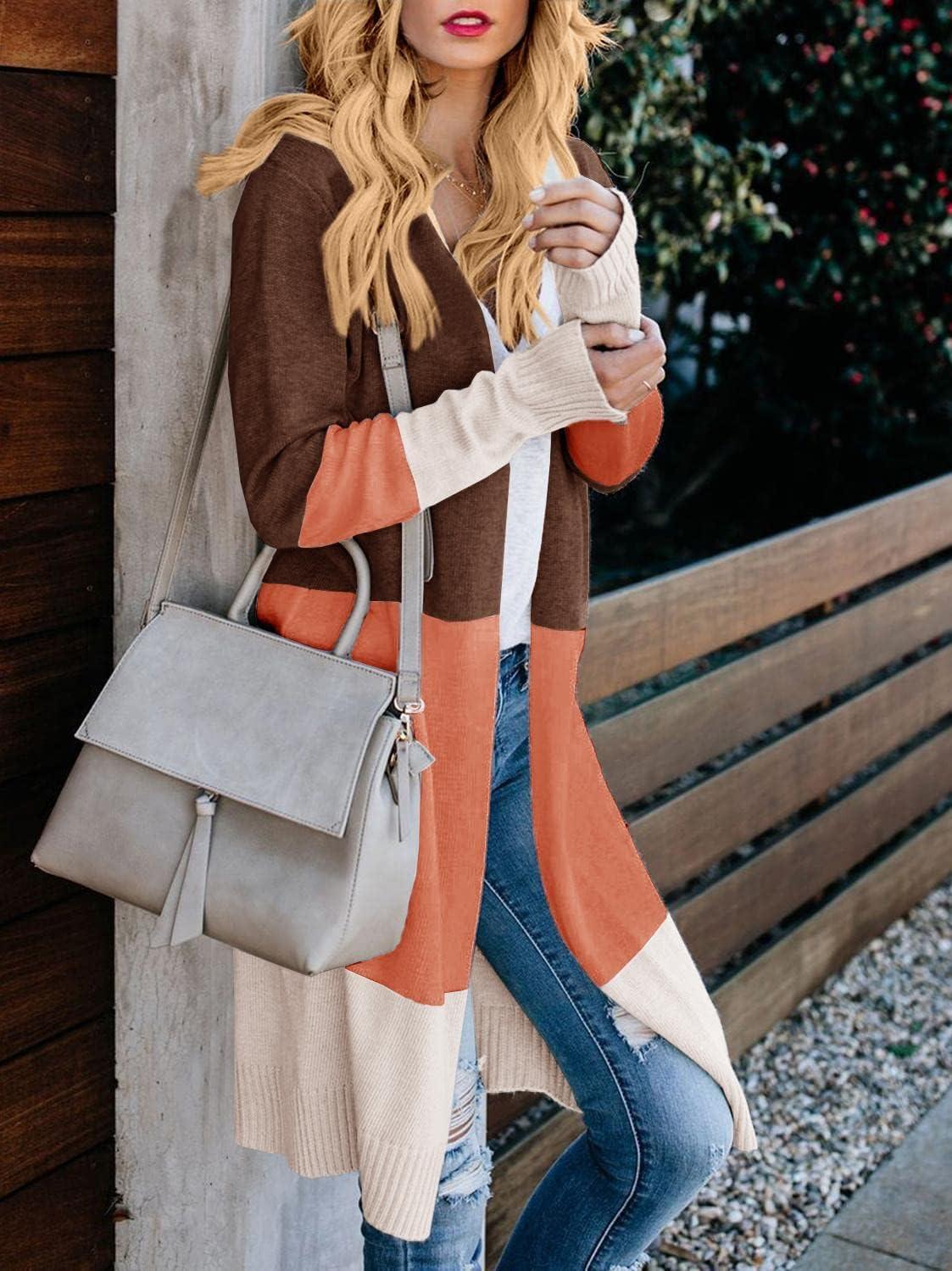 Lovaru Womens Open Front Cardigan Color Block Long Sleeve Loose Knit Lightweight Sweaters