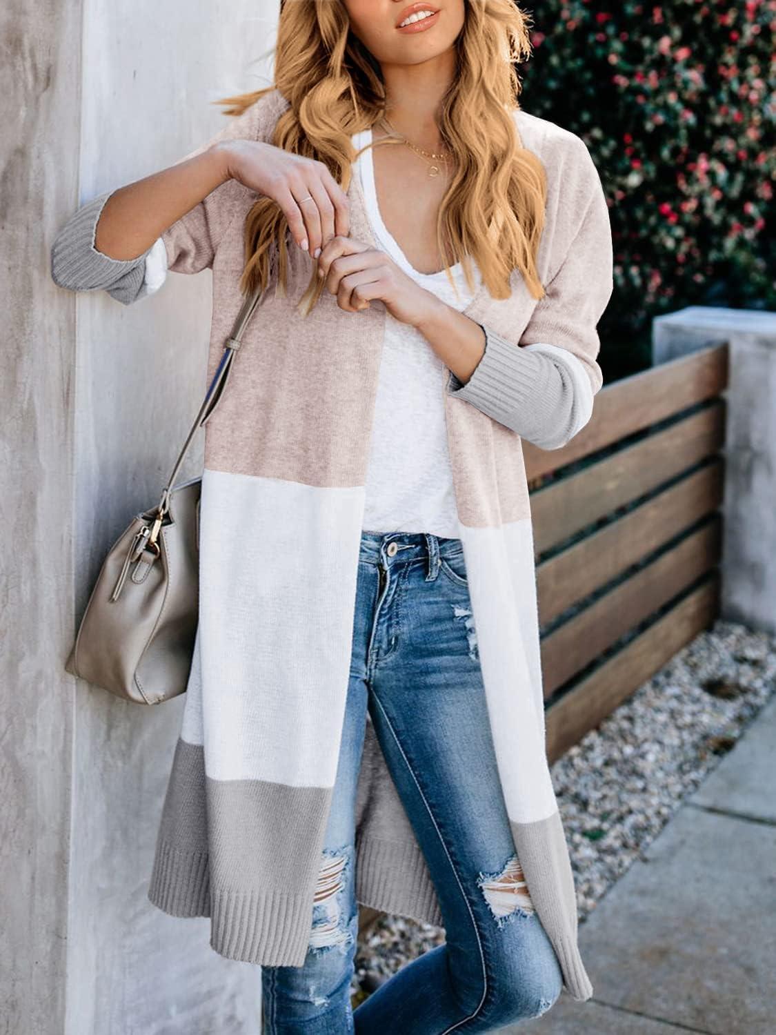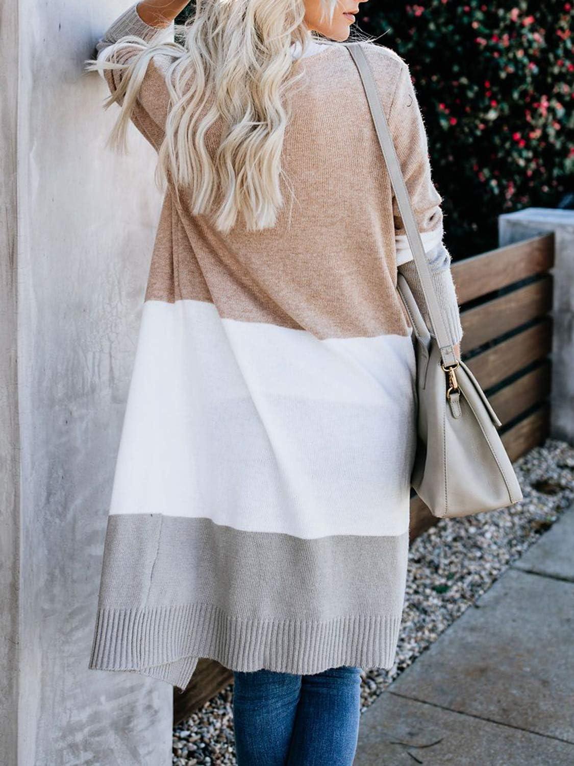 Lovaru Womens Open Front Cardigan Color Block Long Sleeve Loose Knit Lightweight Sweaters