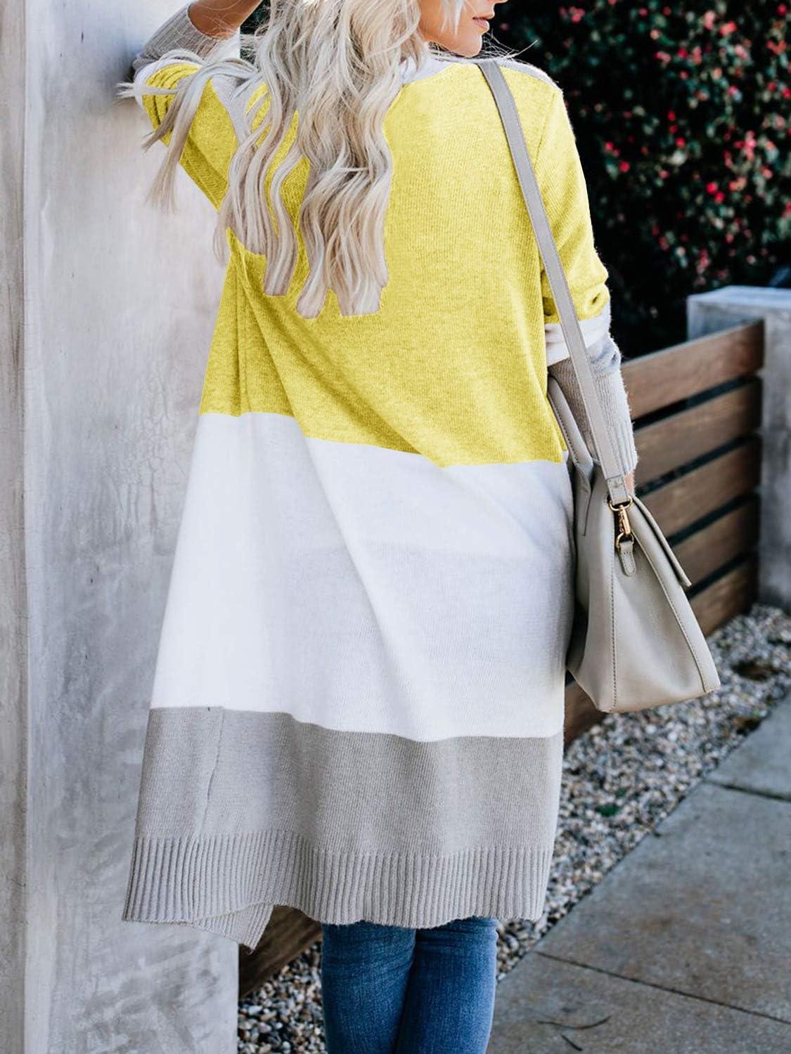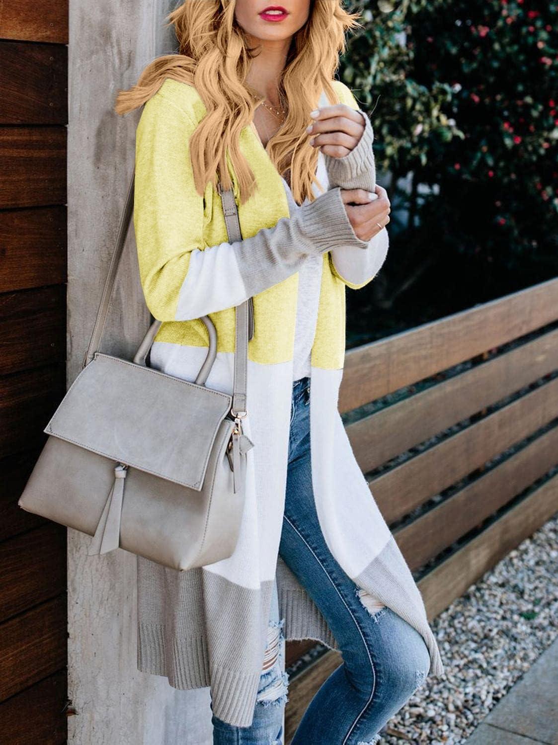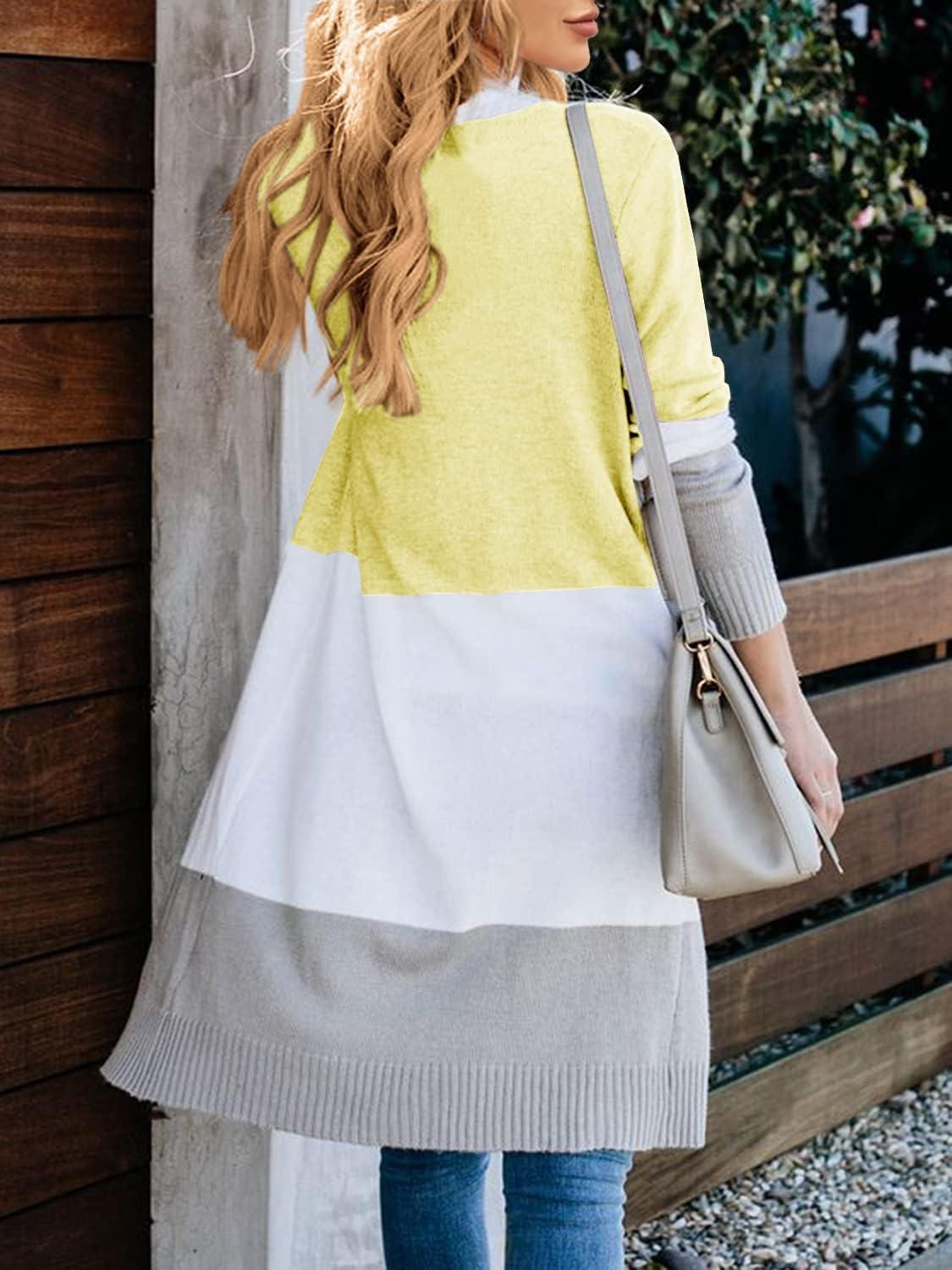 Lovaru Womens Boho Open Front Cardigan Colorblock Long Sleeve Loose Knit Lightweight Sweaters(Z-yellow)