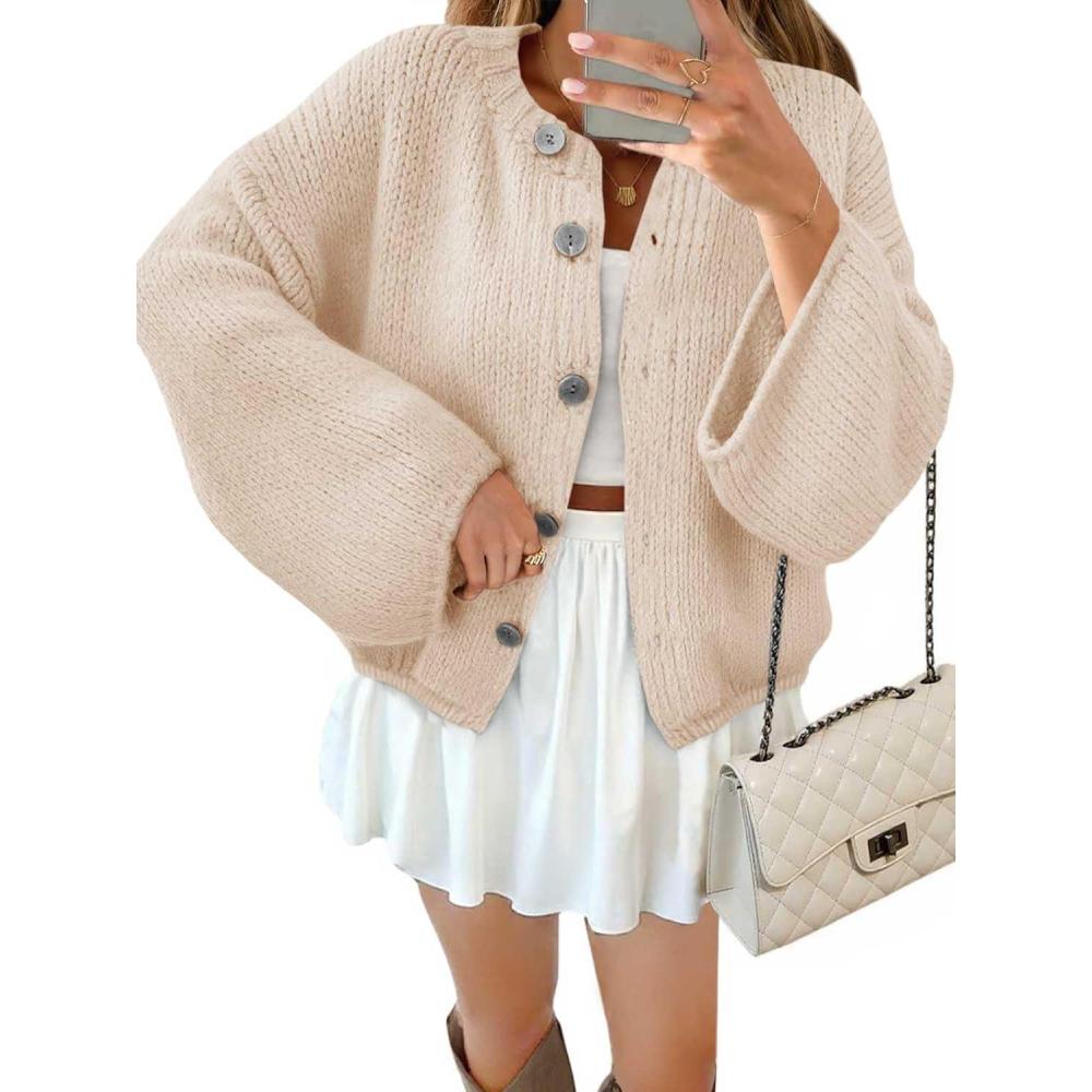 Saodimallsu Women 2025 Oversized Button Down Cardigan Chunky Knit Long Sleeve Sweater(Beige)