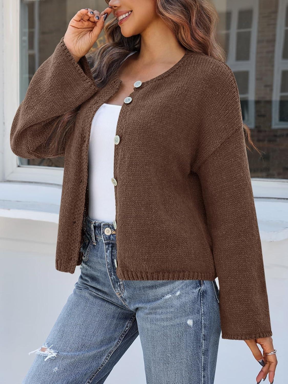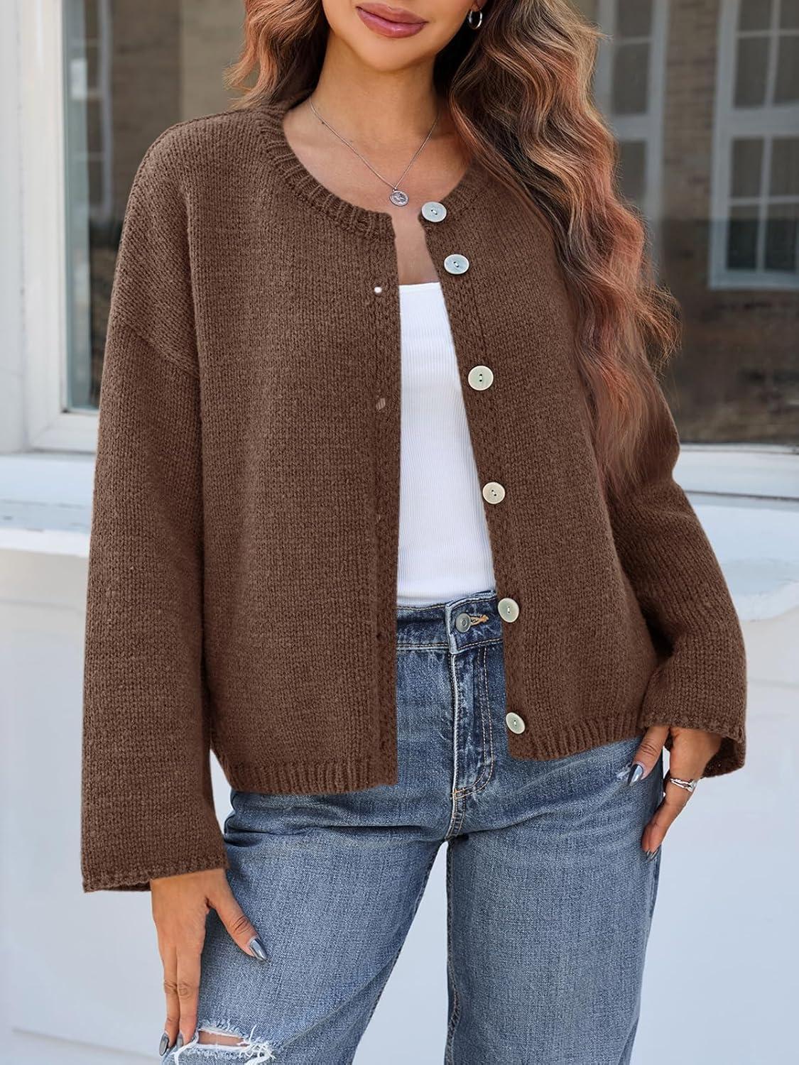 Saodimallsu Women 2025 Oversized Button Down Cardigan Chunky Knit Long Sleeve Sweater(Coffee)