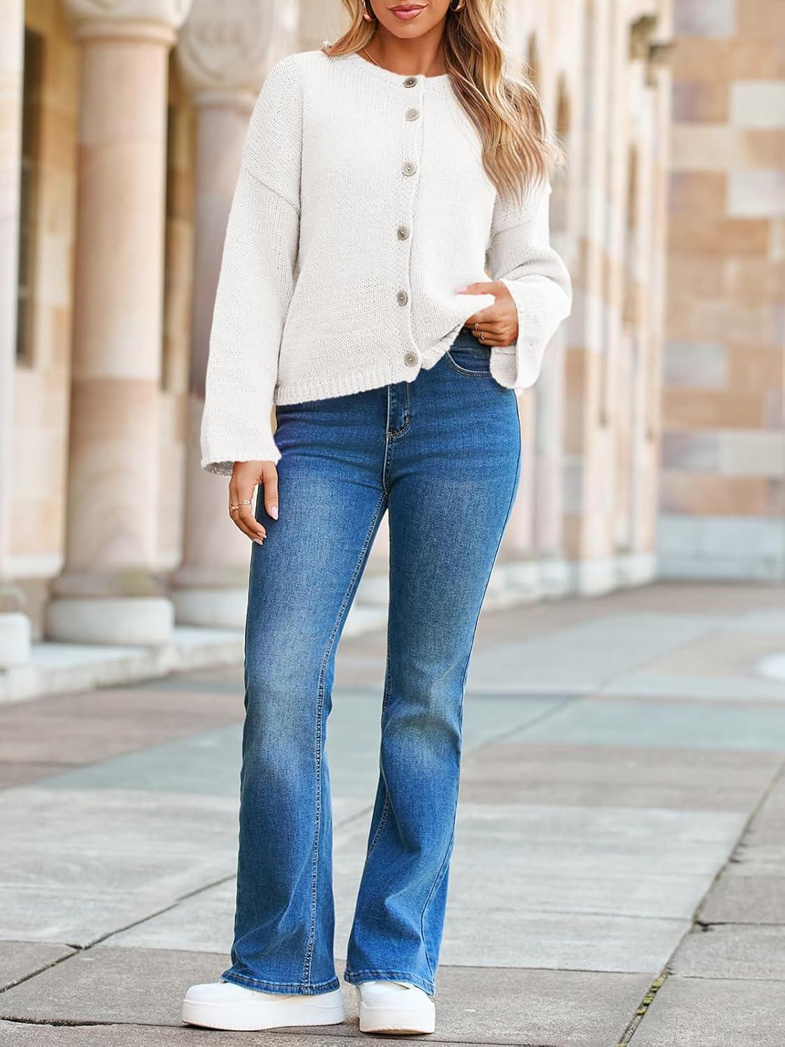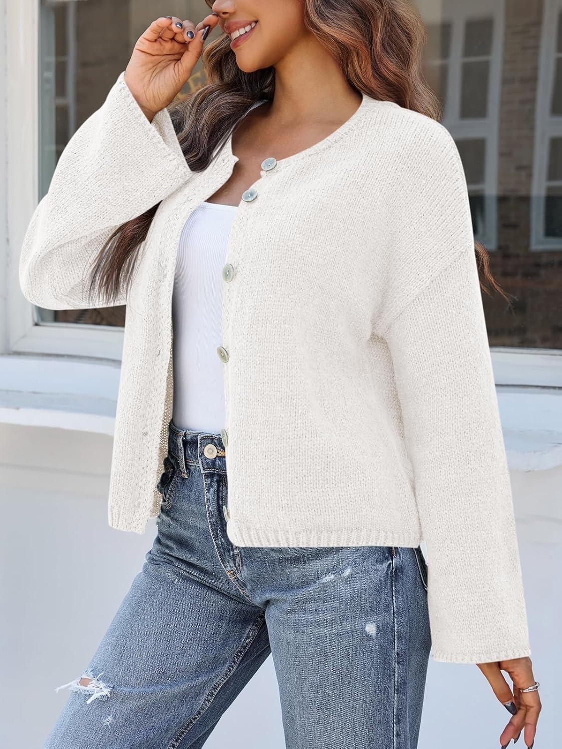 Saodimallsu Women 2025 Oversized Button Down Cardigan Chunky Knit Long Sleeve Sweater(White)