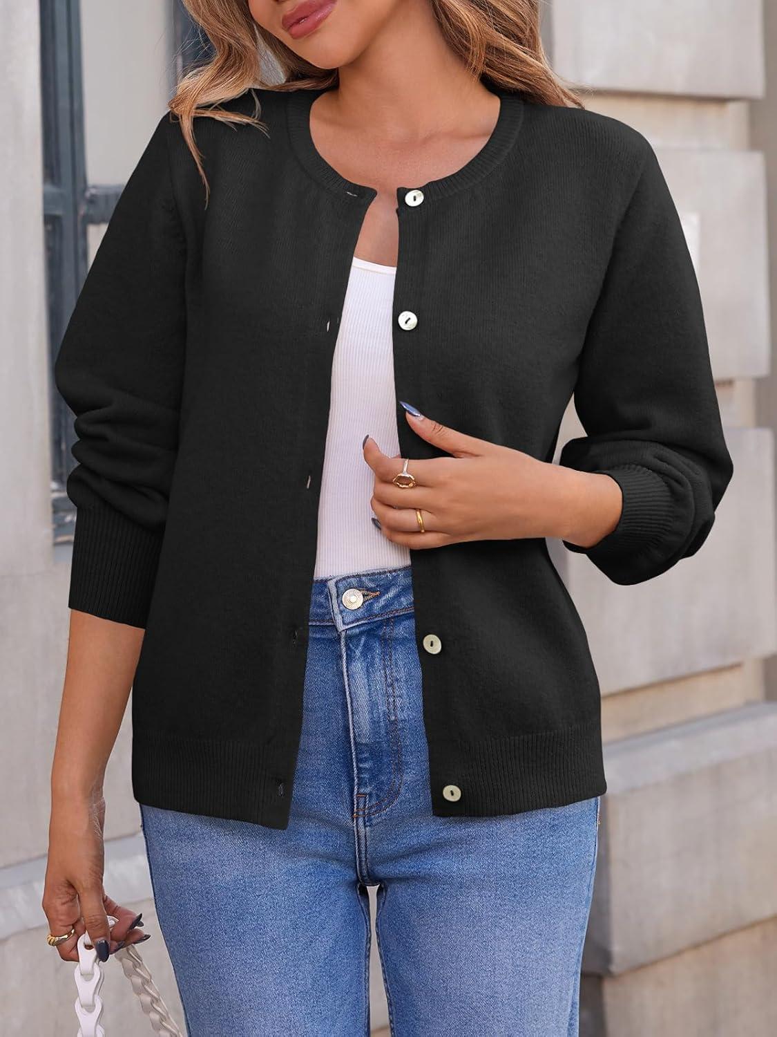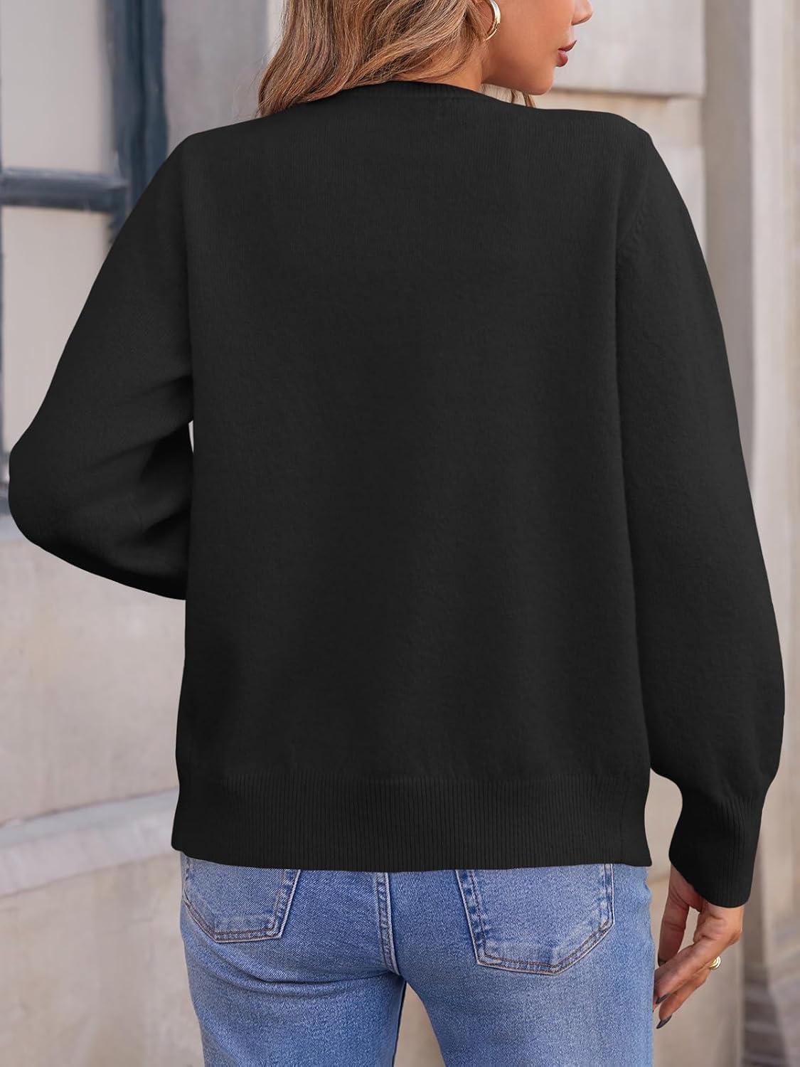 Saodimallsu Womens Button Down Cardigan Sweaters Crew Neck Long Sleeve Open Front Loose Fall Soft Knit Sweater Coats(Black)