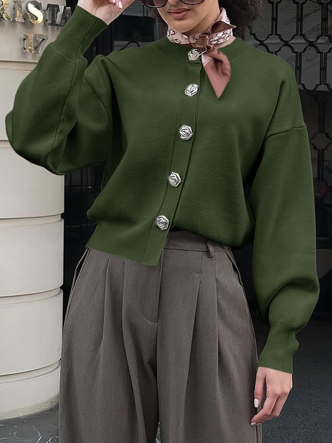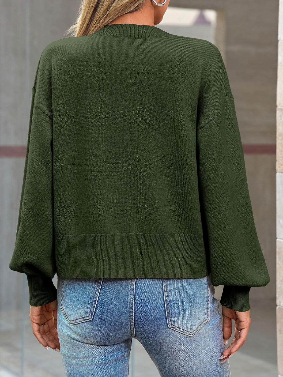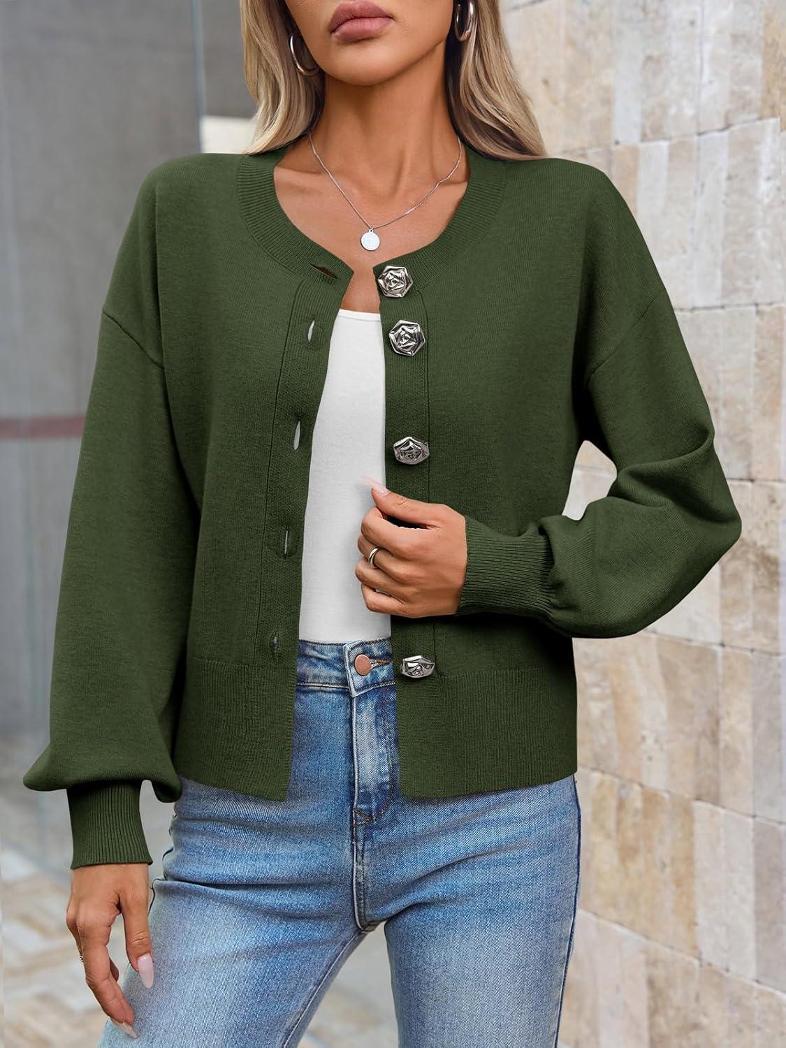 Saodimallsu Womens Button Up Cardigan Sweaters Fall Trendy Long Lantern Sleeve Knit Crew Neck Sweater Jacket(Army Green)