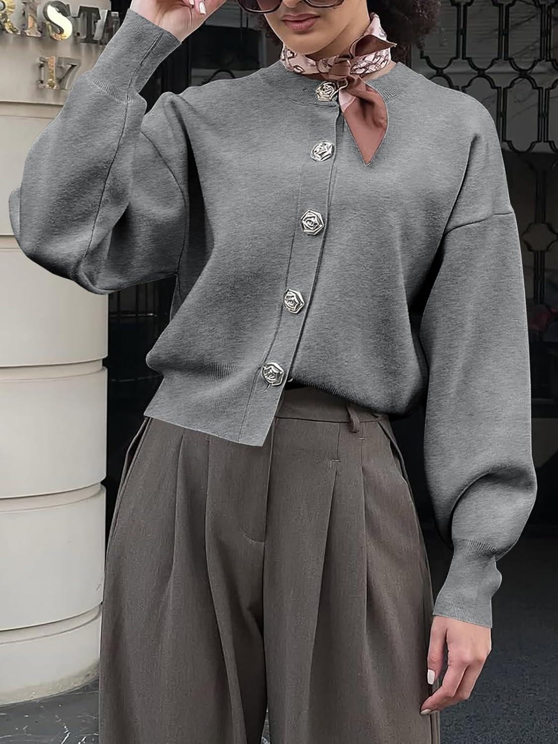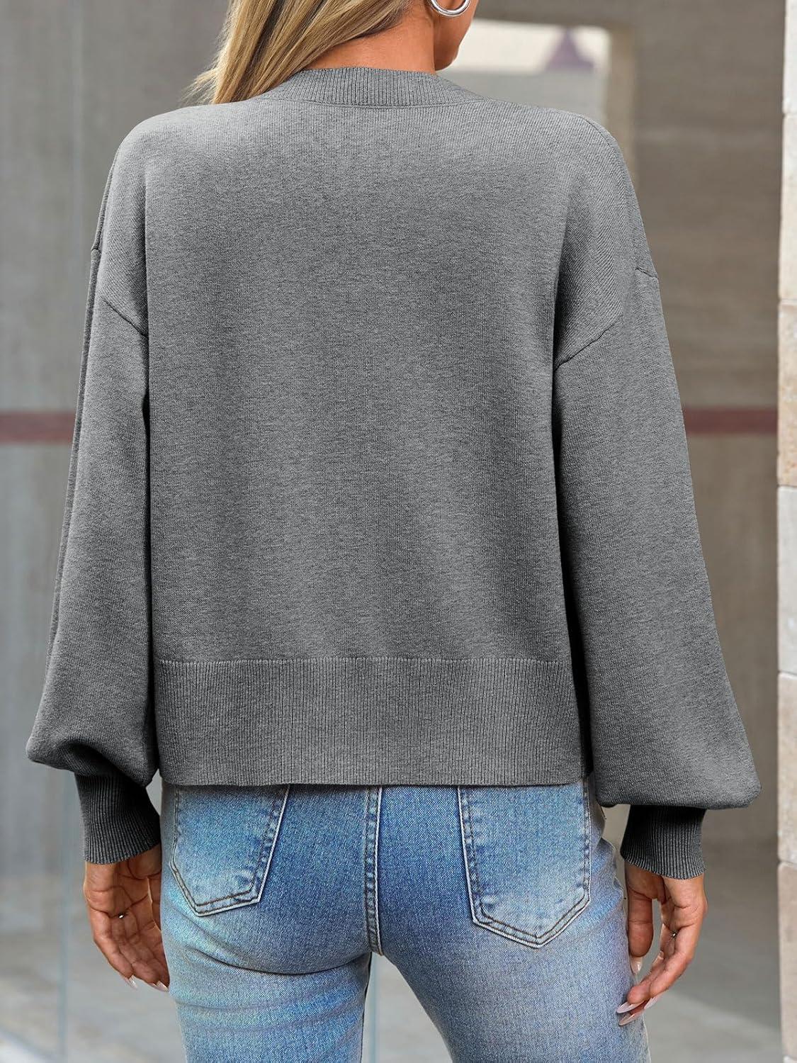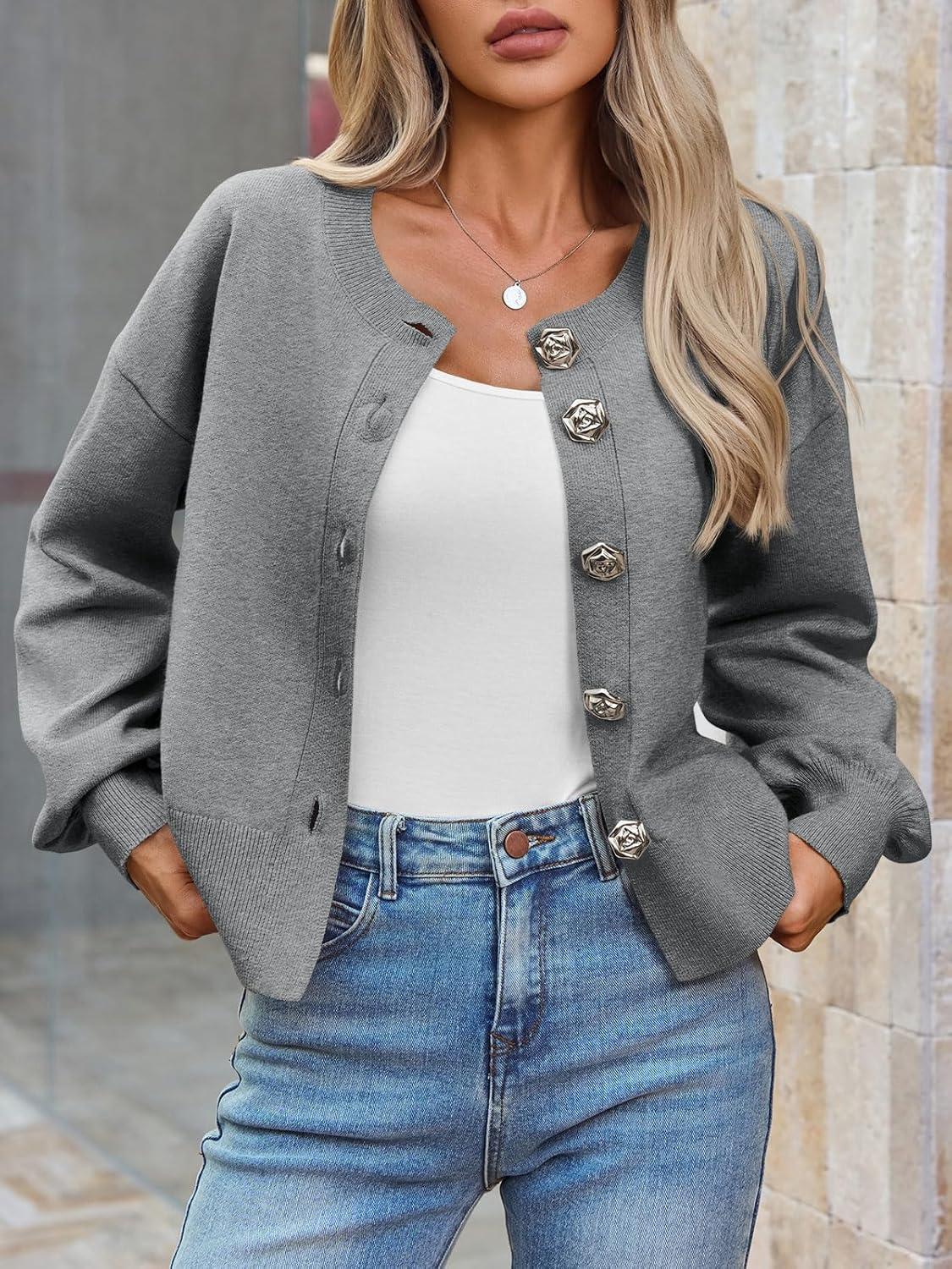 Saodimallsu Womens Button Up Cardigan Sweaters Fall Trendy Long Lantern Sleeve Knit Crew Neck Sweater Jacket(Grey)