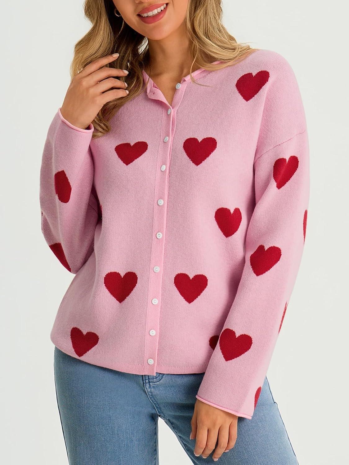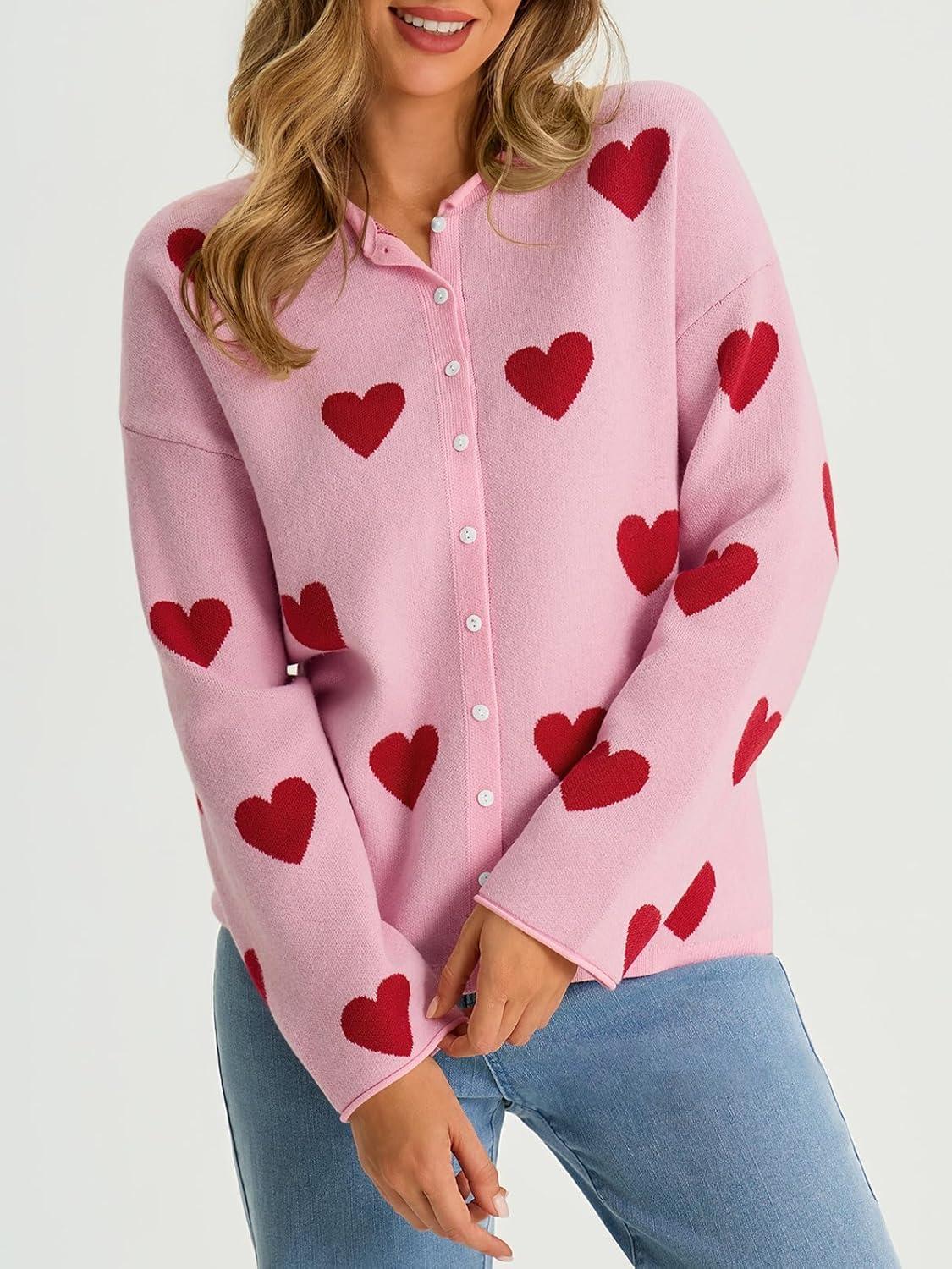 Saodimallsu Womens Button Up Cardigan Sweaters Long Sleeve Crew Neck Fall Soft Lightweight Knit Loose Sweater Tops(Light Pink-a1)