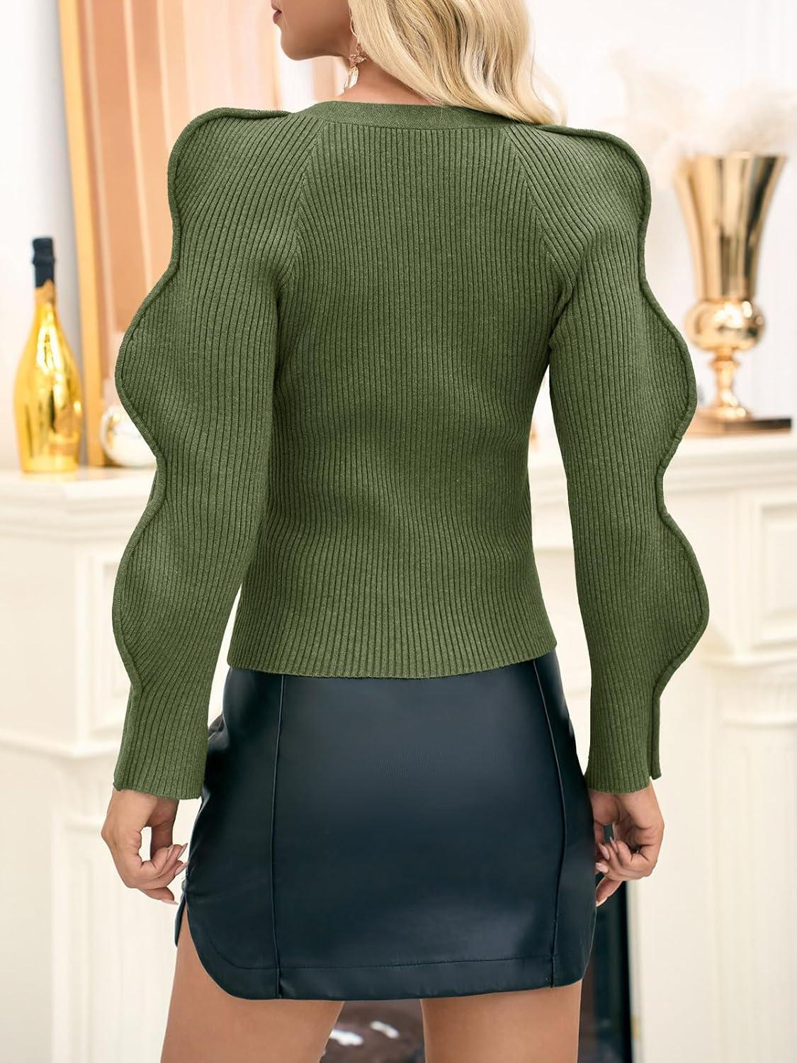 Saodimallsu Womens Button Up Cardigans V Neck Ribbed Knit Fitted Sweaters Long Sleeve Trendy Split Going Out Tops(Army Green)
