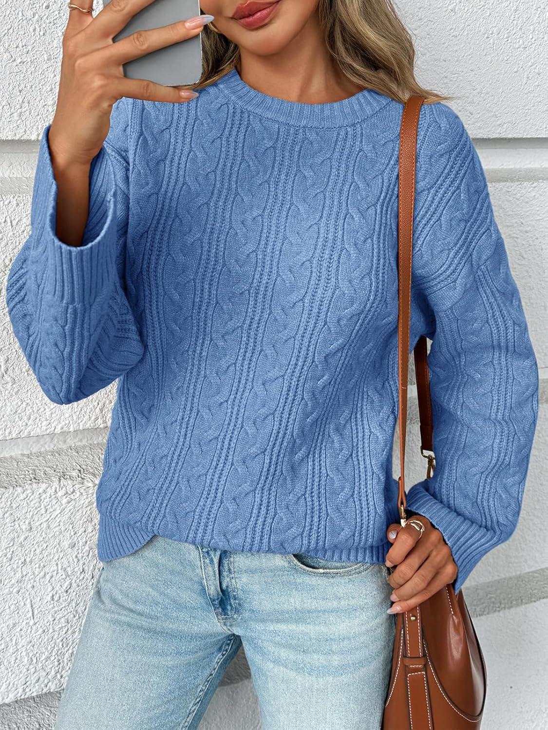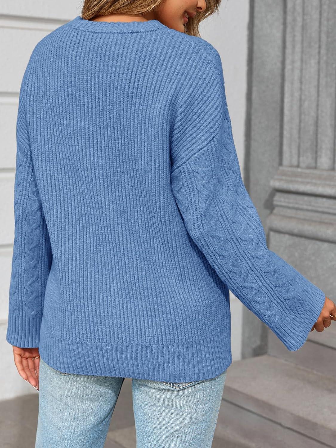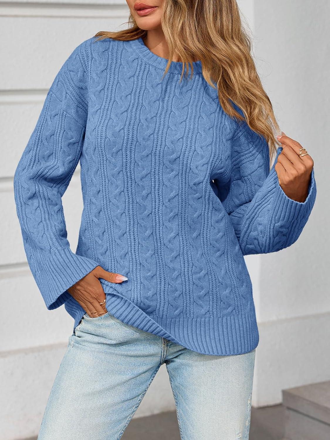 Saodimallsu Womens Cable Knit Sweater Oversized Long Sleeve Chunky Knit Crew Neck Fall Pullover Sweaters Top(Blue)
