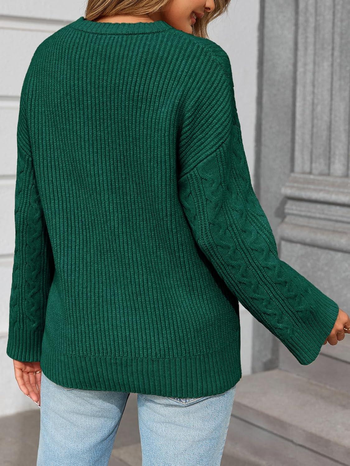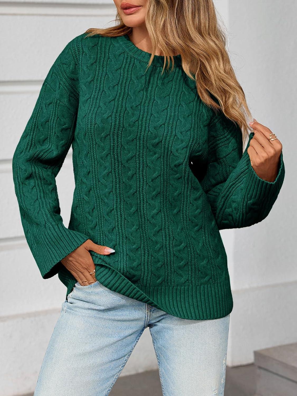 Saodimallsu Womens Cable Knit Sweater Oversized Long Sleeve Chunky Knit Crew Neck Fall Pullover Sweaters Top(Dark Green)