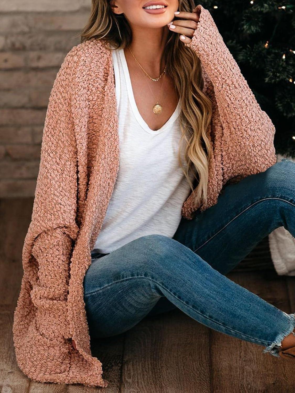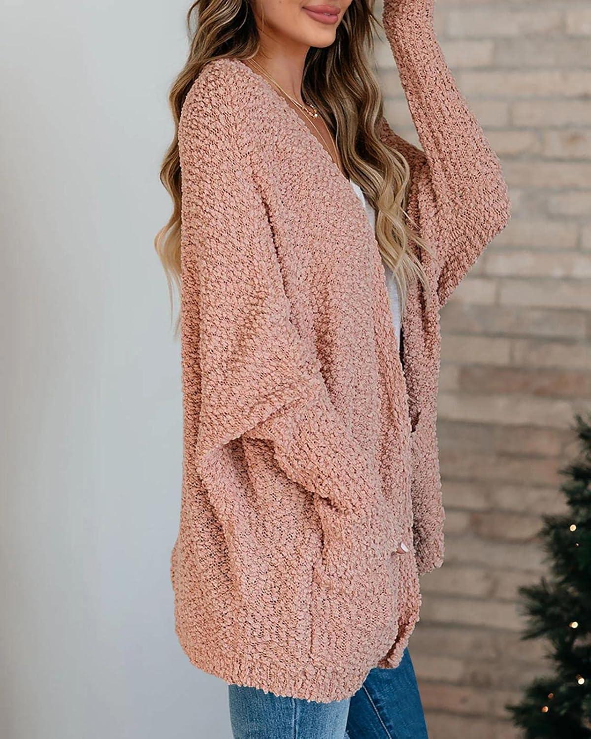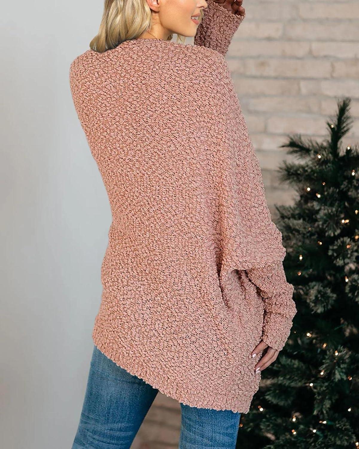 Saodimallsu Women’s Chunky Popcorn Cardigan Oversized Open Front Boyfriend Batwing Long Sleeve Fuzzy Knit Sweaters(Pink)