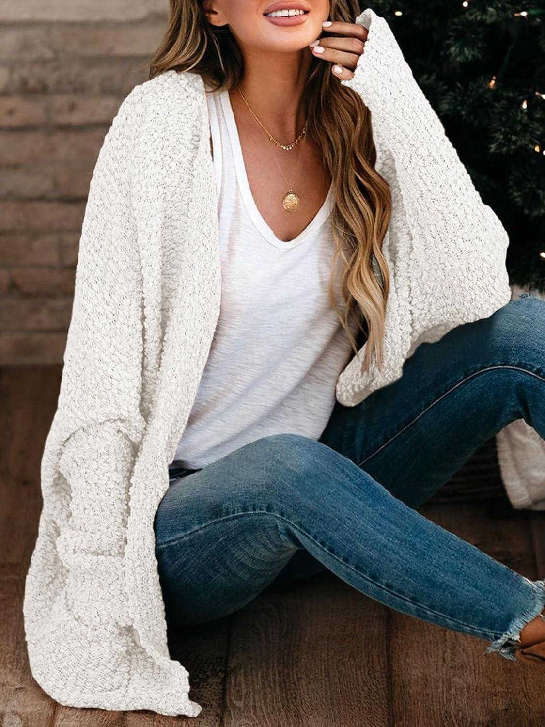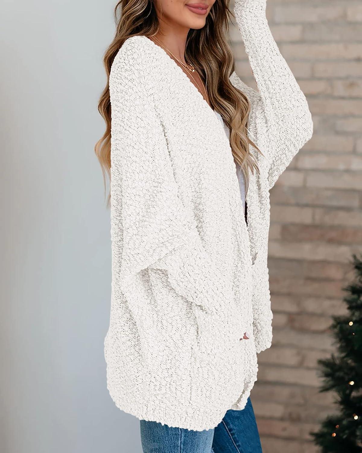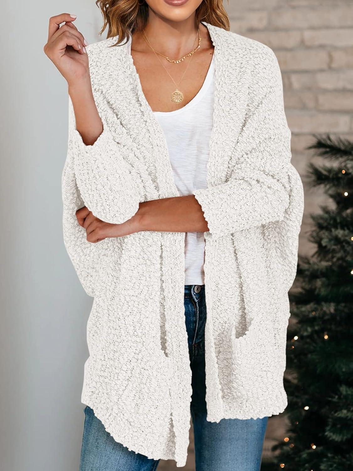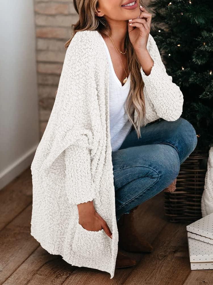 Saodimallsu Women’s Chunky Popcorn Cardigan Oversized Open Front Boyfriend Batwing Long Sleeve Fuzzy Knit Sweaters(White)