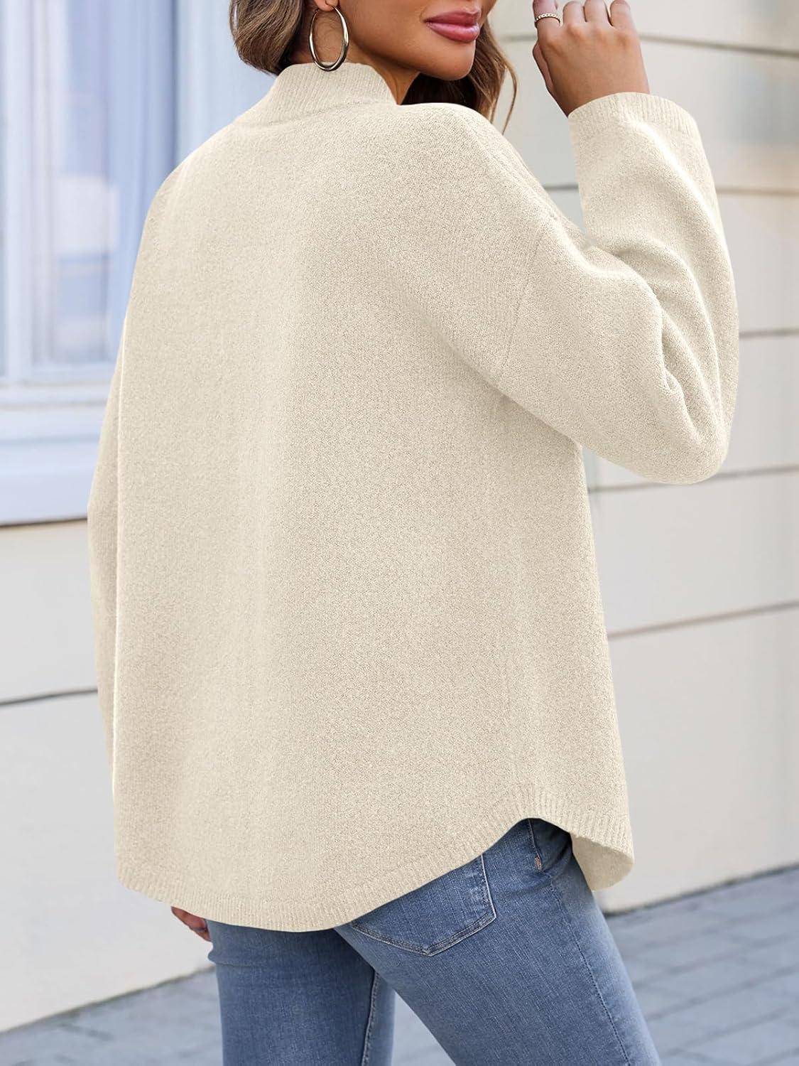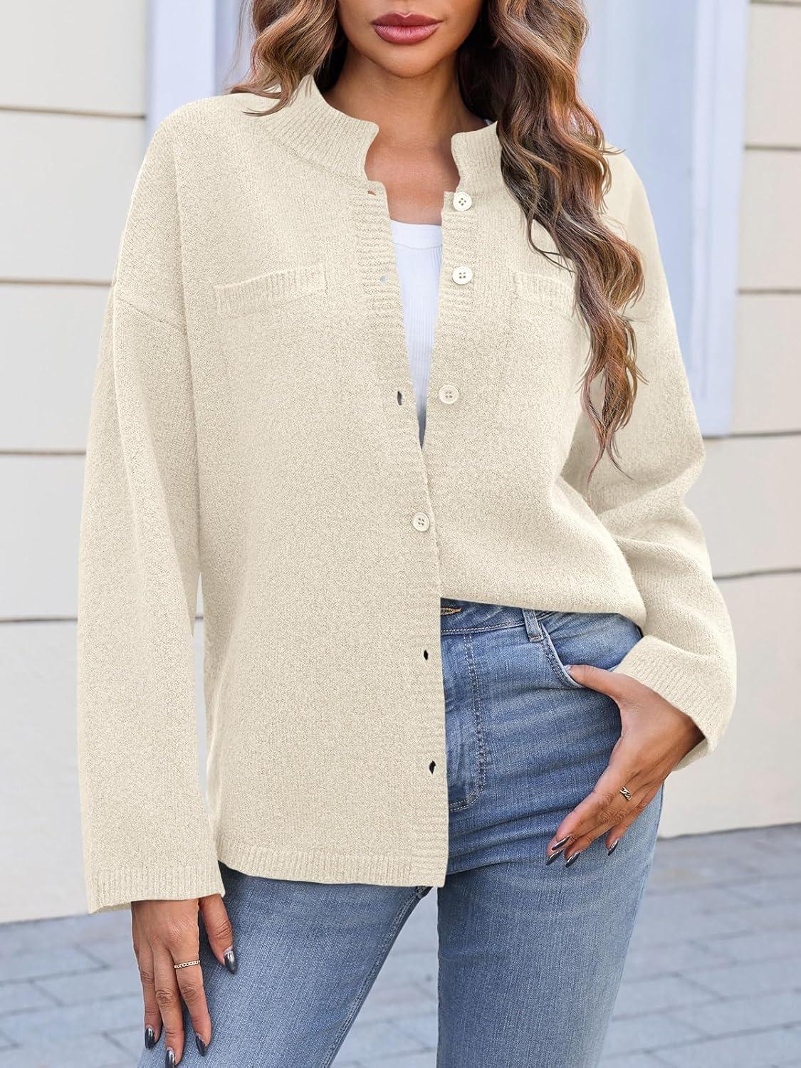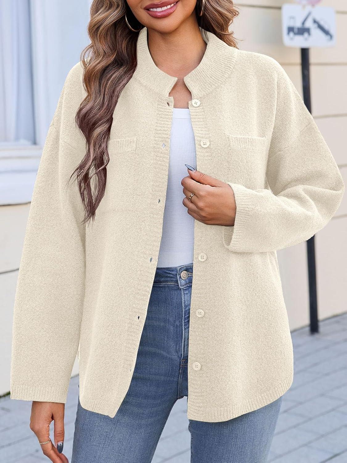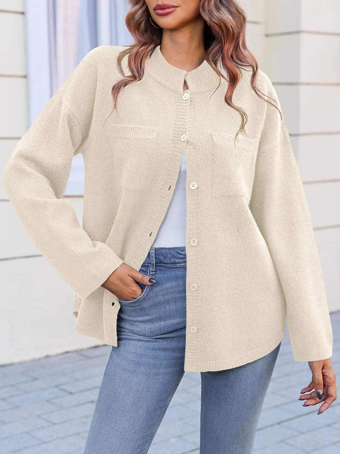 Saodimallsu Womens Collared Cardigans Button Down Fall Sweater Jackets Oversized Casual Long Sleeve Knit Shirts(Beige)