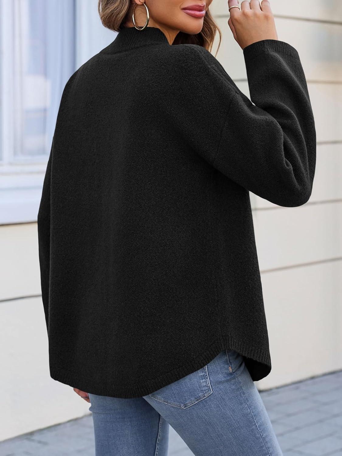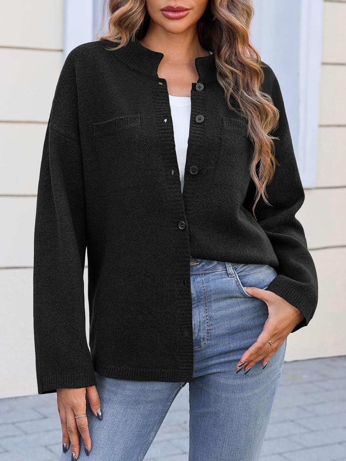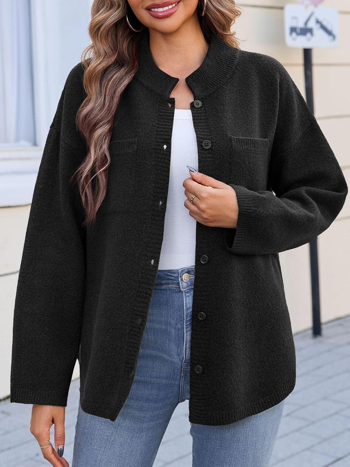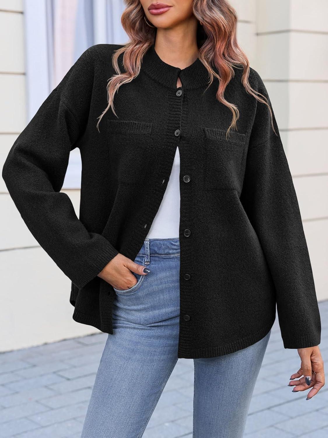 Saodimallsu Womens Collared Cardigans Button Down Fall Sweater Jackets Oversized Casual Long Sleeve Knit Shirts(Black)