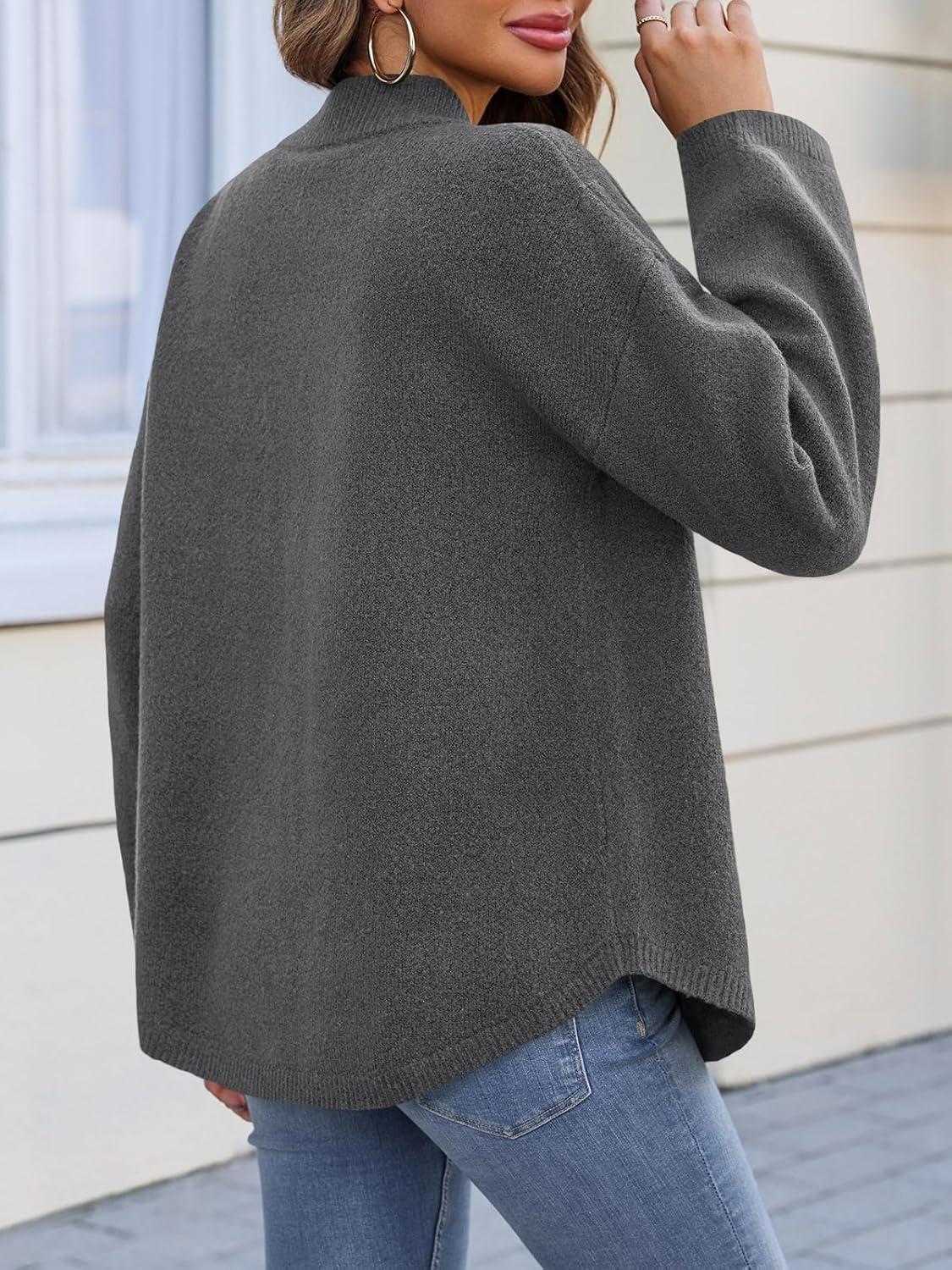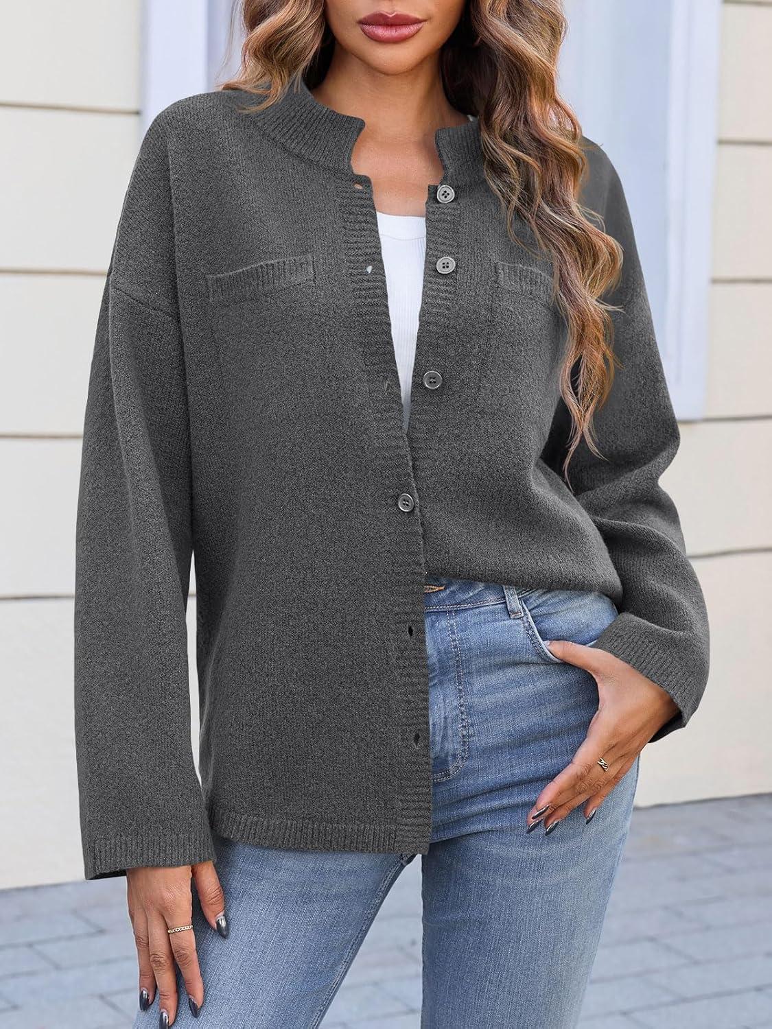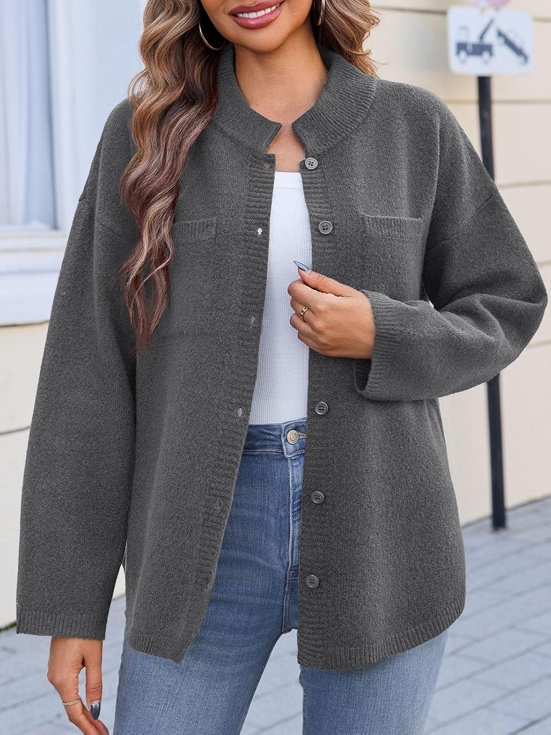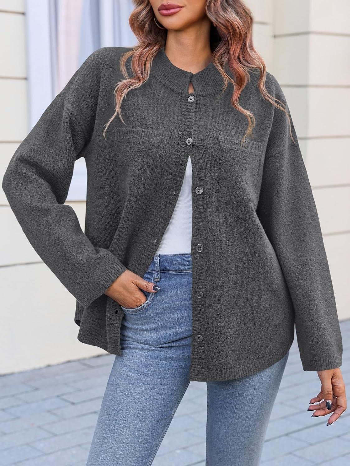 Saodimallsu Womens Collared Cardigans Button Down Fall Sweater Jackets Oversized Casual Long Sleeve Knit Shirts(Dark Gray)