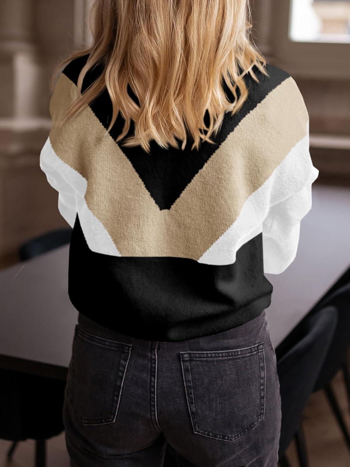 Saodimallsu Womens Color Block Sweaters Mock Neck Button Long Sleeve Knit Henley Shirts Loose Casual Pullover Tops(White)
