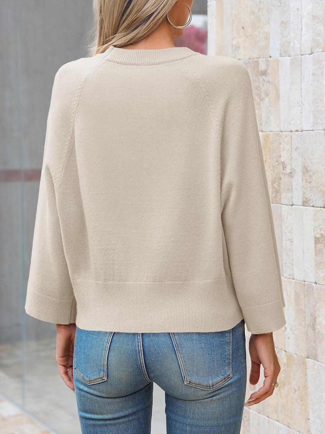 Saodimallsu Womens Crew Neck Batwing Sweaters 3/4 Sleeve Soft Knit Dressy Casual Loose Fit Fall Sweater Tops(Apricot)
