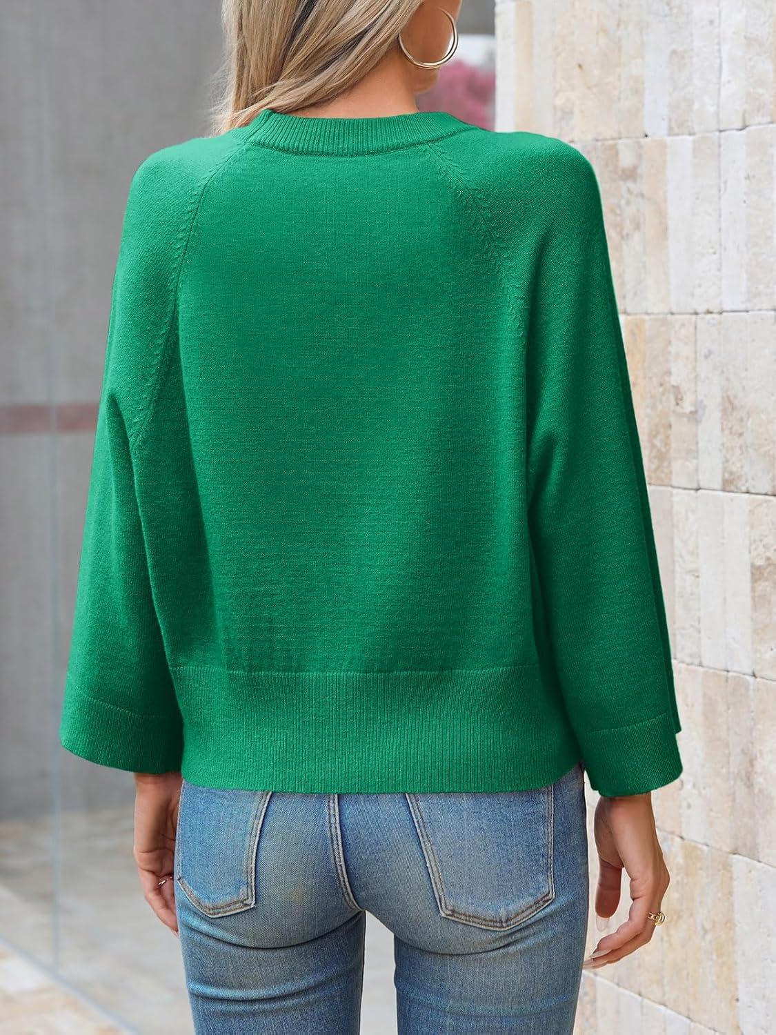 Saodimallsu Womens Crew Neck Batwing Sweaters 3/4 Sleeve Soft Knit Dressy Casual Loose Fit Fall Sweater Tops(Green)