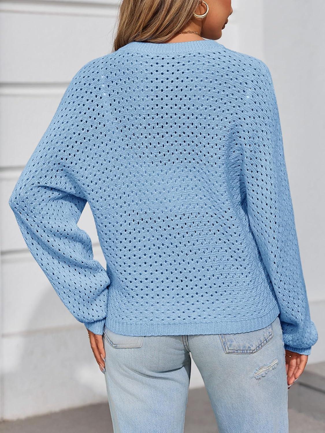 Saodimallsu Womens Crochet Button Sweaters Batwing Long Sleeve Henley Knit Shirts Drawstring Loose Trendy Sweater Tops(Light Blue)