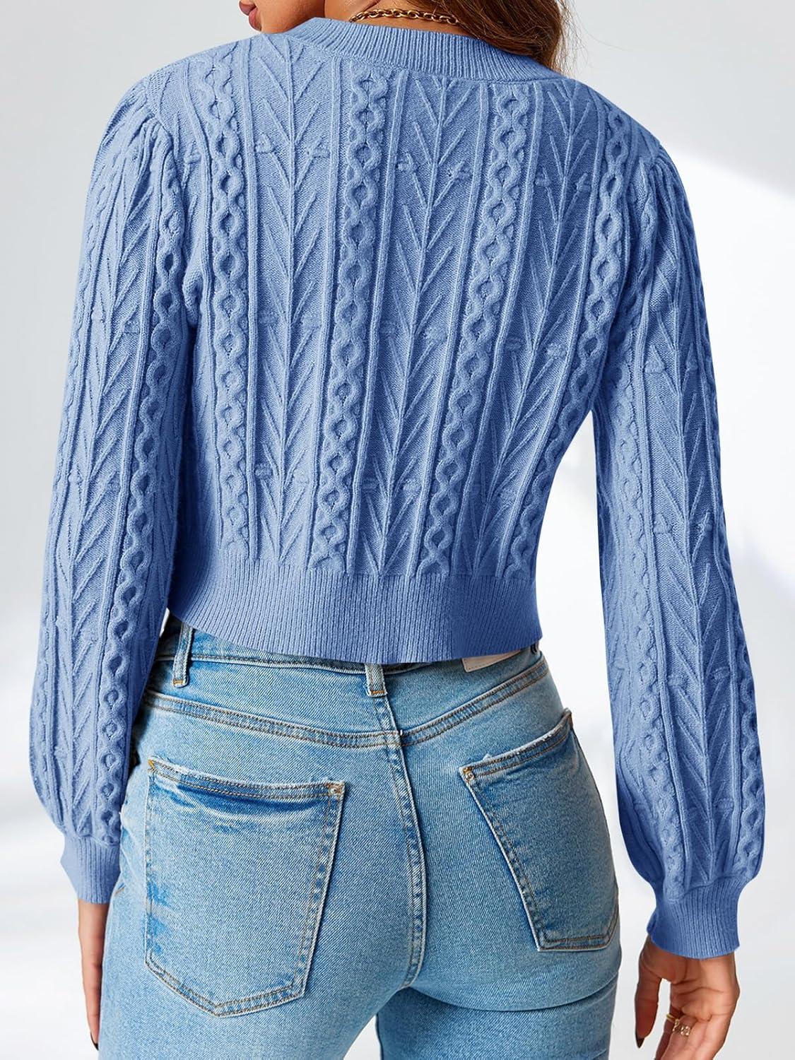 Saodimallsu Womens Cropped Cable Knit Cardigan Sweaters Long Sleeve Bow Tie Front Crew Neck Chunky Sweater Tops(Blue)