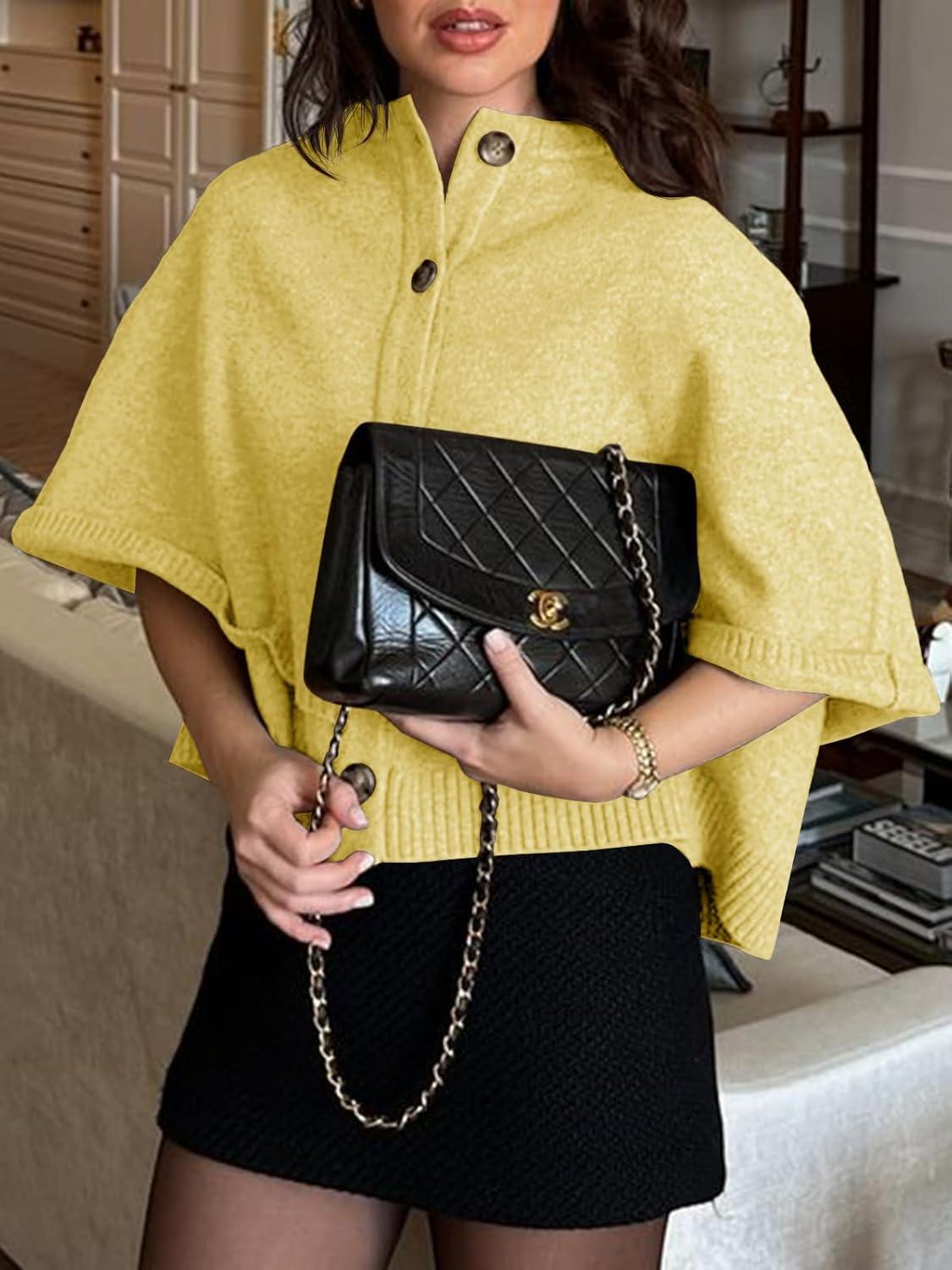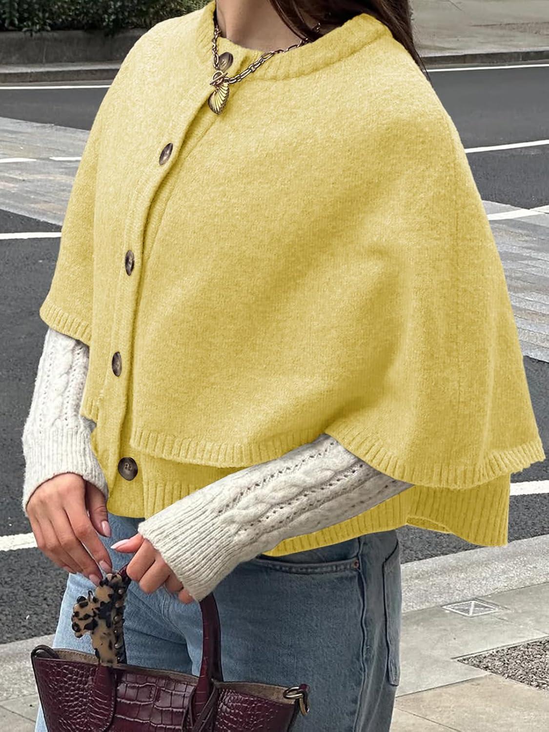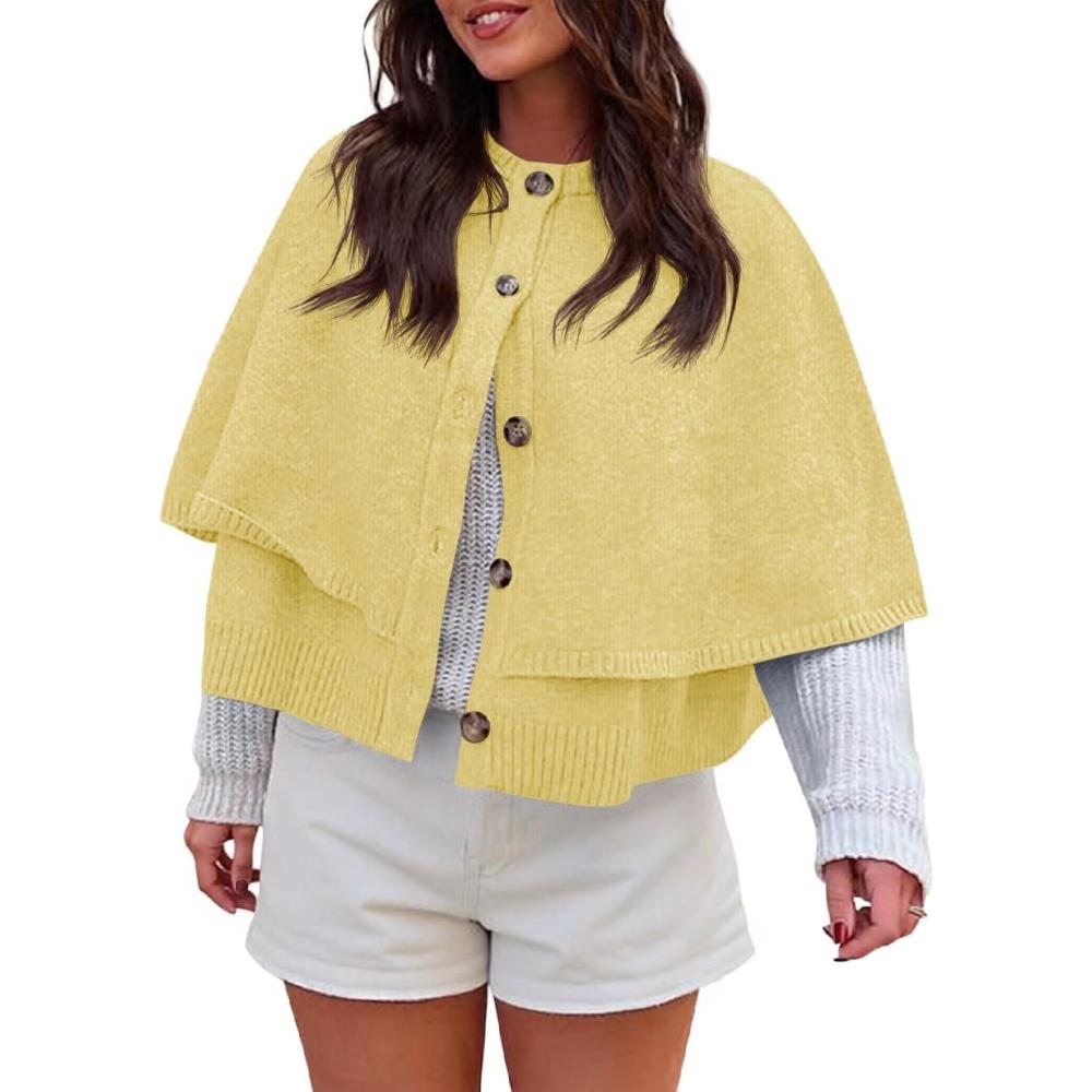 Saodimallsu Womens Cropped Cape Cardigan Button Up Crew Neck Jacket Shawl Fall Trendy Knit Sweater(Yellow)