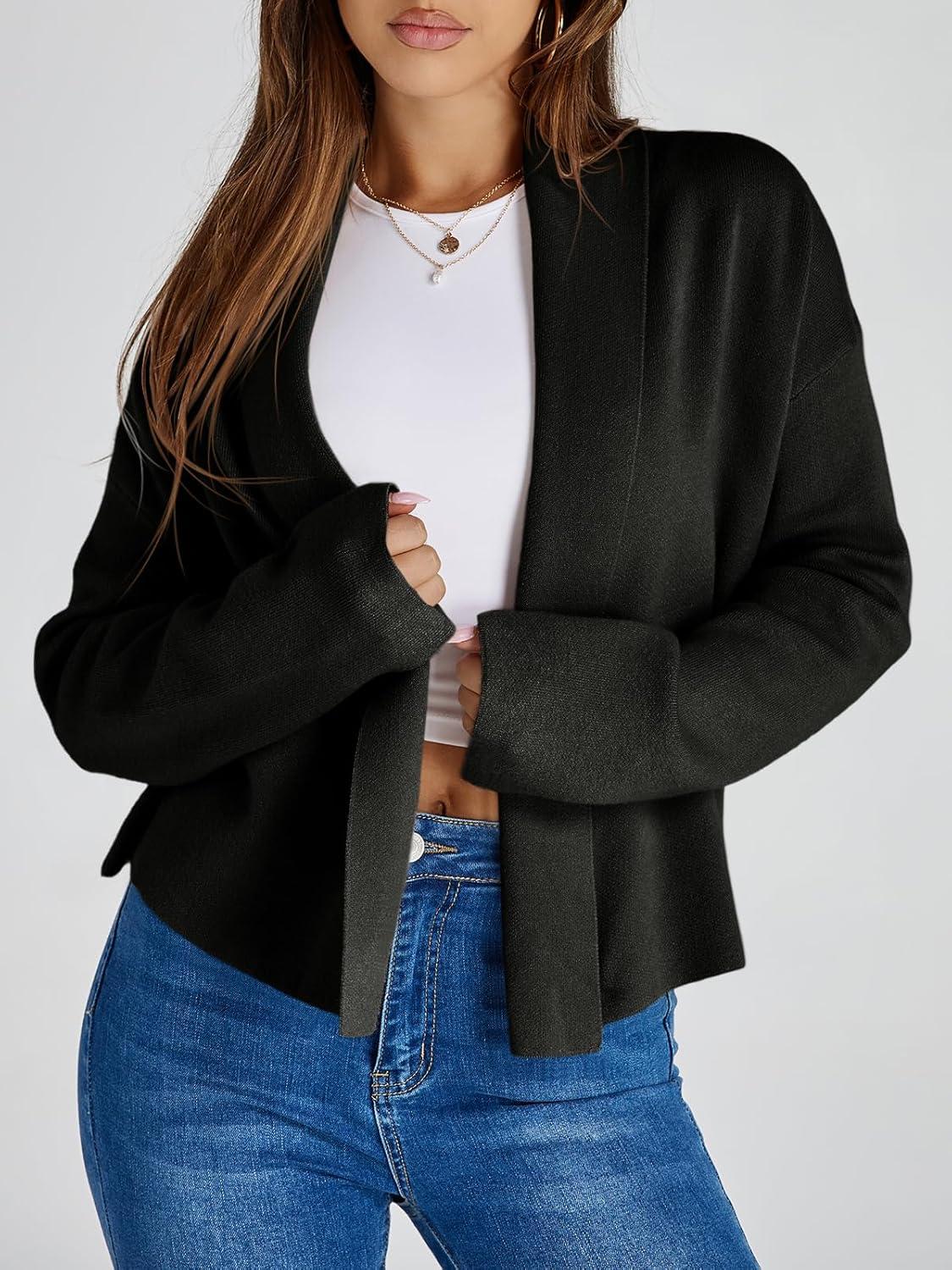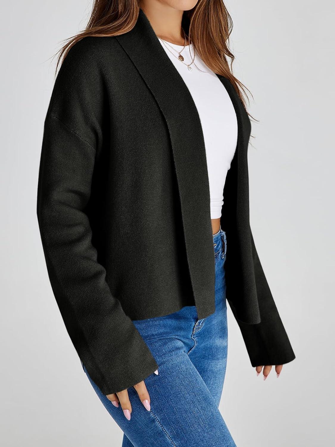 Saodimallsu Womens Cropped Cardigan Open Front Shawl 2025 Fall Trendy Long Sleeve Sweater Jacket(Black)