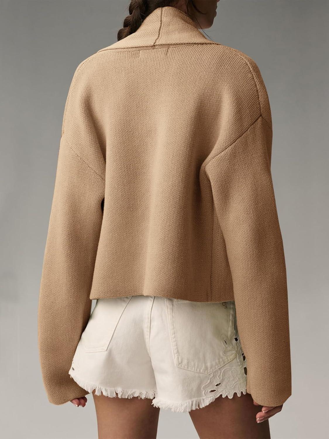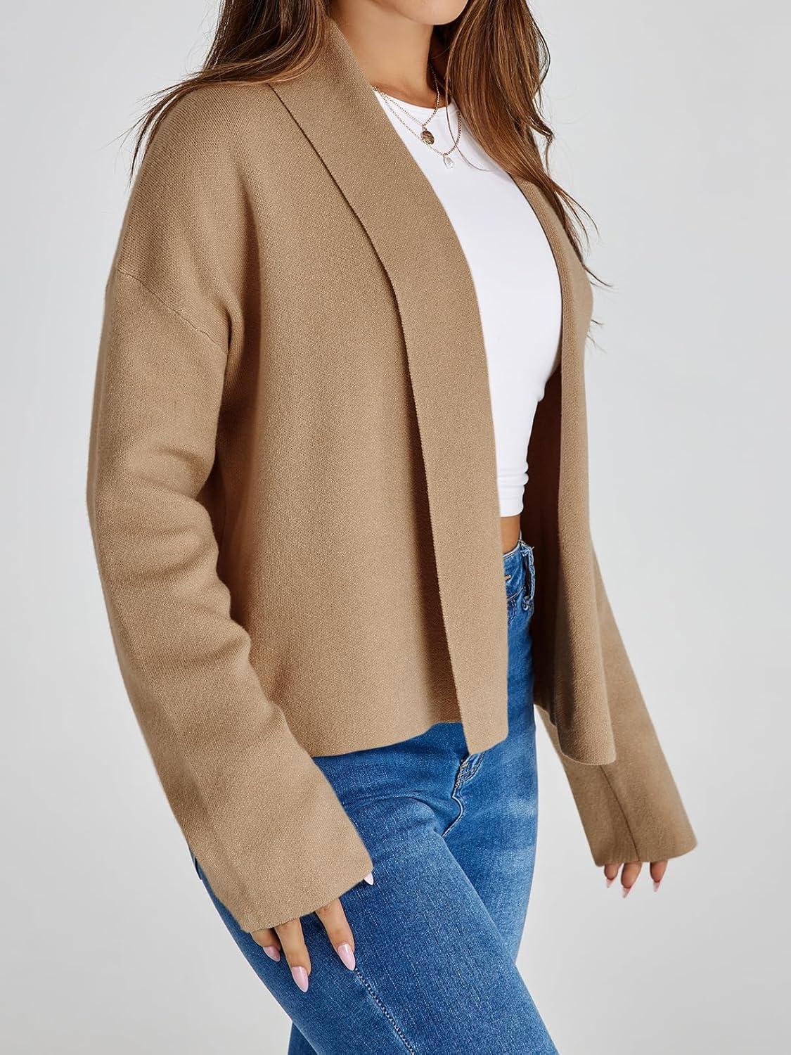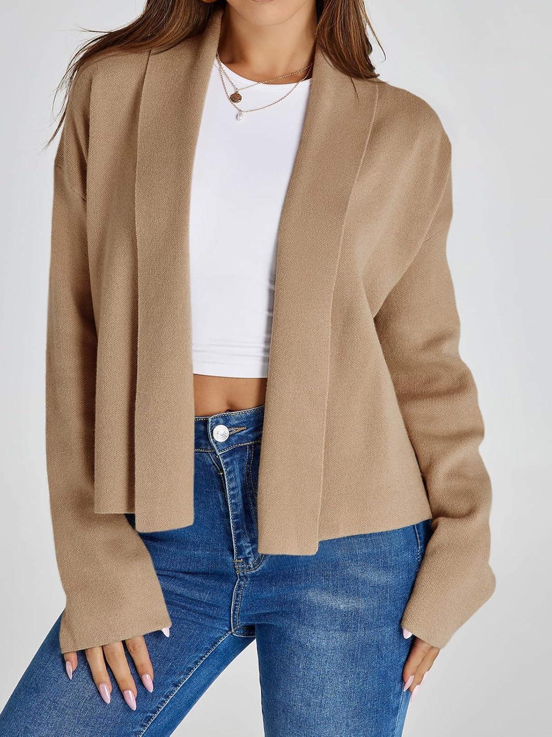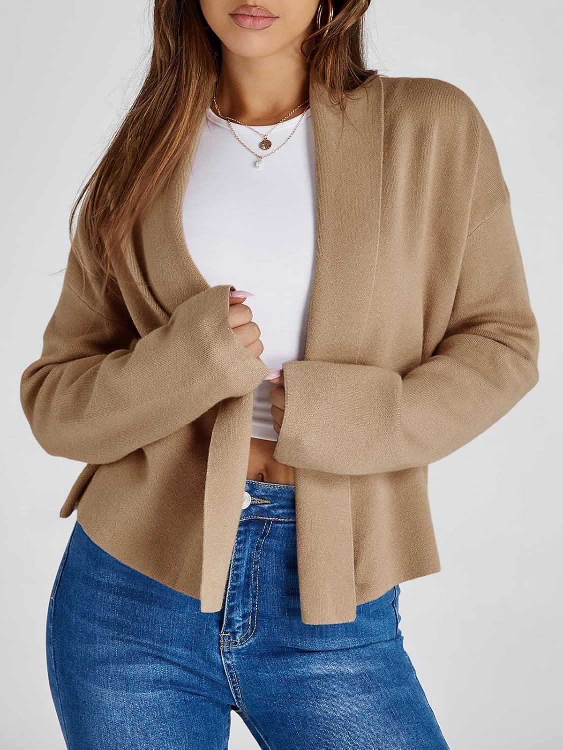 Saodimallsu Womens Cropped Cardigan Open Front Shawl 2025 Fall Trendy Long Sleeve Sweater Jacket(Camel)