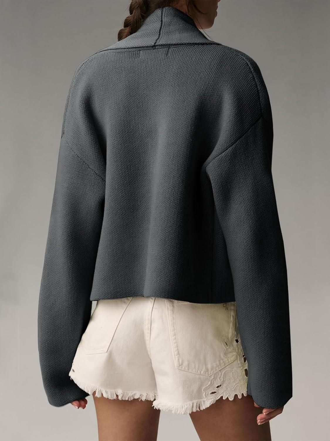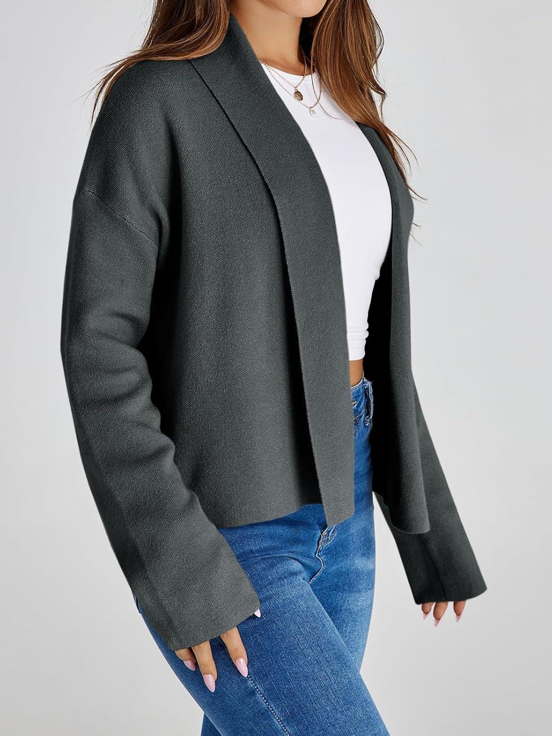 Saodimallsu Womens Cropped Cardigan Open Front Shawl 2025 Fall Trendy Long Sleeve Sweater Jacket(Dark Grey)
