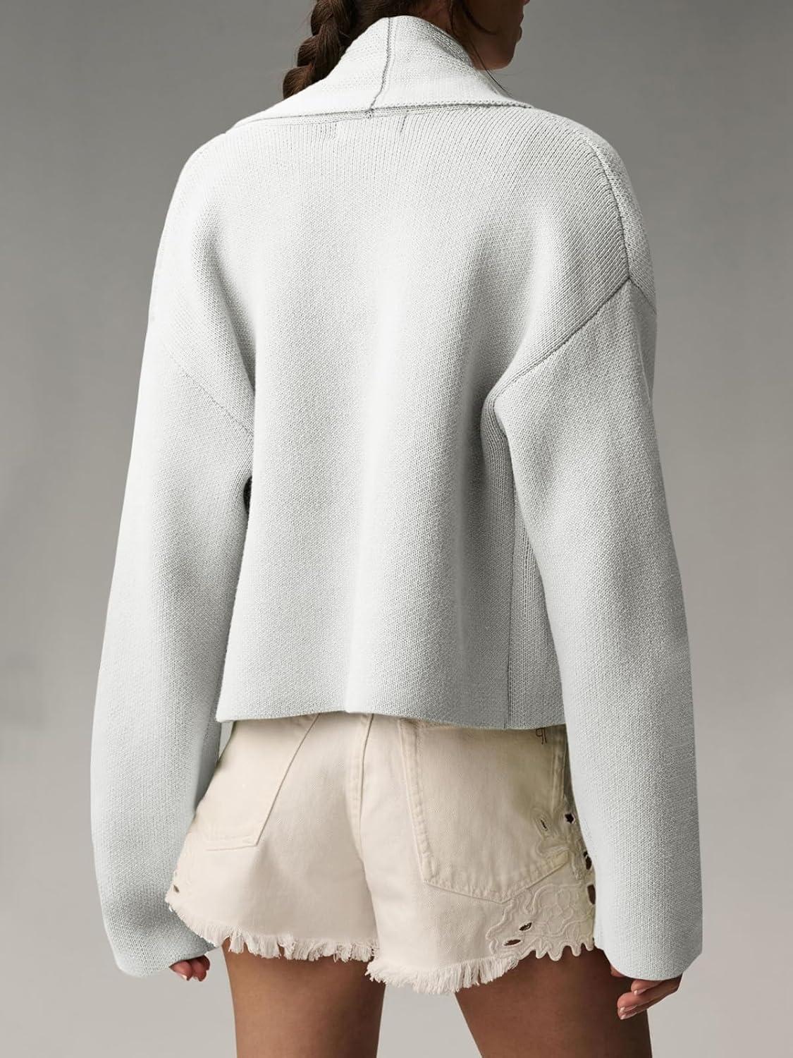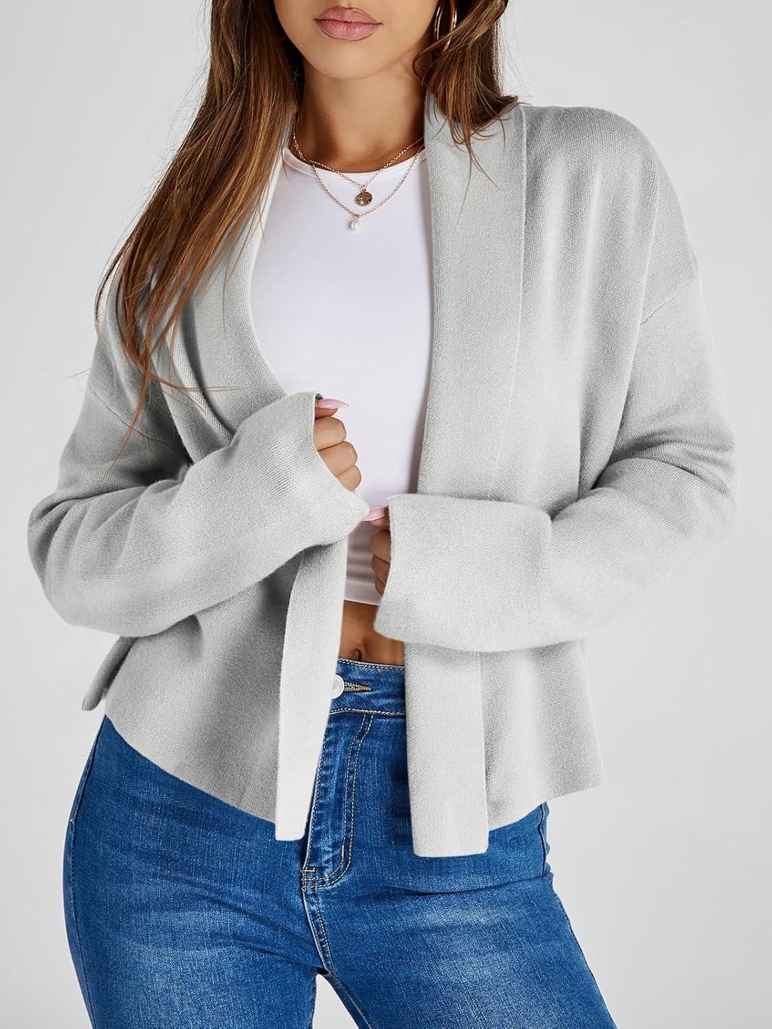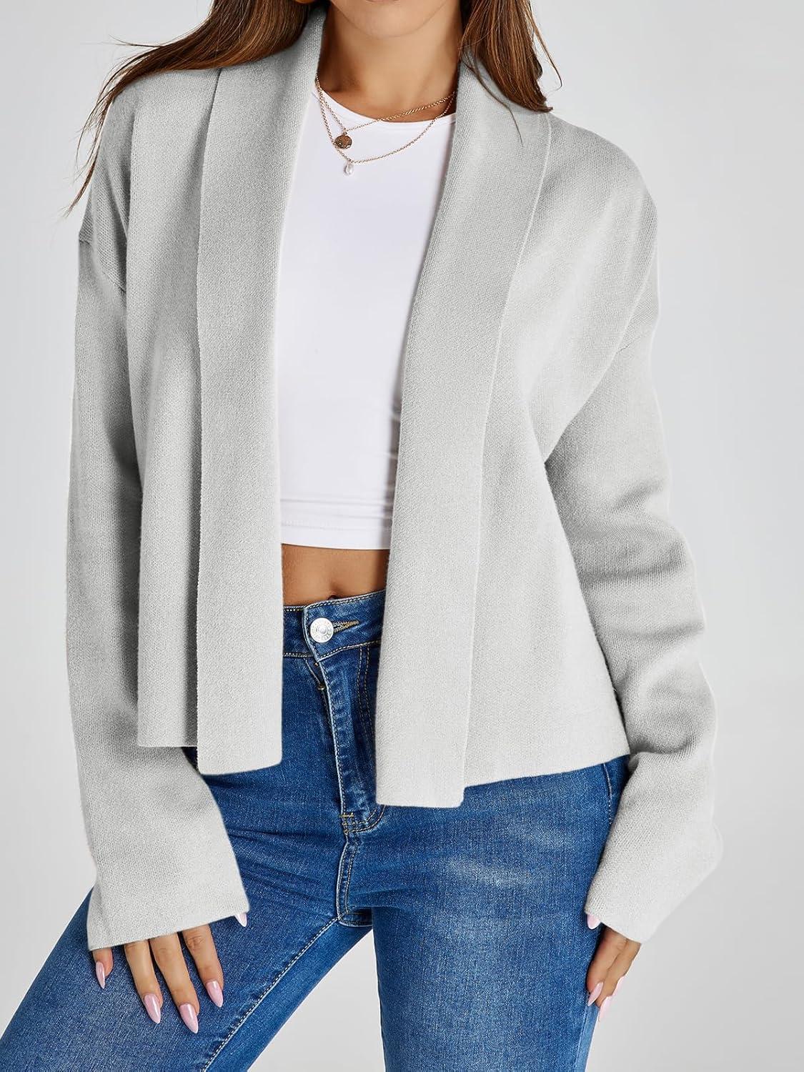 Saodimallsu Womens Cropped Cardigan Open Front Shawl 2025 Fall Trendy Long Sleeve Sweater Jacket(Light Grey)