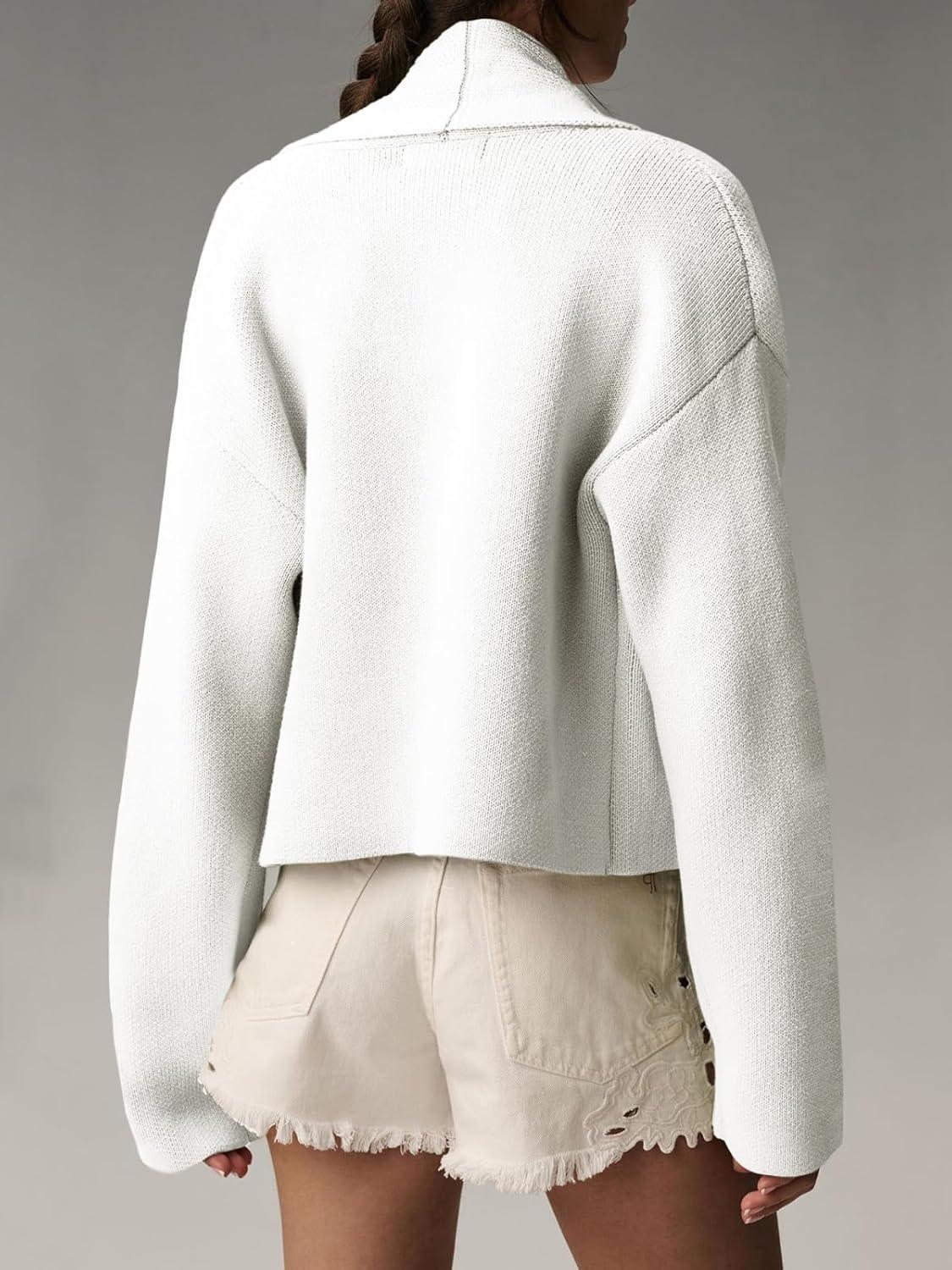 Saodimallsu Womens Cropped Cardigan Open Front Shawl 2025 Fall Trendy Long Sleeve Sweater Jacket(White)