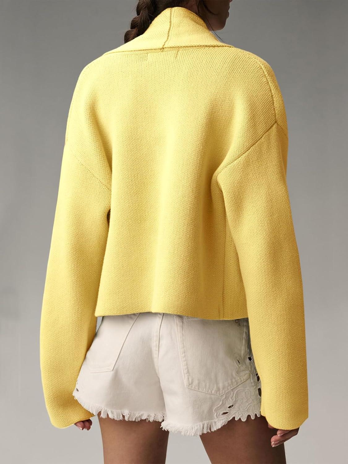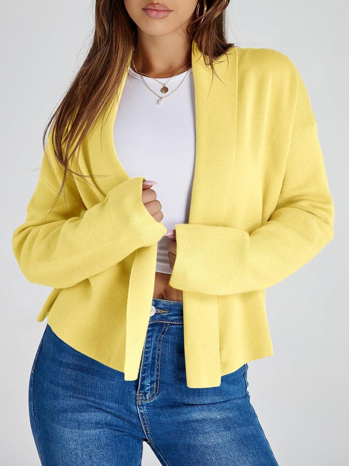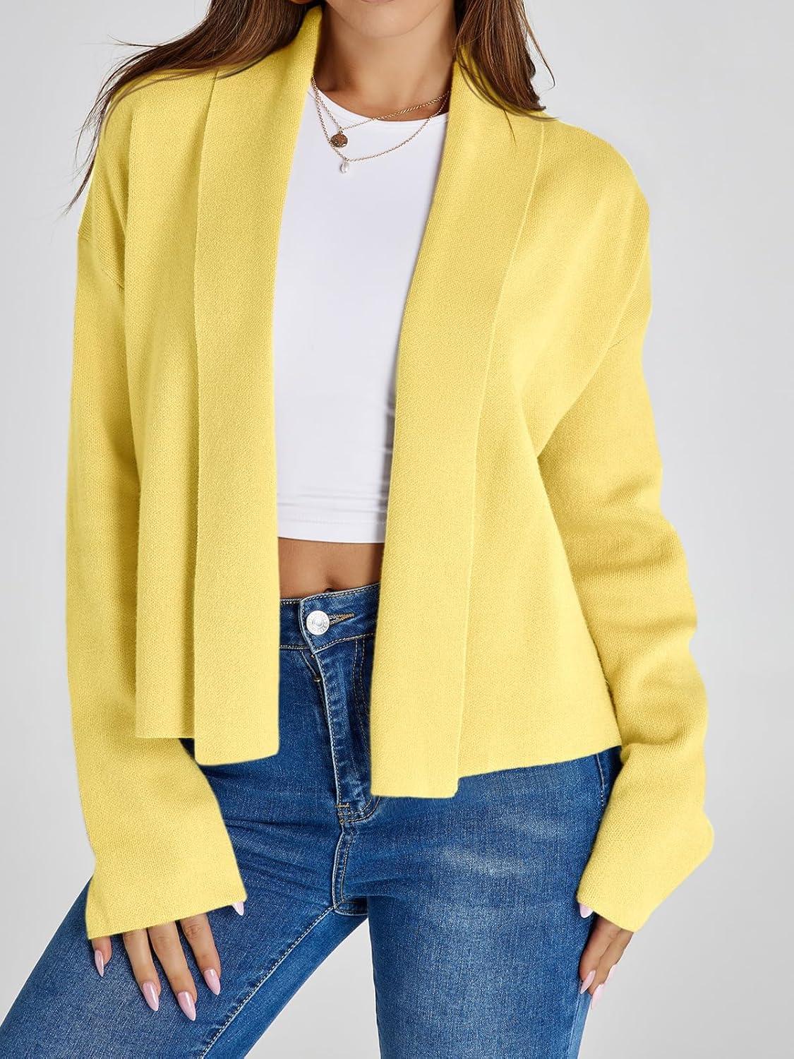 Saodimallsu Womens Cropped Cardigan Open Front Shawl 2025 Fall Trendy Long Sleeve Sweater Jacket(Yellow)