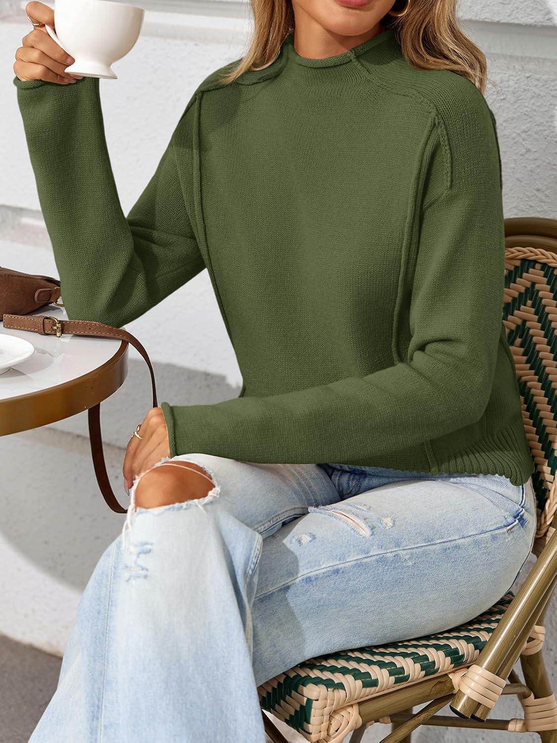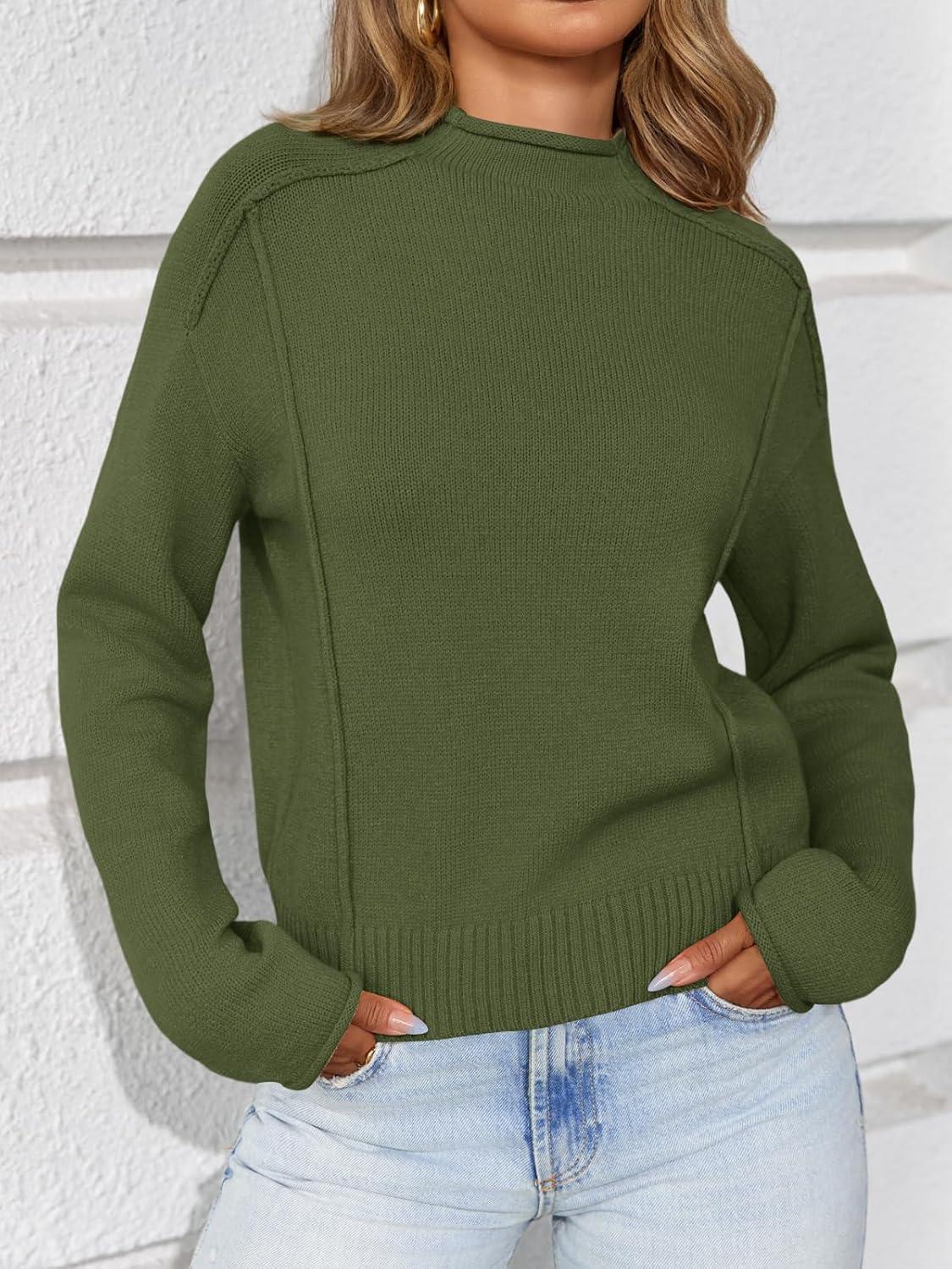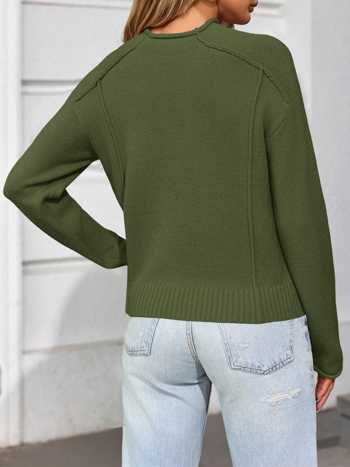 Saodimallsu Womens Cropped Sweaters Long Sleeve Mock Neck Soft Knit Casual Loose Fit Fall Pullover Sweater Tops(Army Green)