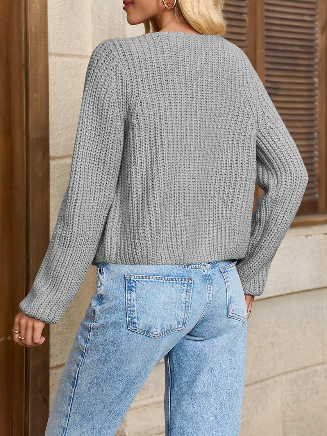 Saodimallsu Womens Cropped V Neck Cardigan Sweaters Long Sleeve Button Down Chunky Ribbed Knit Loose Crop Sweater Tops(Gray)
