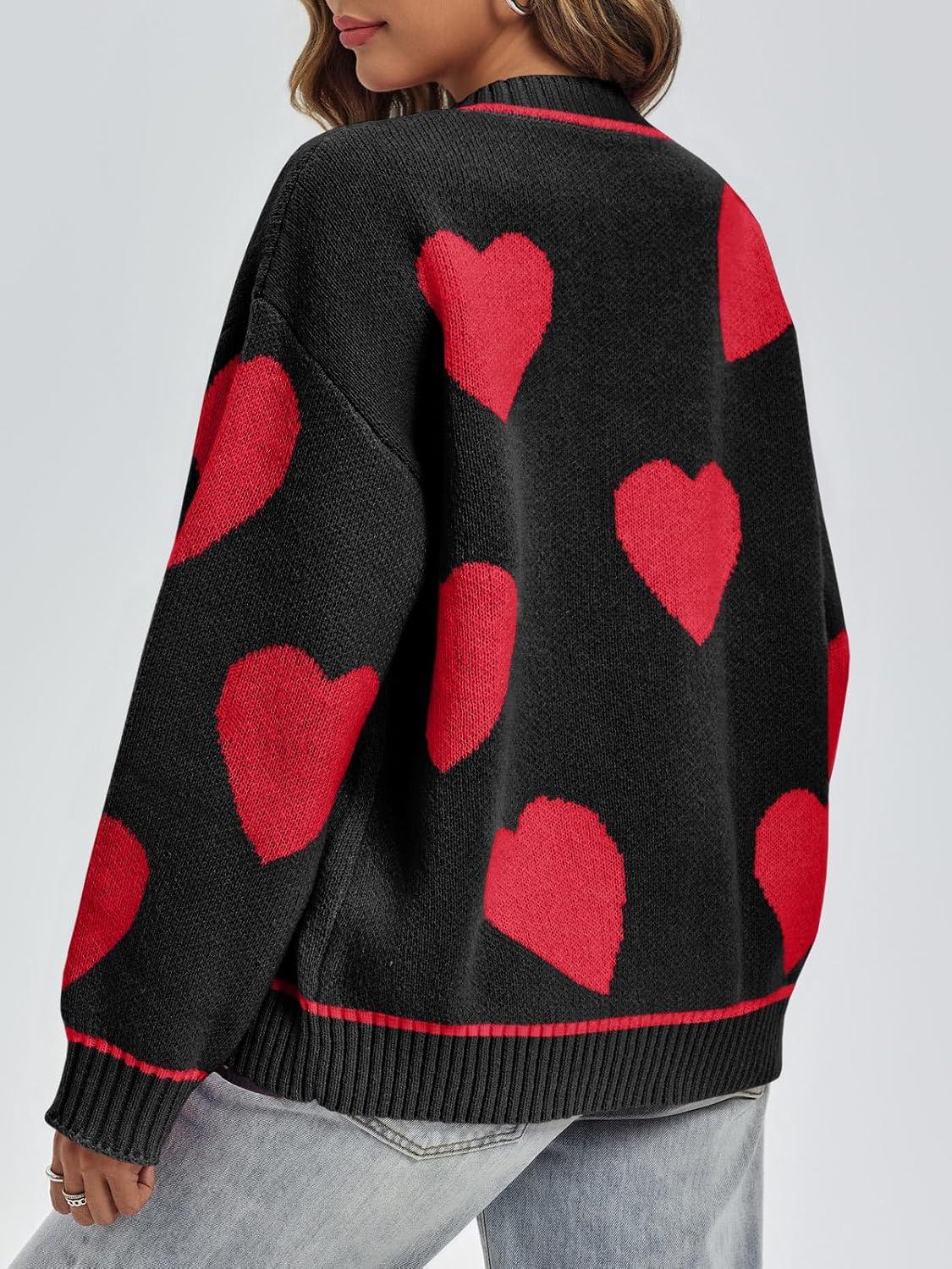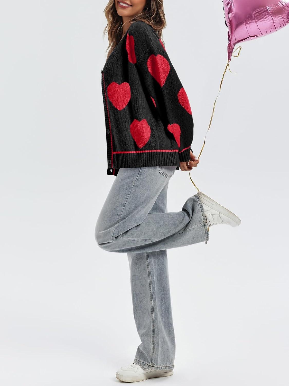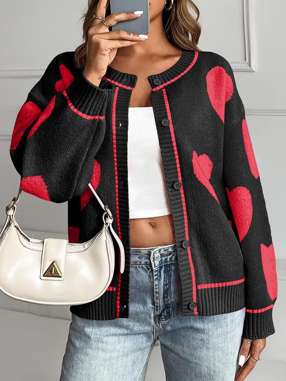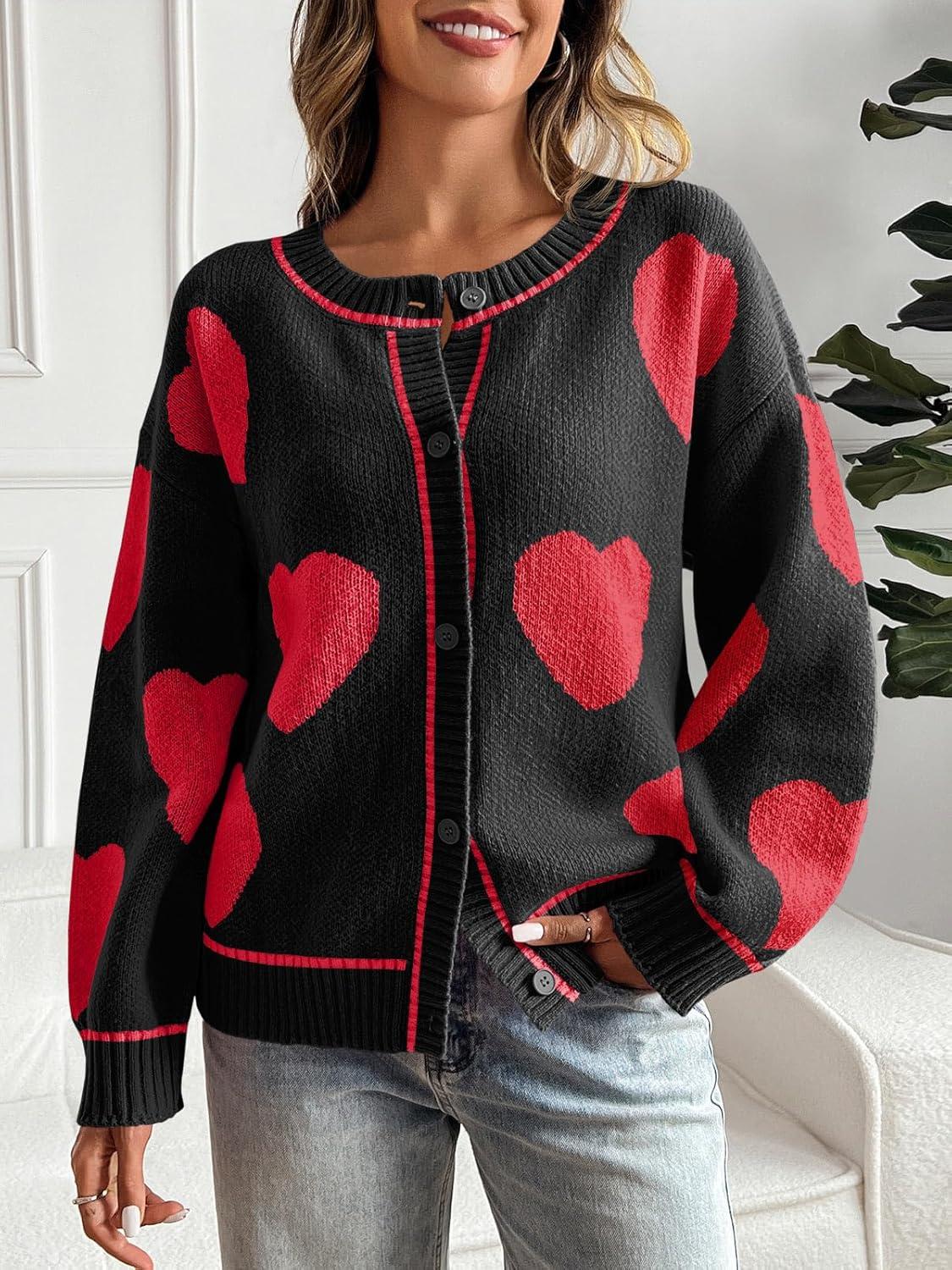 Saodimallsu Womens Cute Heart Cardigan Sweaters Chunky Knit Button Down Crewneck Long Sleeve Sweater Coat(Black)