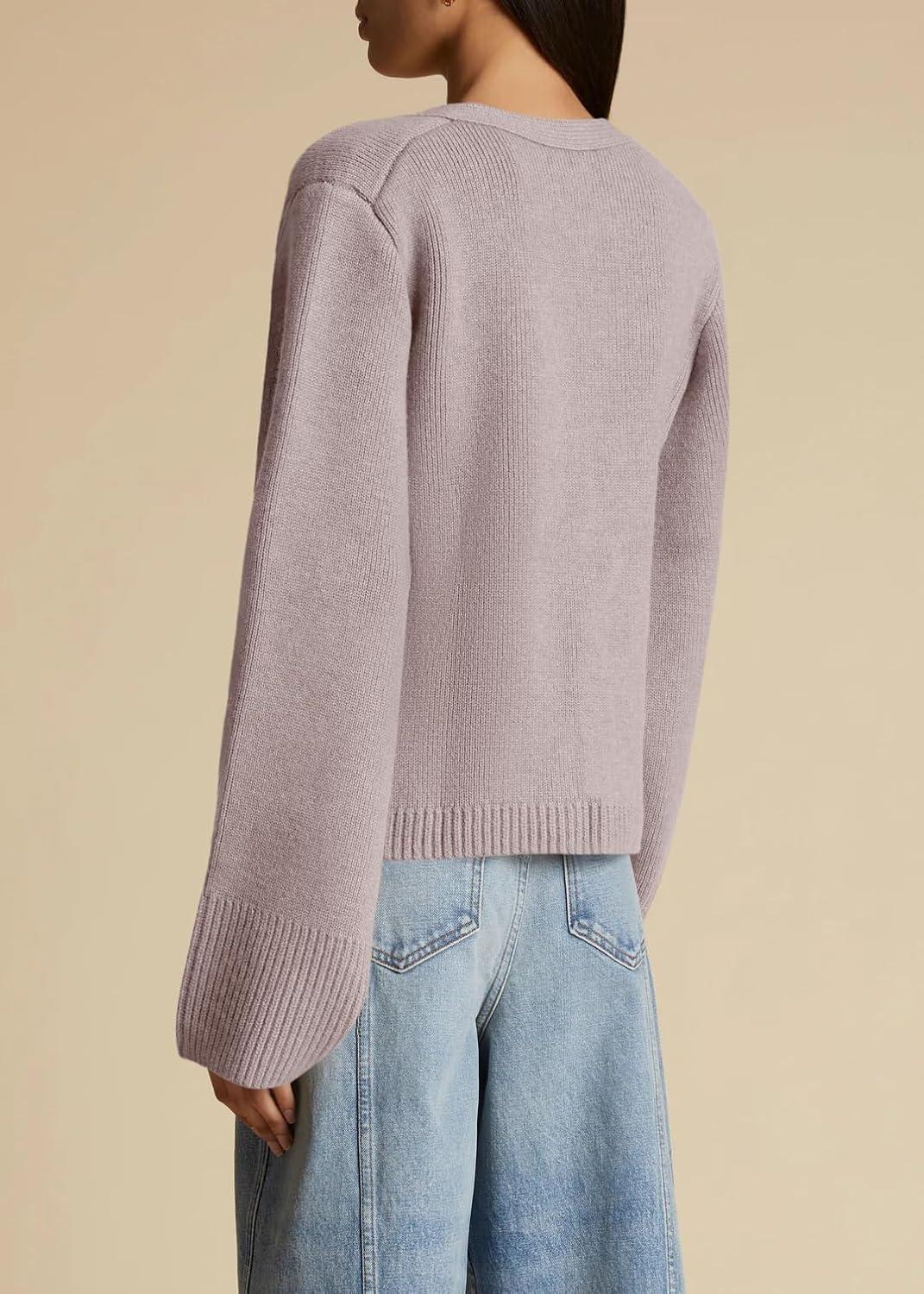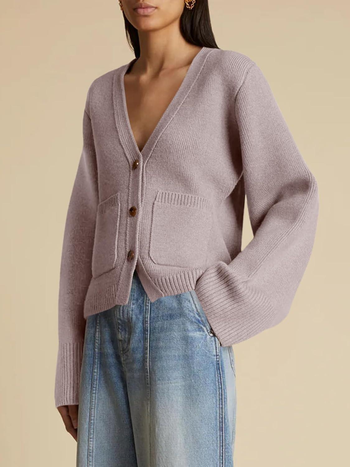 Saodimallsu Womens Deep V Neck Cardigan Sweaters Open Front Button Down Long Sleeve Cropped Knit Coats with Pockets(Camel)