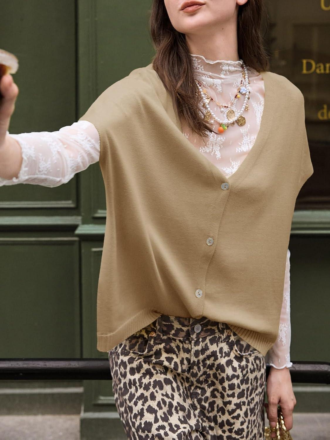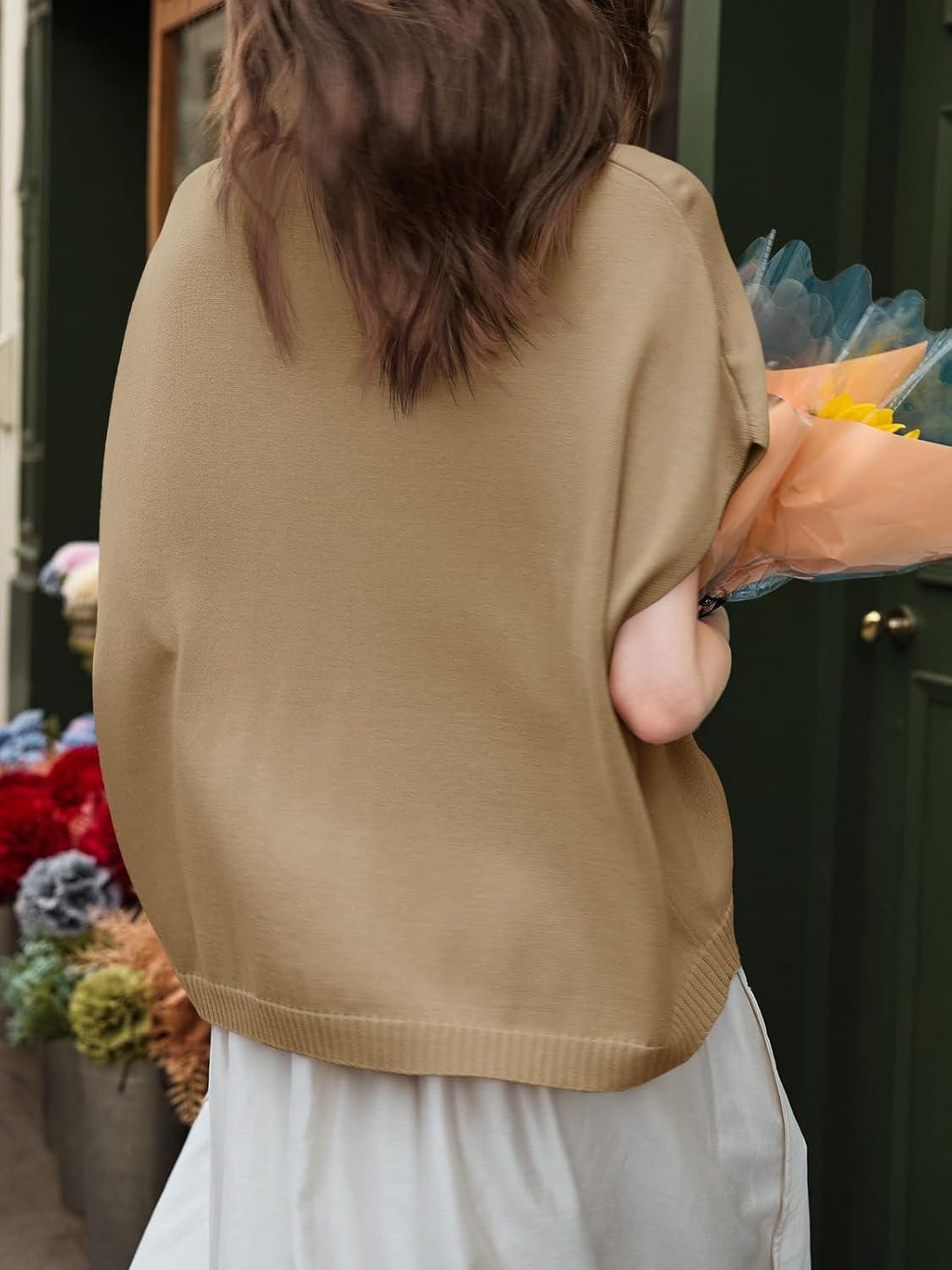 Saodimallsu Womens Fall Oversized Cardigans Batwing Short Sleeve Lightweight Button V Neck Casual Knit Sweater Tops(Dark Khaki)
