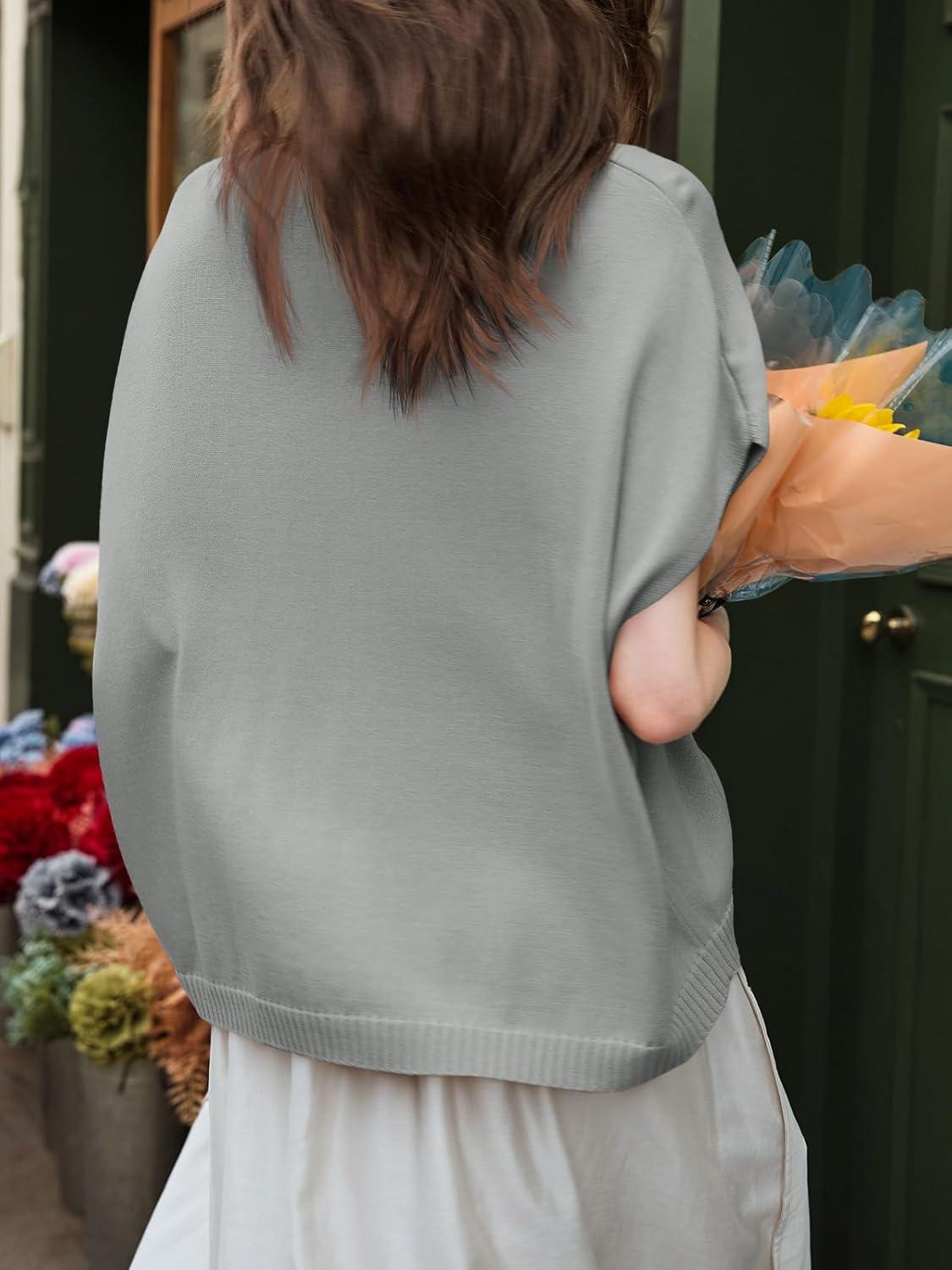 Saodimallsu Womens Fall Oversized Cardigans Batwing Short Sleeve Lightweight Button V Neck Casual Knit Sweater Tops(Gray)