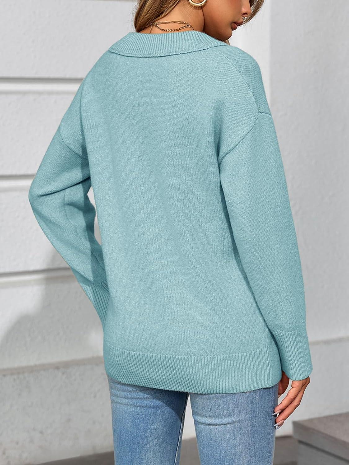 Saodimallsu Womens Fall Tunic Sweaters Long Sleeve Chunky Knit V Neck Casual Loose Fit Pullover Tops(Teal)