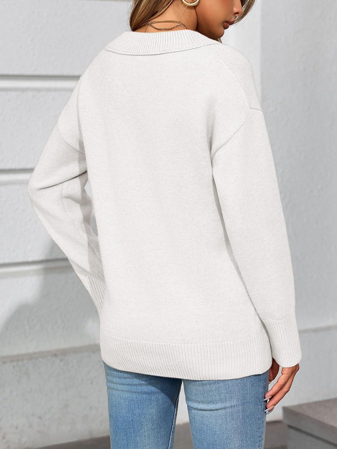 Saodimallsu Womens Fall Tunic Sweaters Long Sleeve Chunky Knit V Neck Casual Loose Fit Pullover Tops(White)