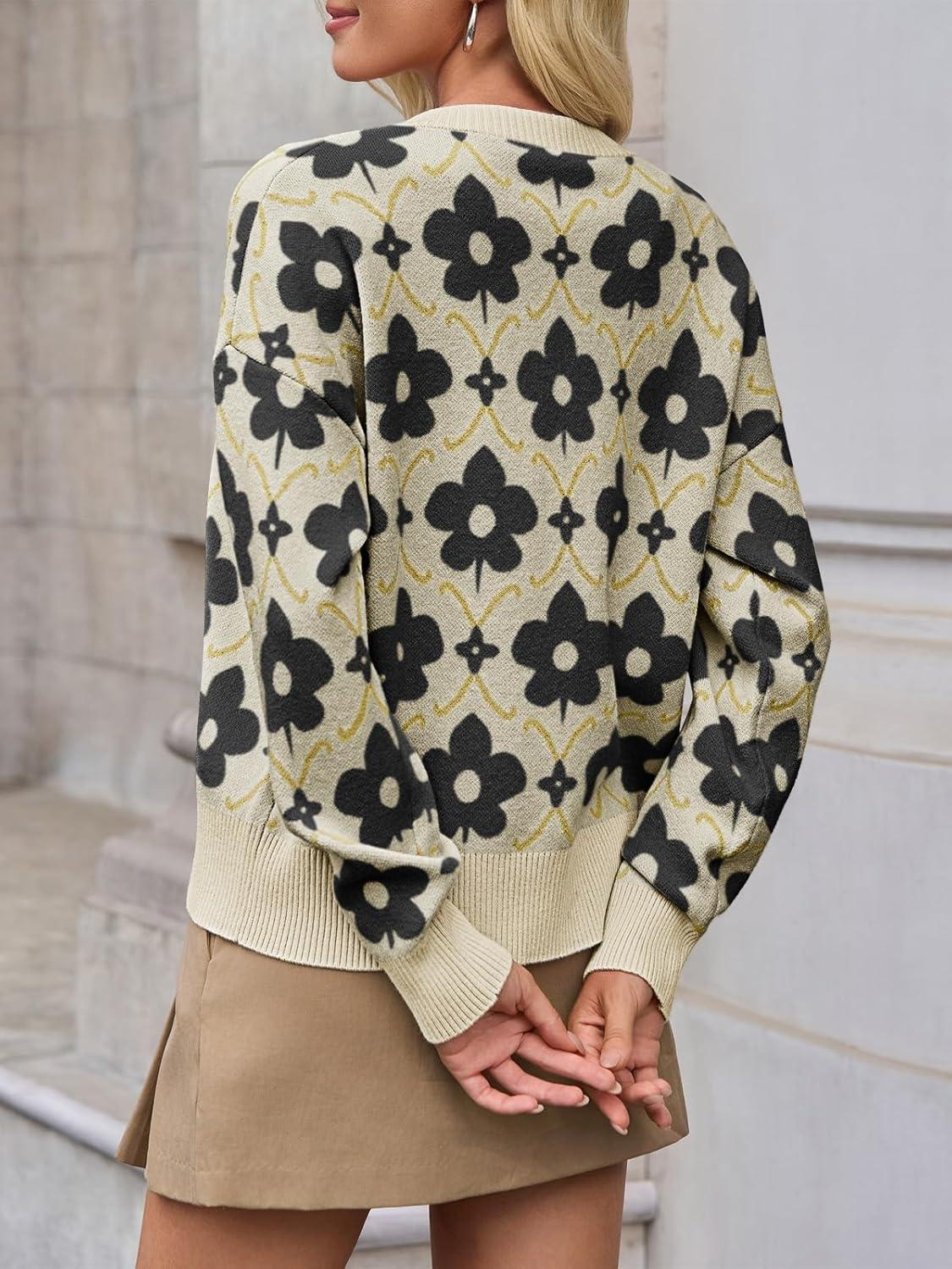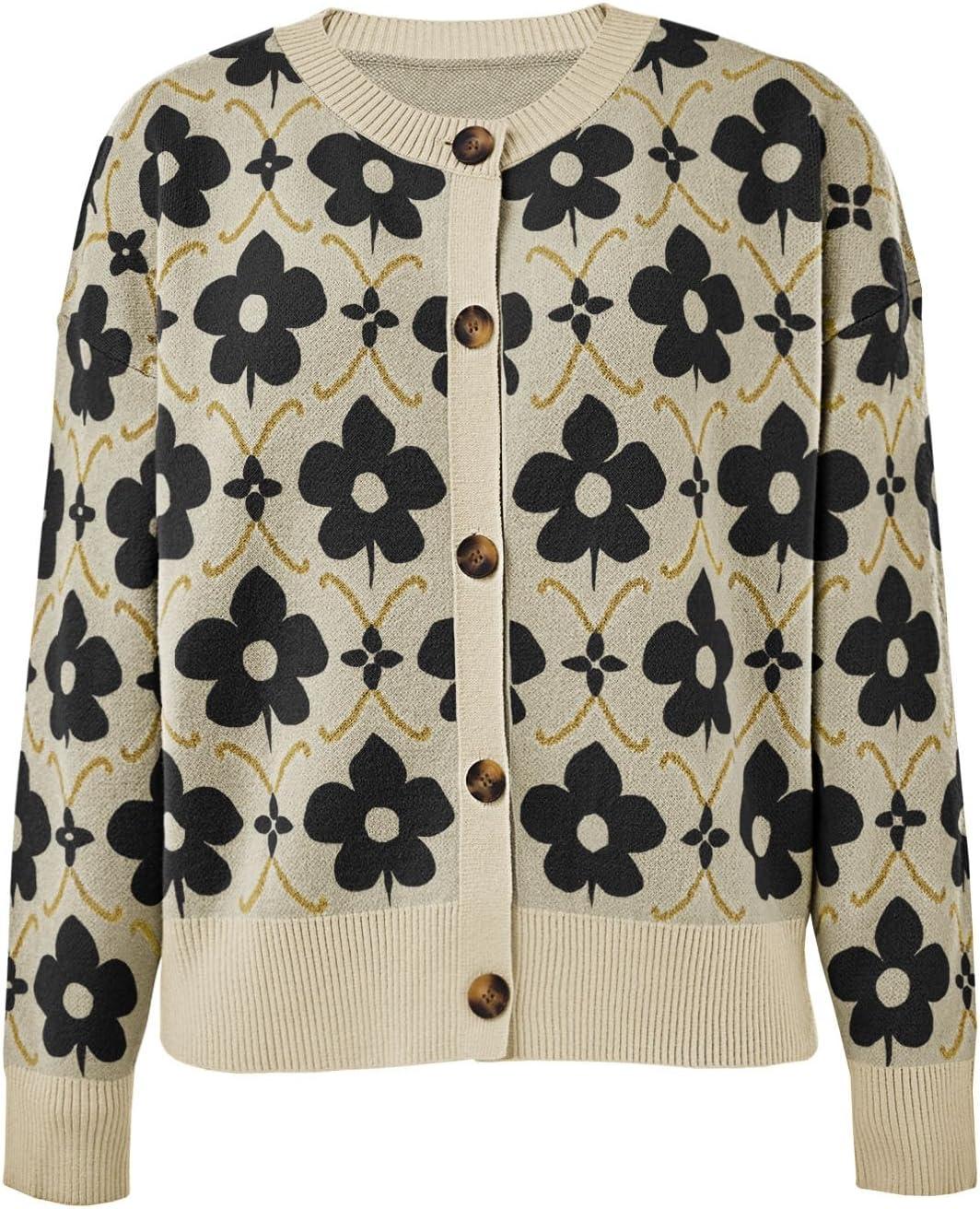 Saodimallsu Womens Floral Cardigan Sweaters Long Sleeve Open Front Button Down Knit Retro Sweater Coat Outwear Fall 2025(Black)