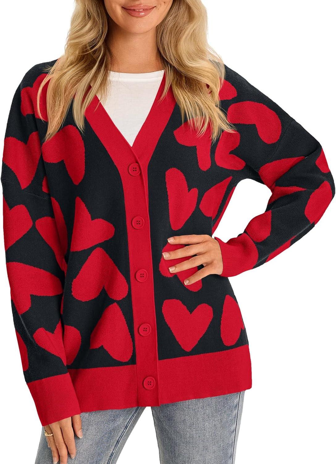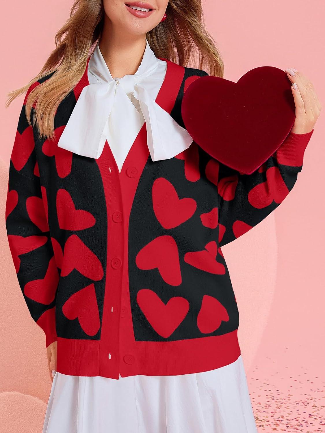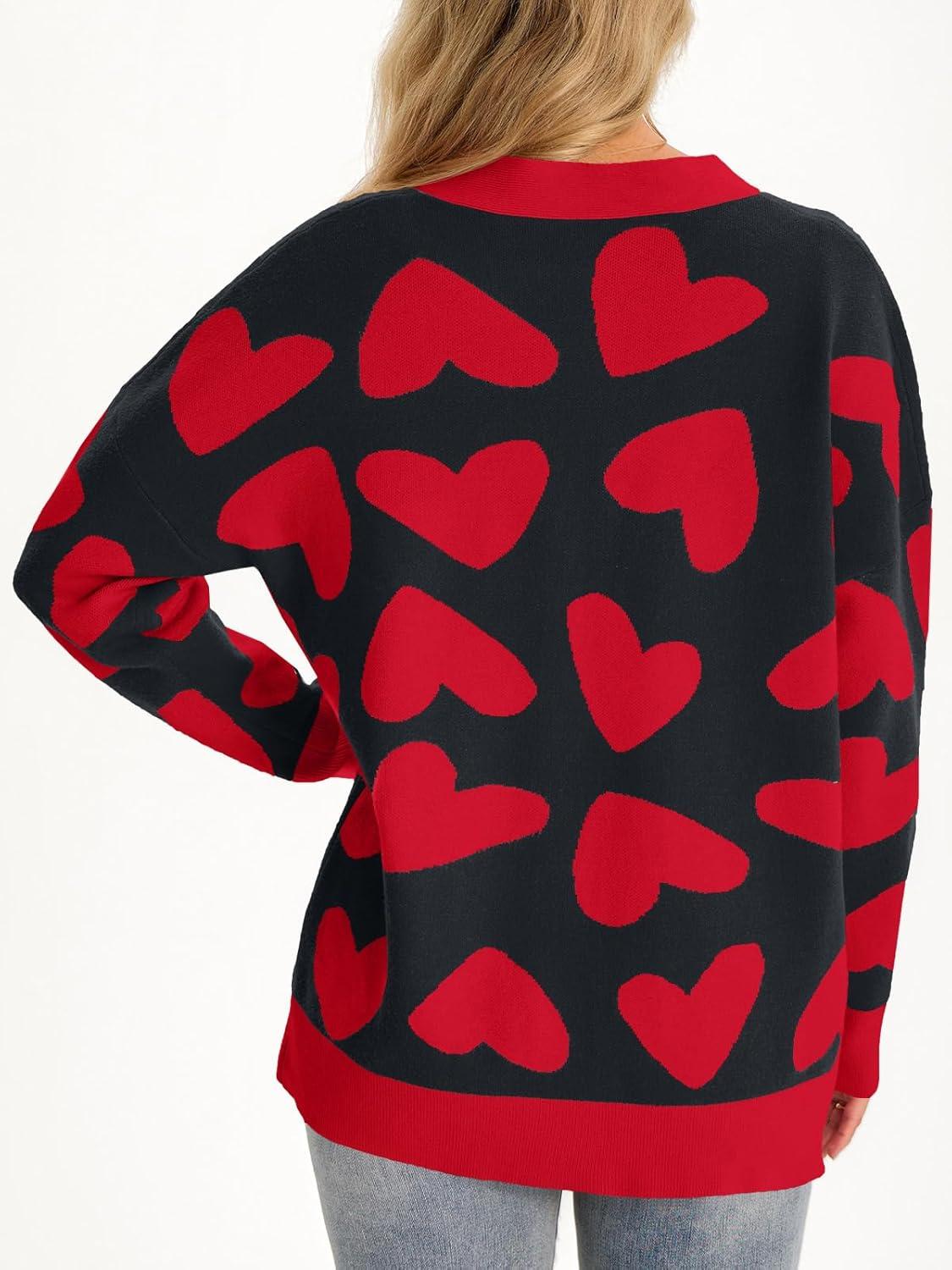 Saodimallsu Womens Heart Cardigan Sweaters Cute Valentines Oversized V Neck Button Up Winter Sweater Coats(Black)