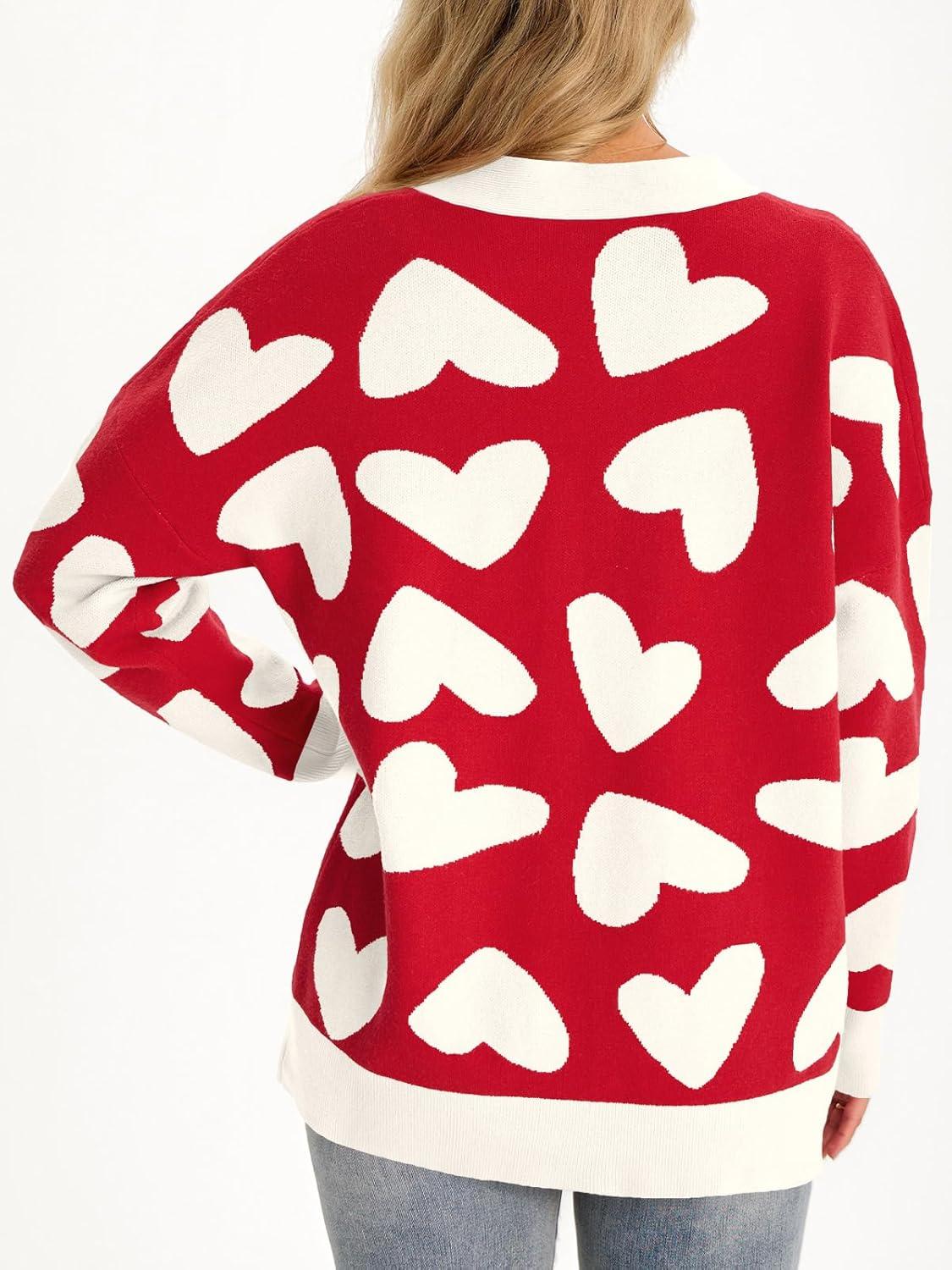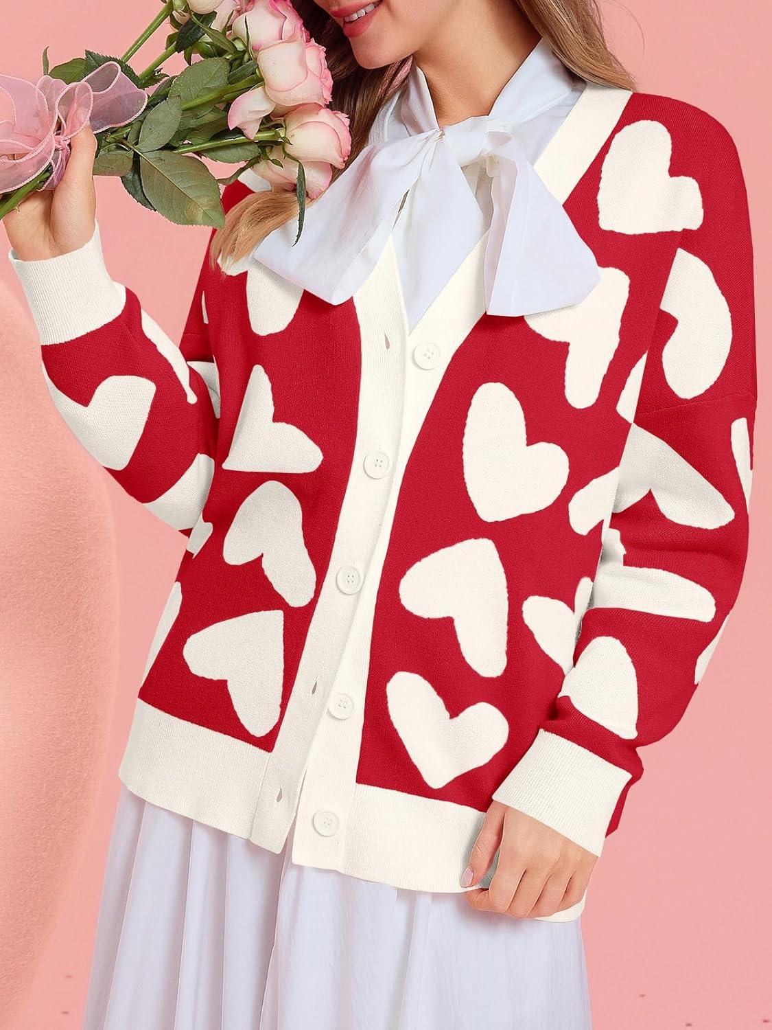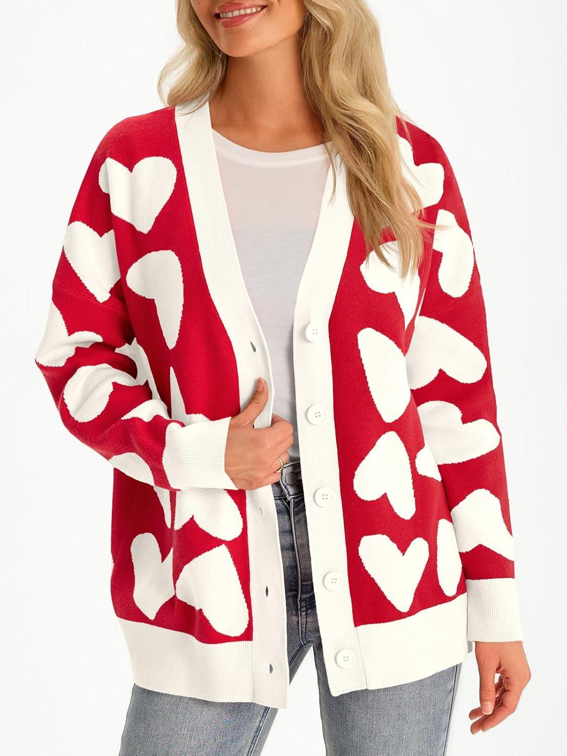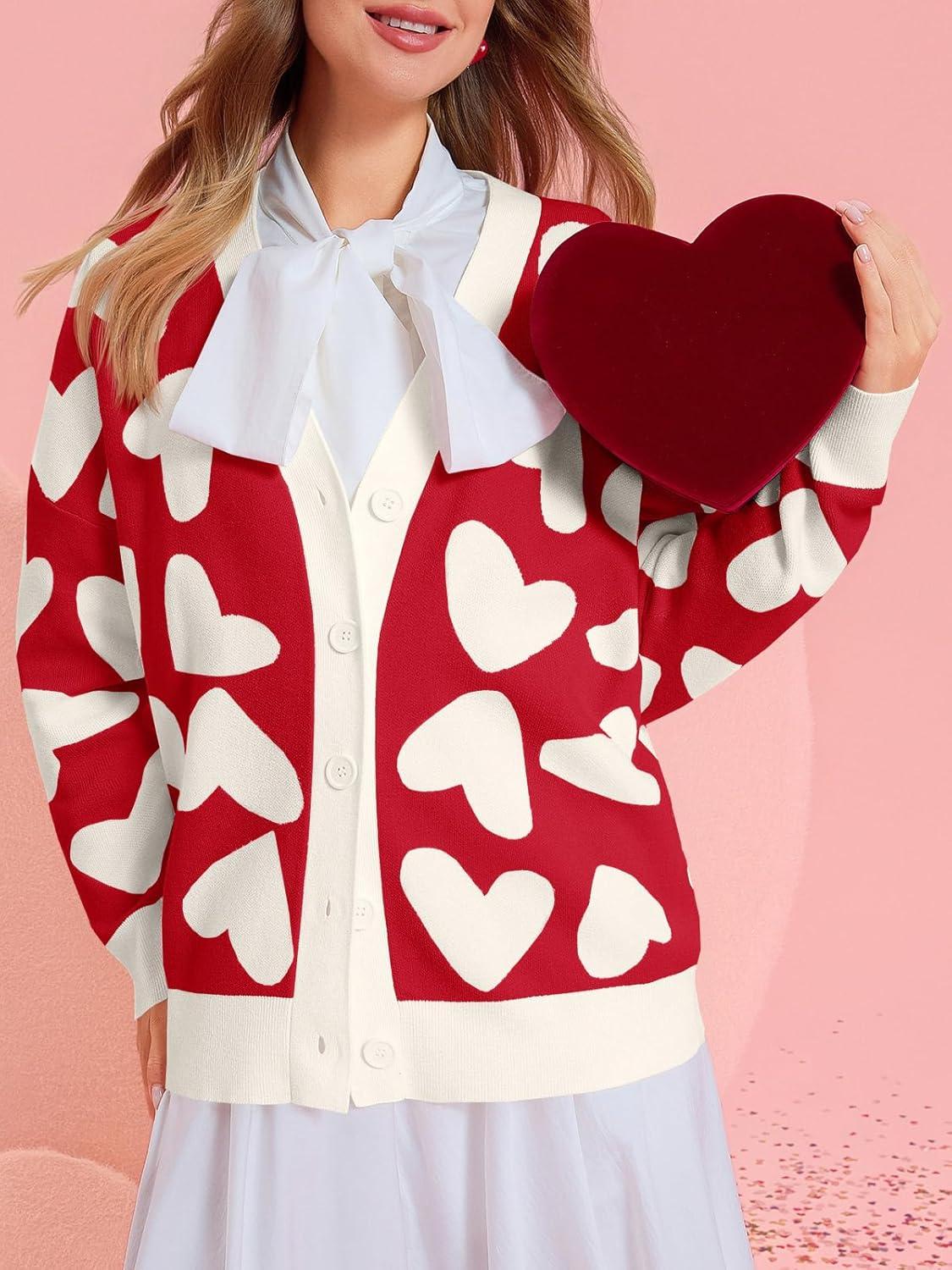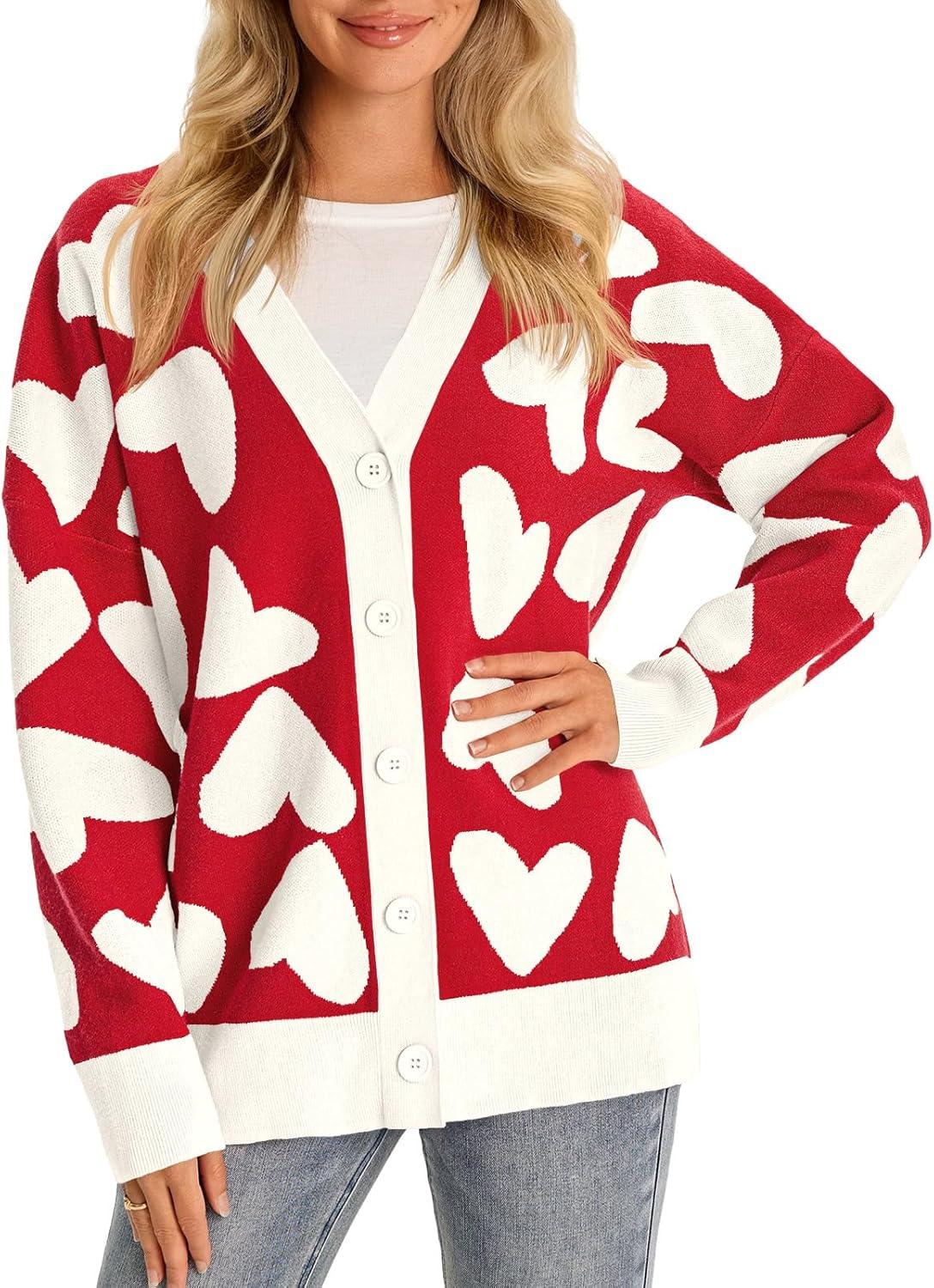 Saodimallsu Womens Heart Cardigan Sweaters Cute Valentines Oversized V Neck Button Up Winter Sweater Coats(Red)