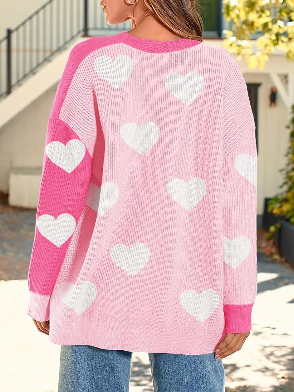Saodimallsu Womens Heart Cardigan Sweaters Valentines Oversized Winter Color Block Button Up Cute Ribbed Sweater Coats(Pink)