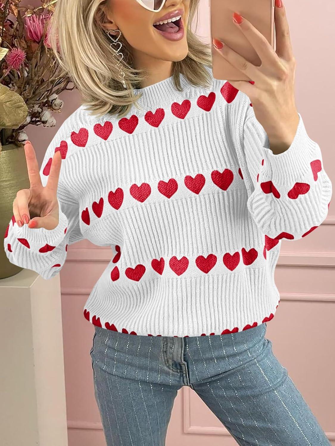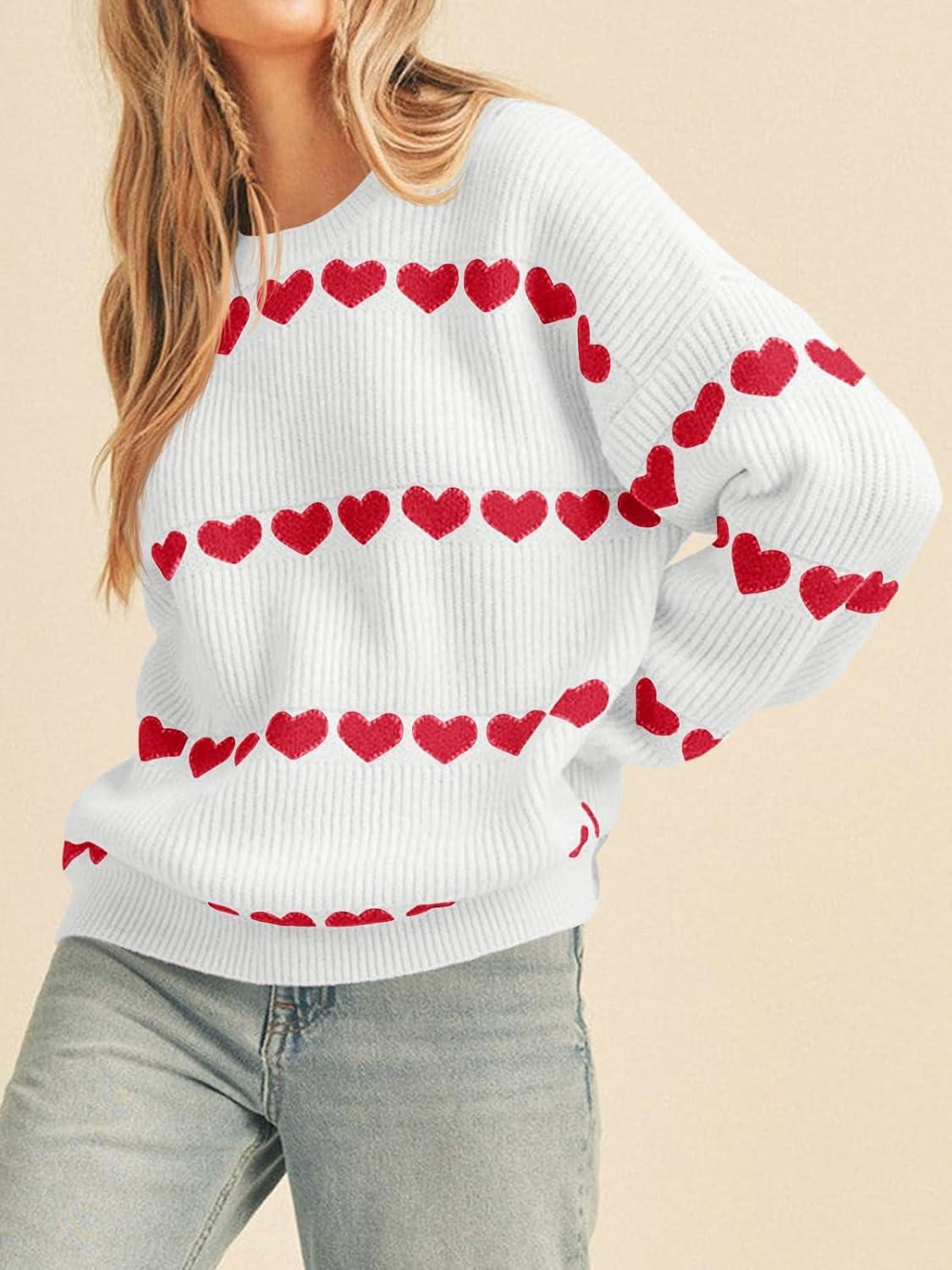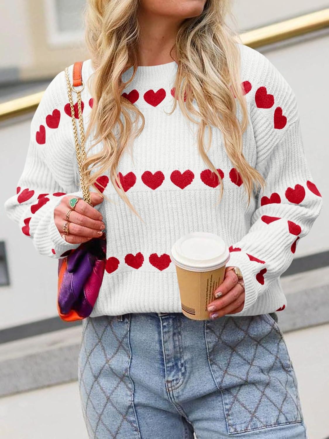 Saodimallsu Womens Heart Sweater Valentine Crew Neck Cute Ribbed Knit Loose Casual Pullover Sweaters Tops(White)