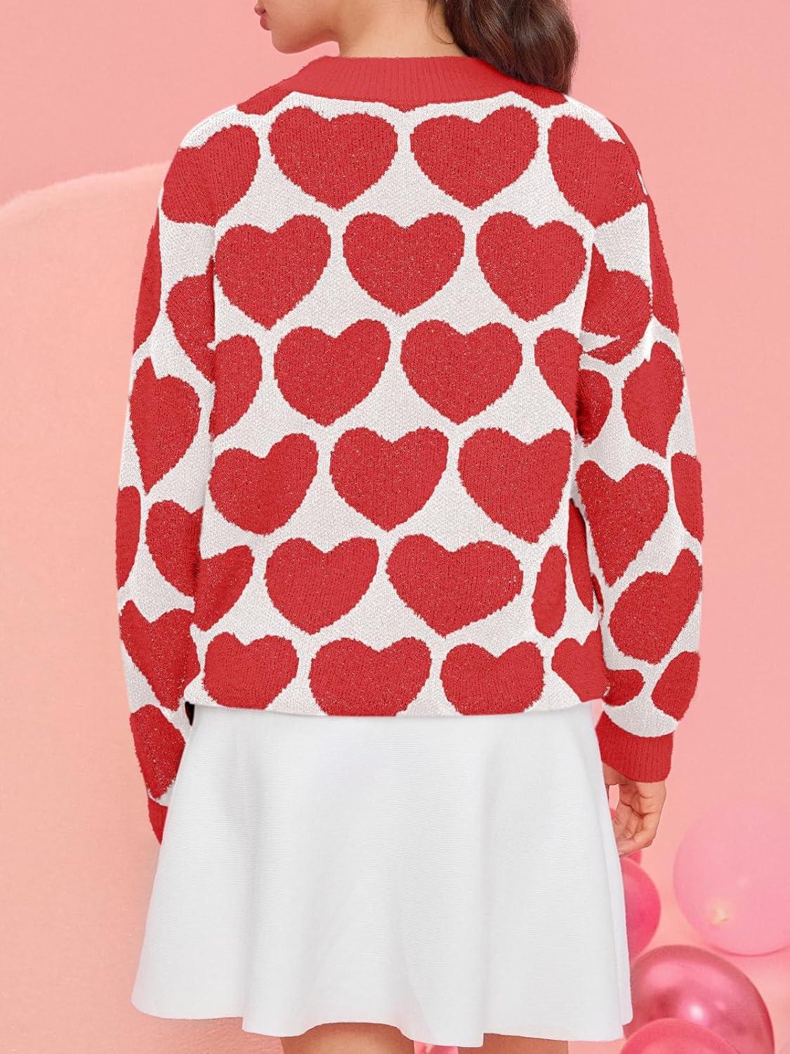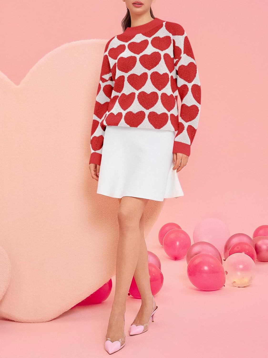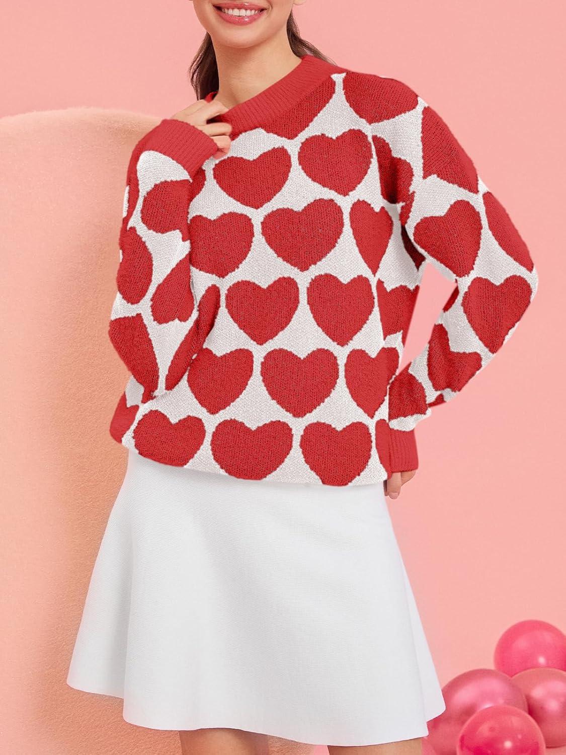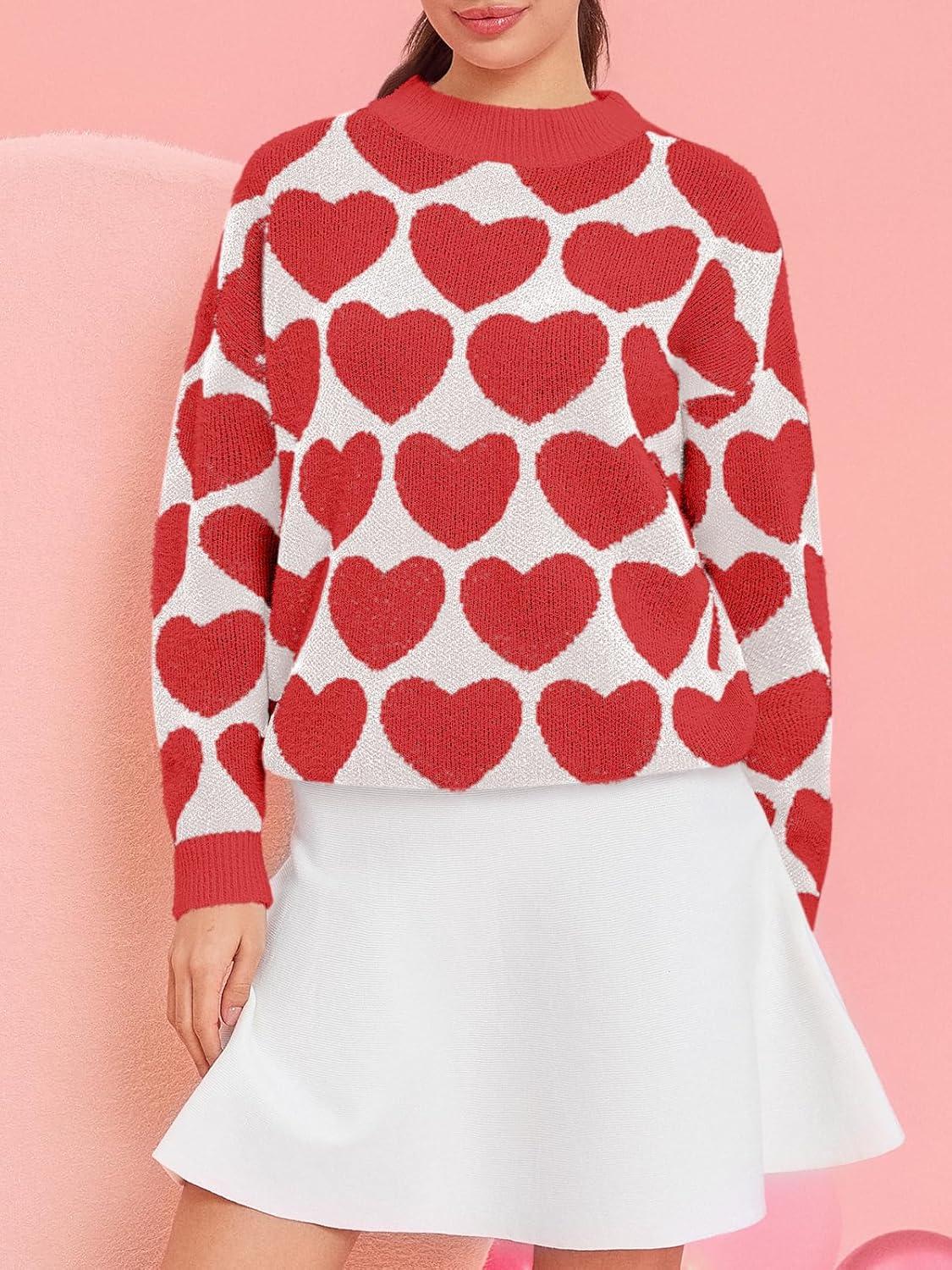 Saodimallsu Womens Heart Sweaters Valentines Fuzzy Knit Crewneck Cute Loose Sweaters(Red)