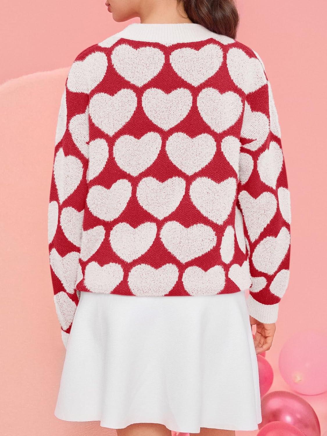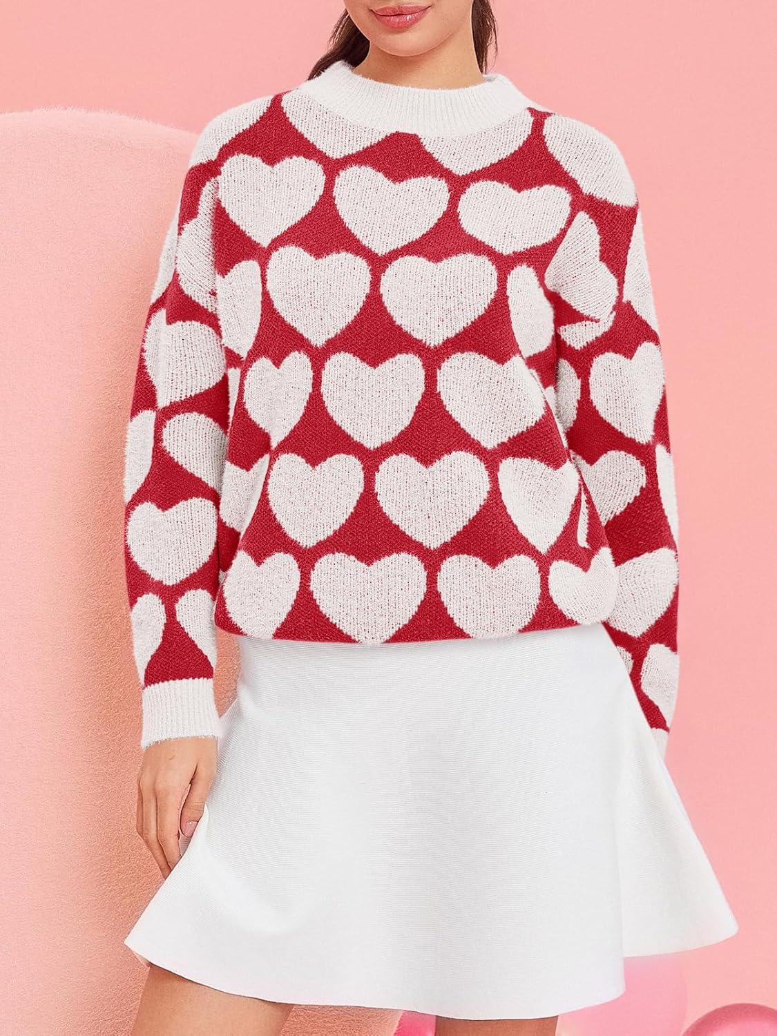 Saodimallsu Womens Heart Sweaters Valentines Fuzzy Knit Crewneck Cute Loose Sweaters(White)