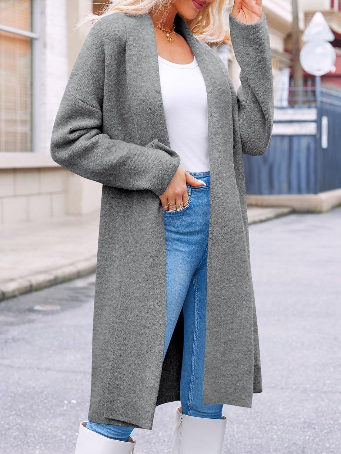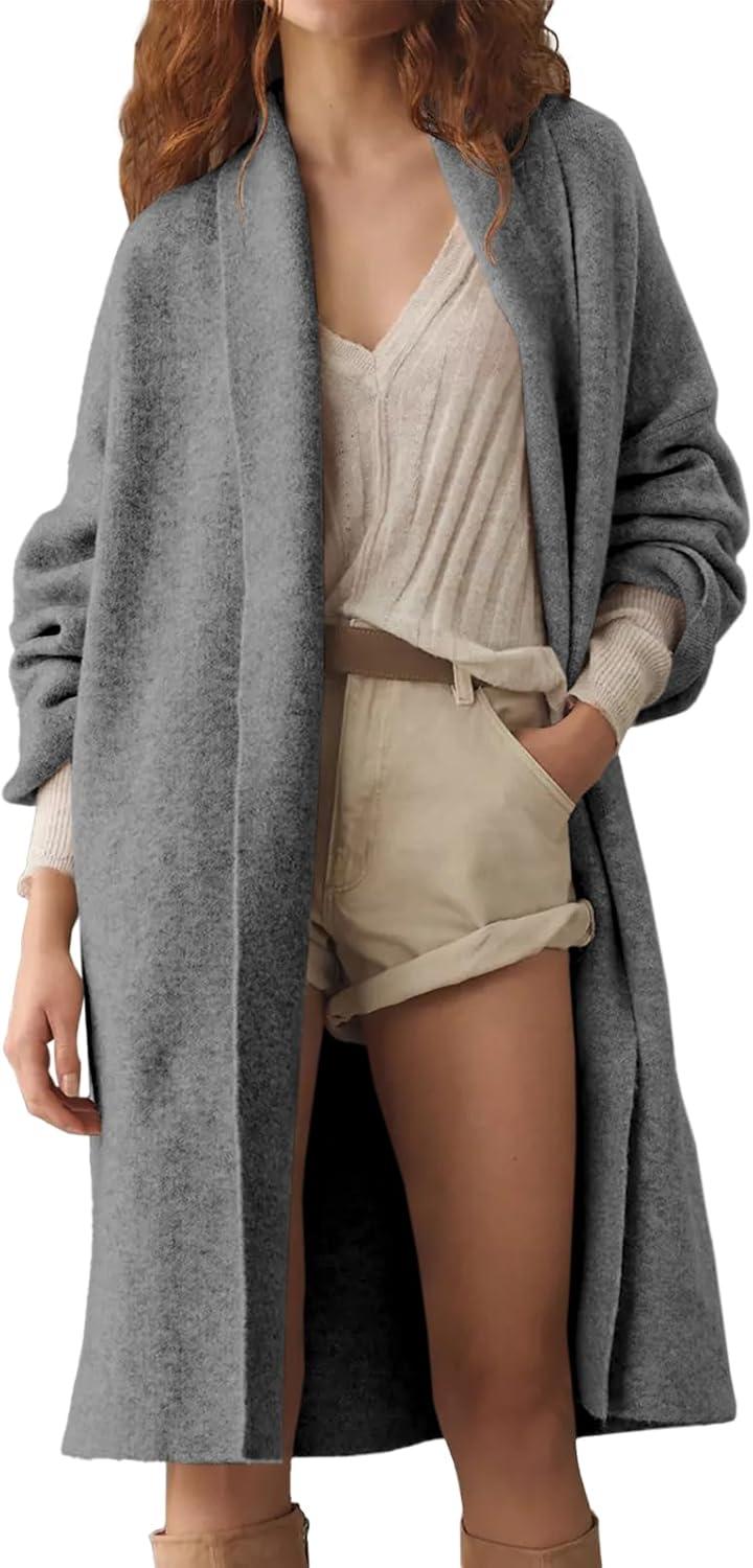 Saodimallsu Womens Long Cardigan Sweaters Chunky Open Front Oversized Slouchy Knit Fall Trendy Coatigan Jackets(Dark Grey)