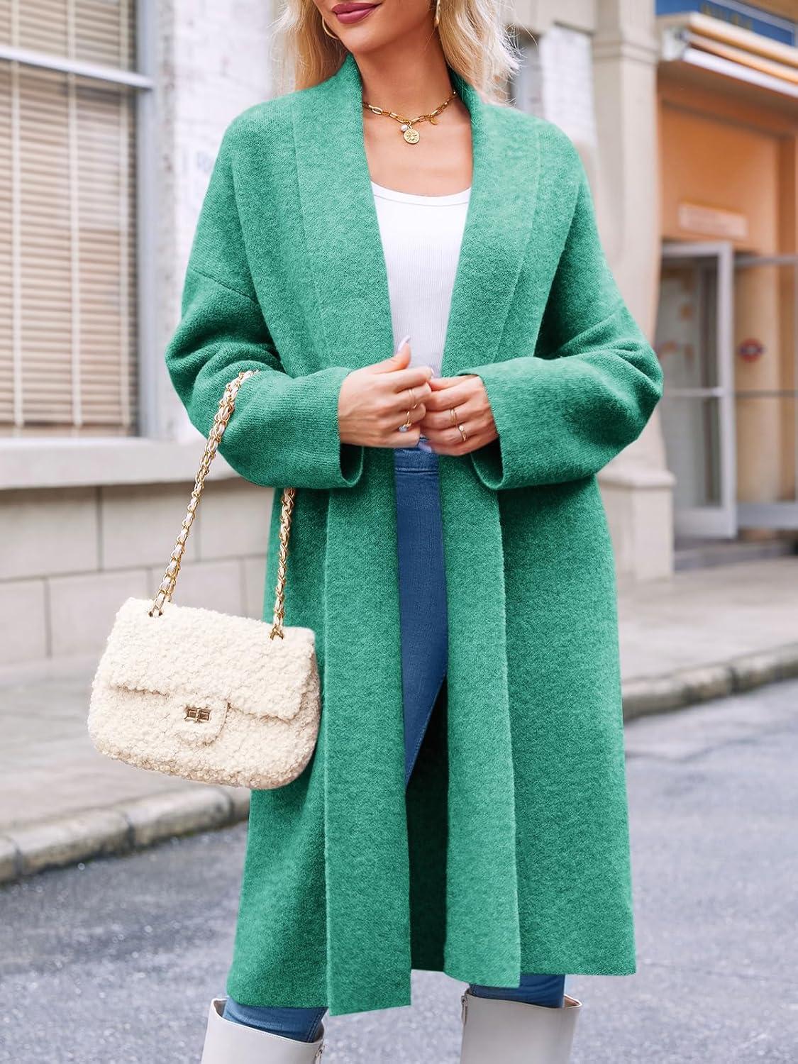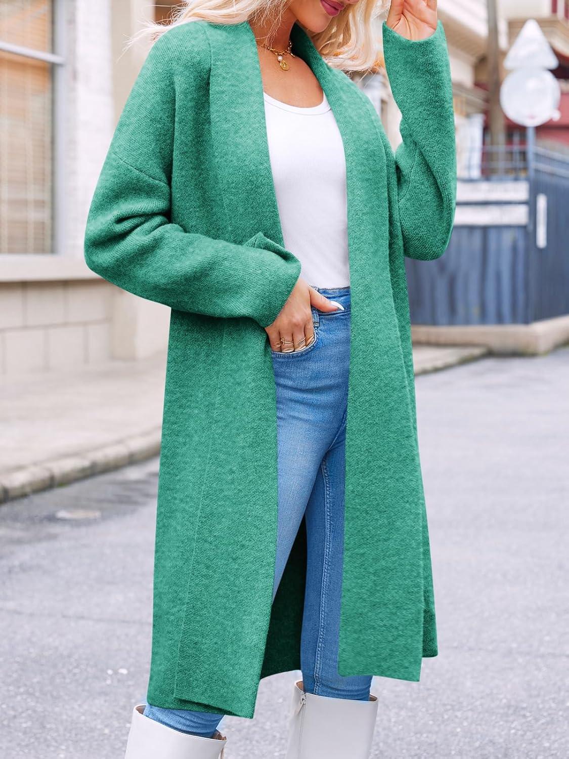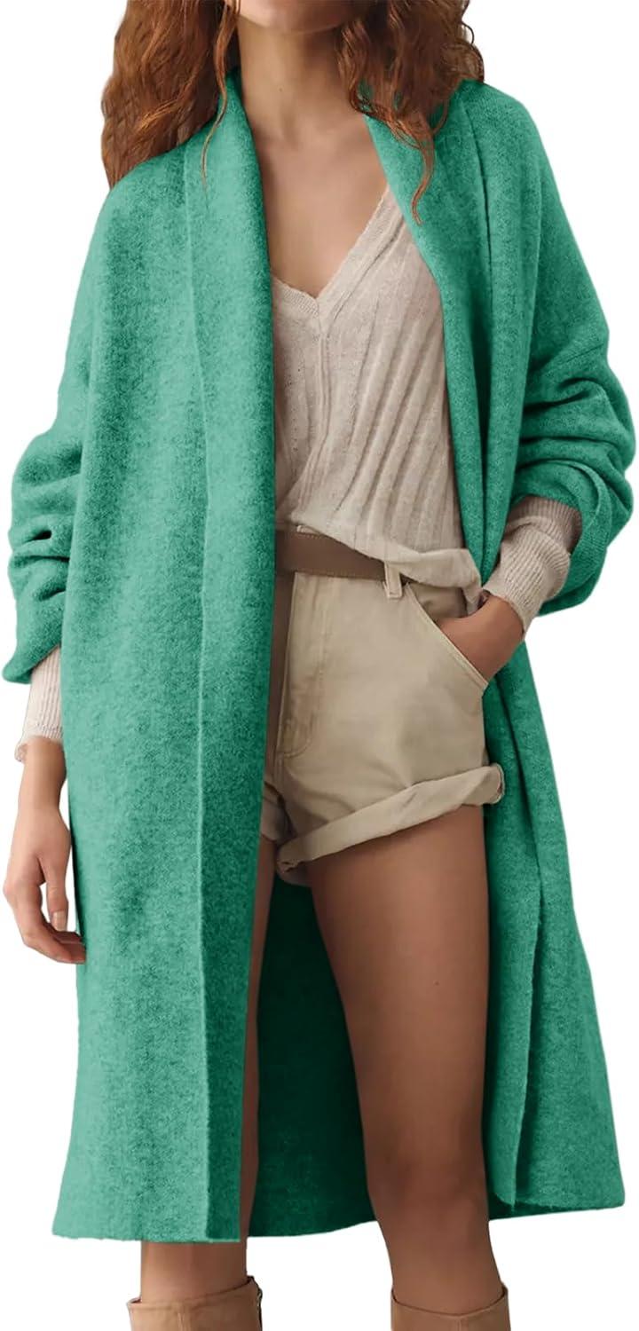 Saodimallsu Womens Long Cardigan Sweaters Chunky Open Front Oversized Slouchy Knit Fall Trendy Coatigan Jackets(Green)