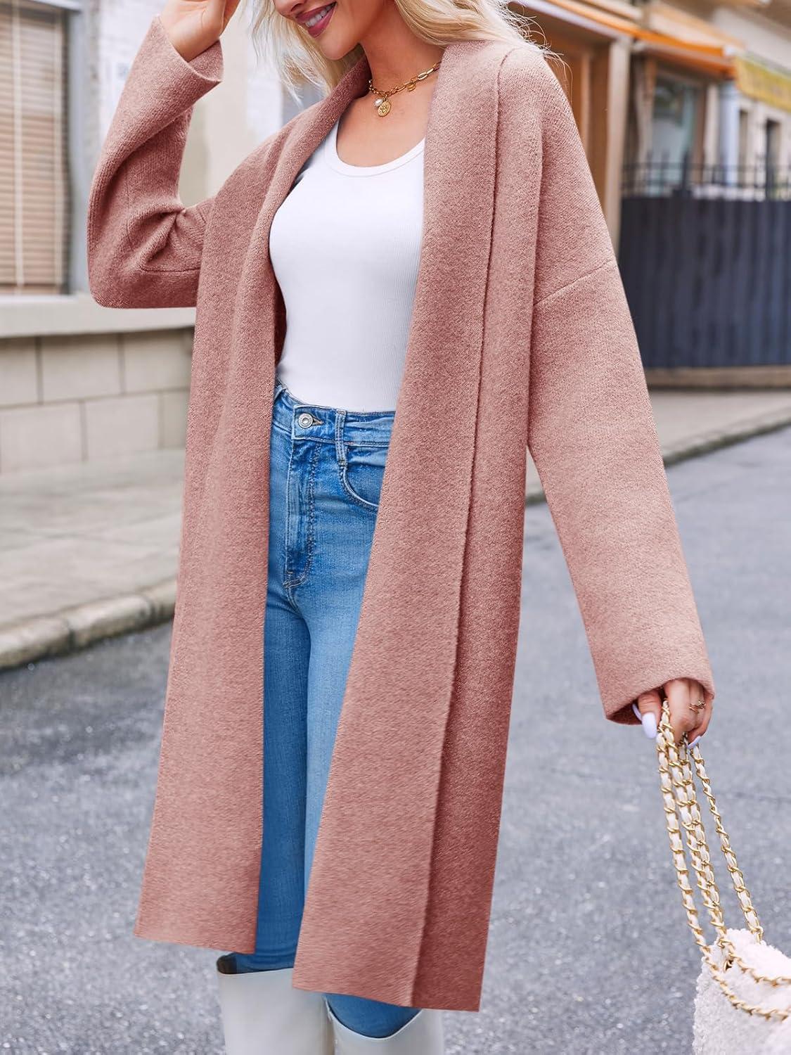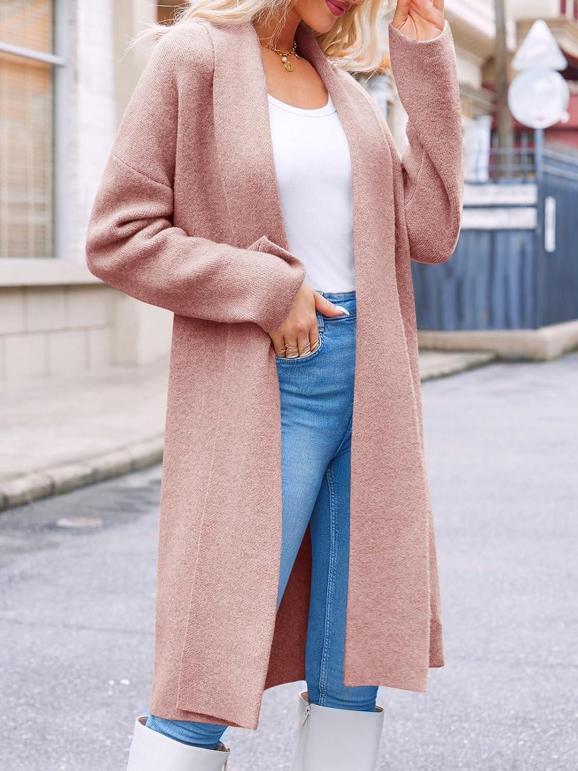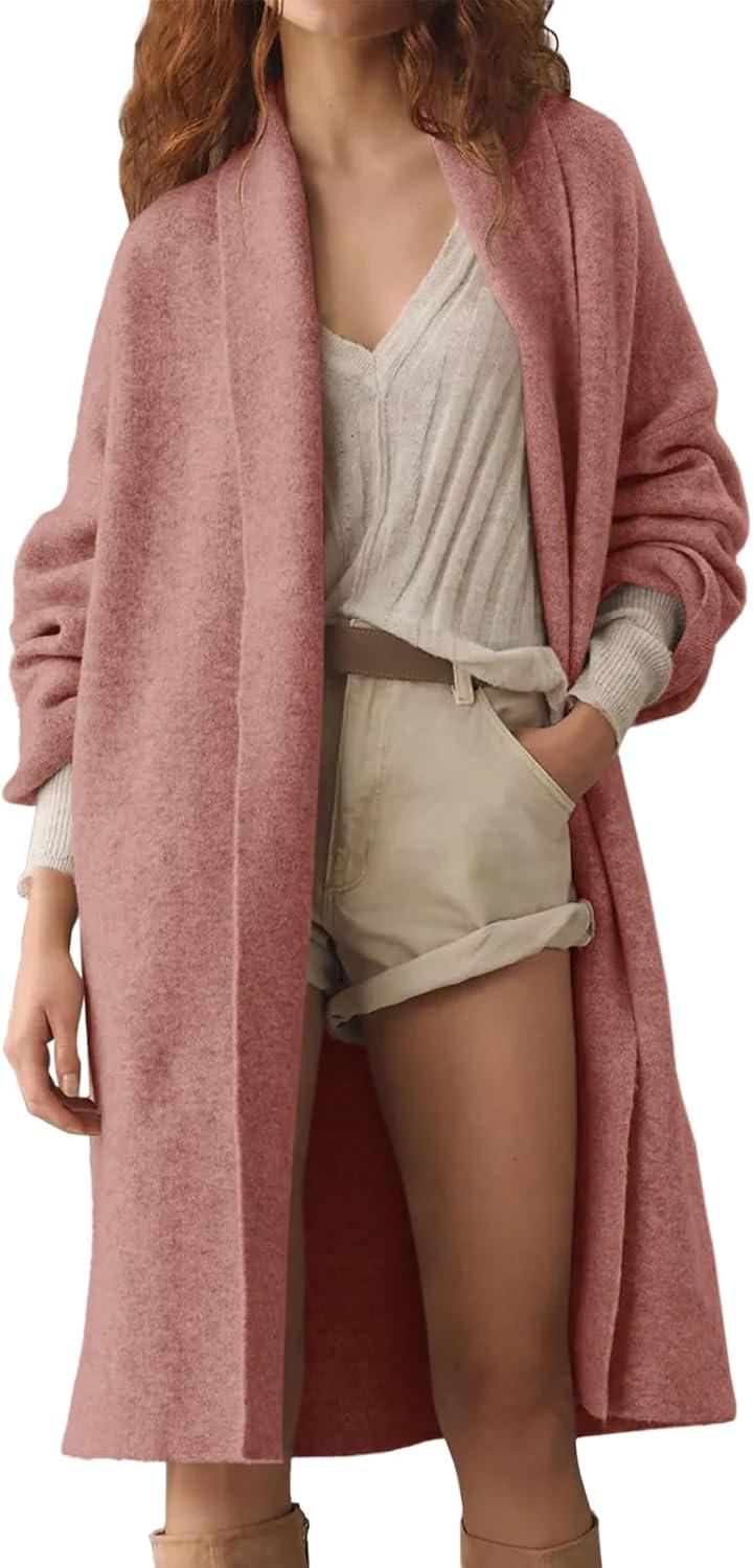 Saodimallsu Womens Long Cardigan Sweaters Chunky Open Front Oversized Slouchy Knit Fall Trendy Coatigan Jackets(Pink)