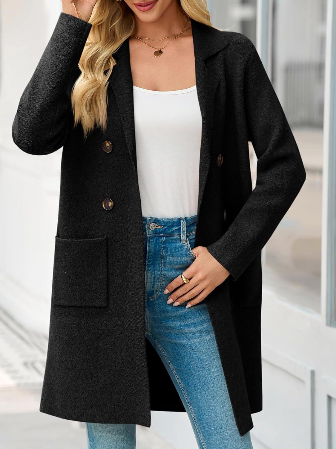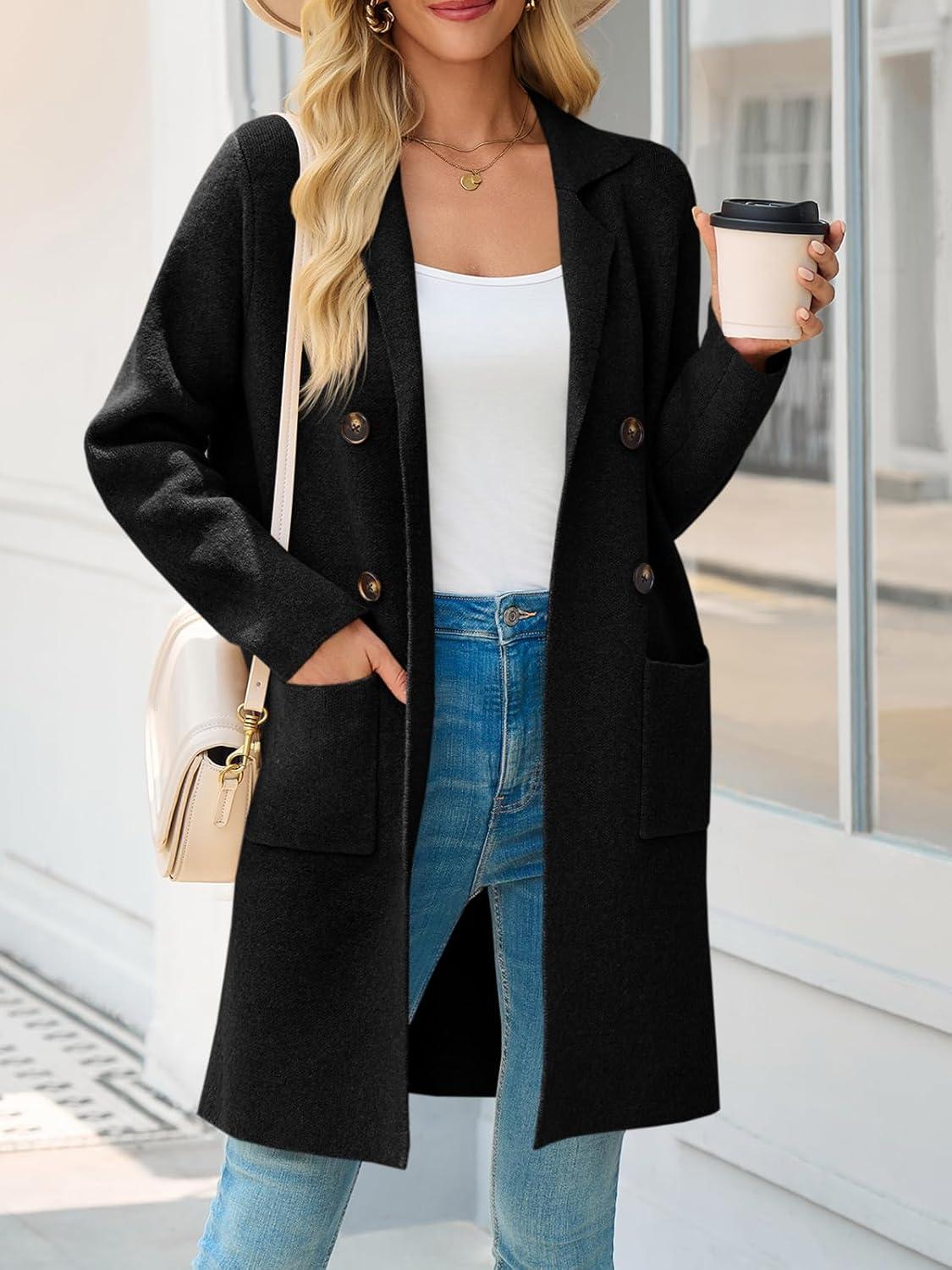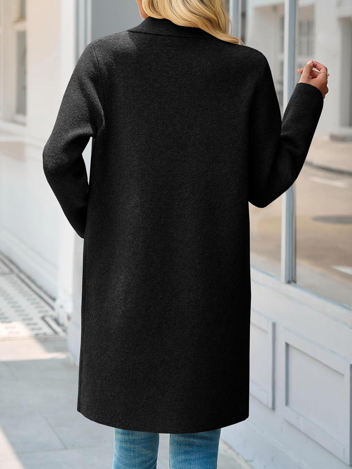 Saodimallsu Womens Long Cardigan Sweaters Open Front Knit Dressy Casual Chunky Lapel Coatigan Fall Sweater Blazer Coats(Black)