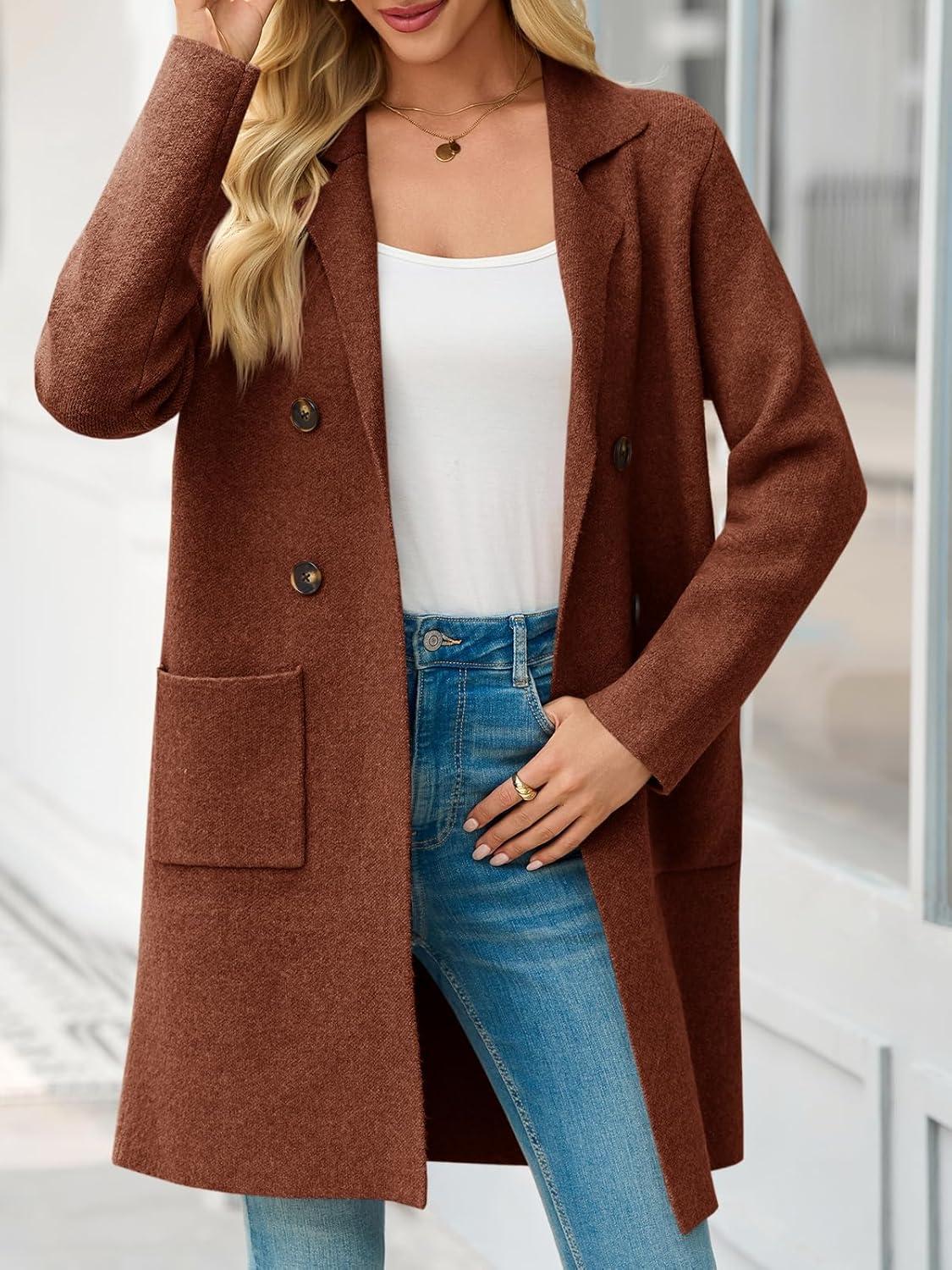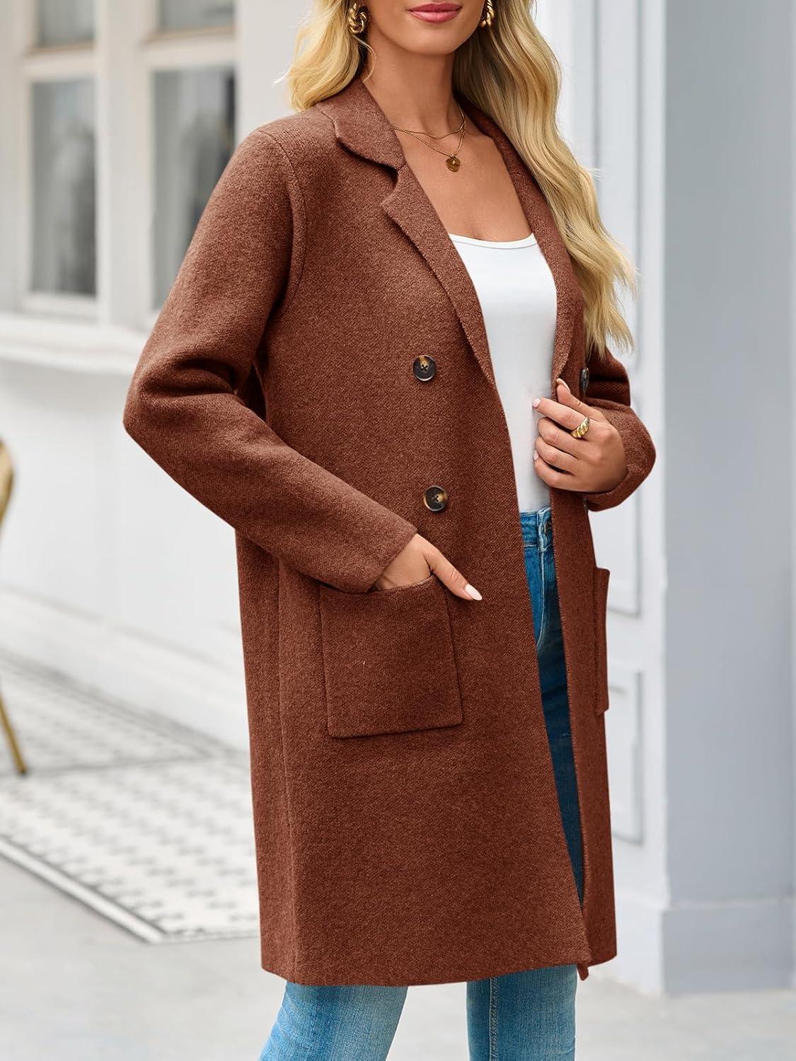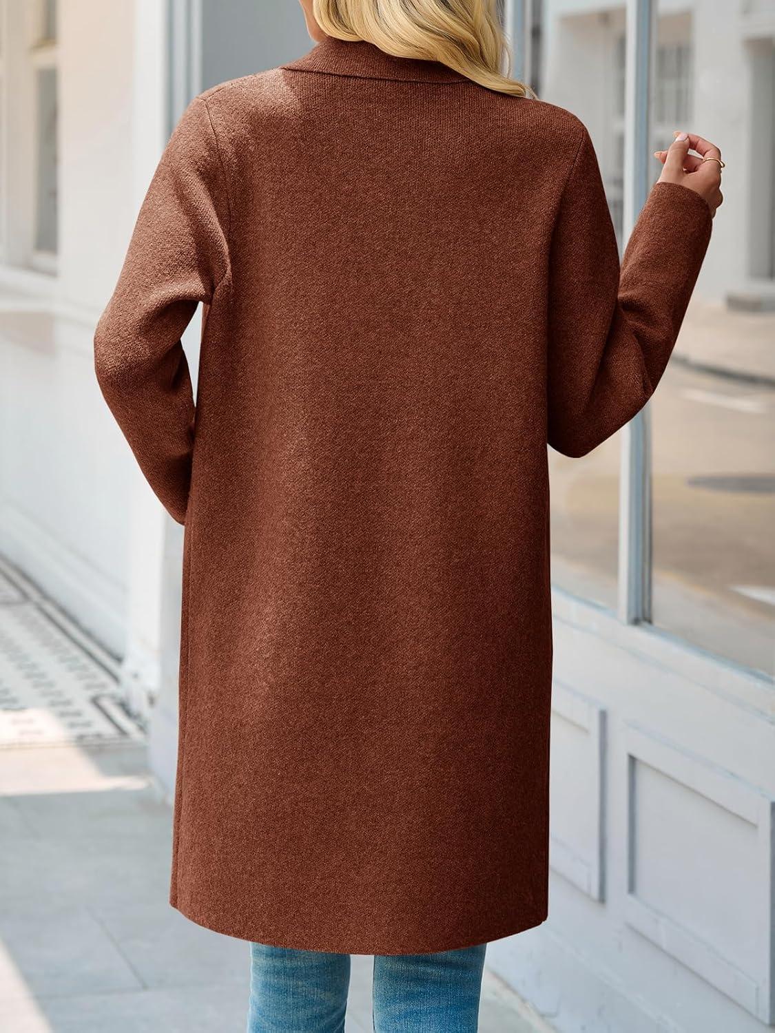 Saodimallsu Womens Long Cardigan Sweaters Open Front Knit Dressy Casual Chunky Lapel Coatigan Fall Sweater Blazer Coats(Caramel)